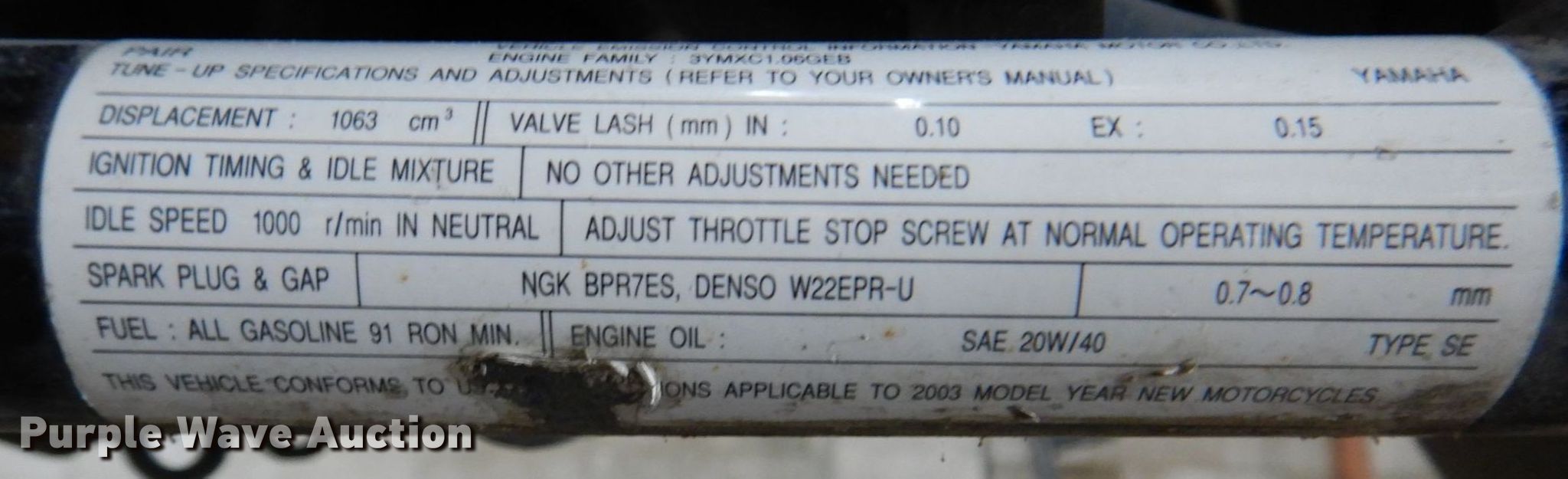 Purple Wave is selling a used Motorcycle in Nebraska. This item is a 2003 Yamaha XVS1100 motorcycle with the following: Miles: Unknown, VIN: JYAVP11E23A036834