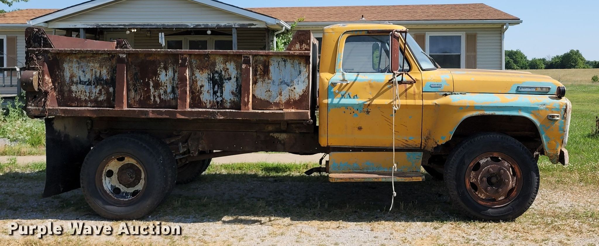 This 1969 Ford F600 dump truck will sell to the highest bidder regardless of price.