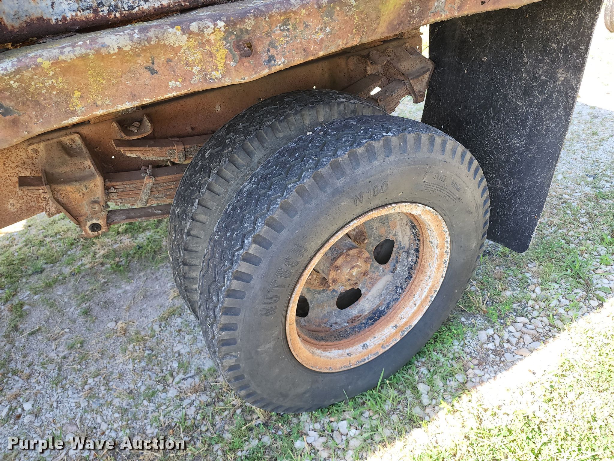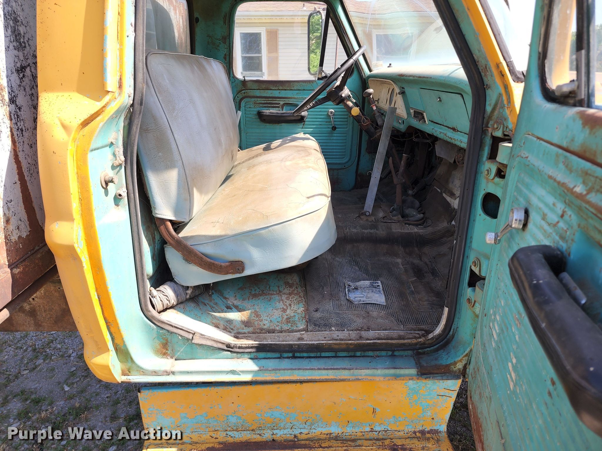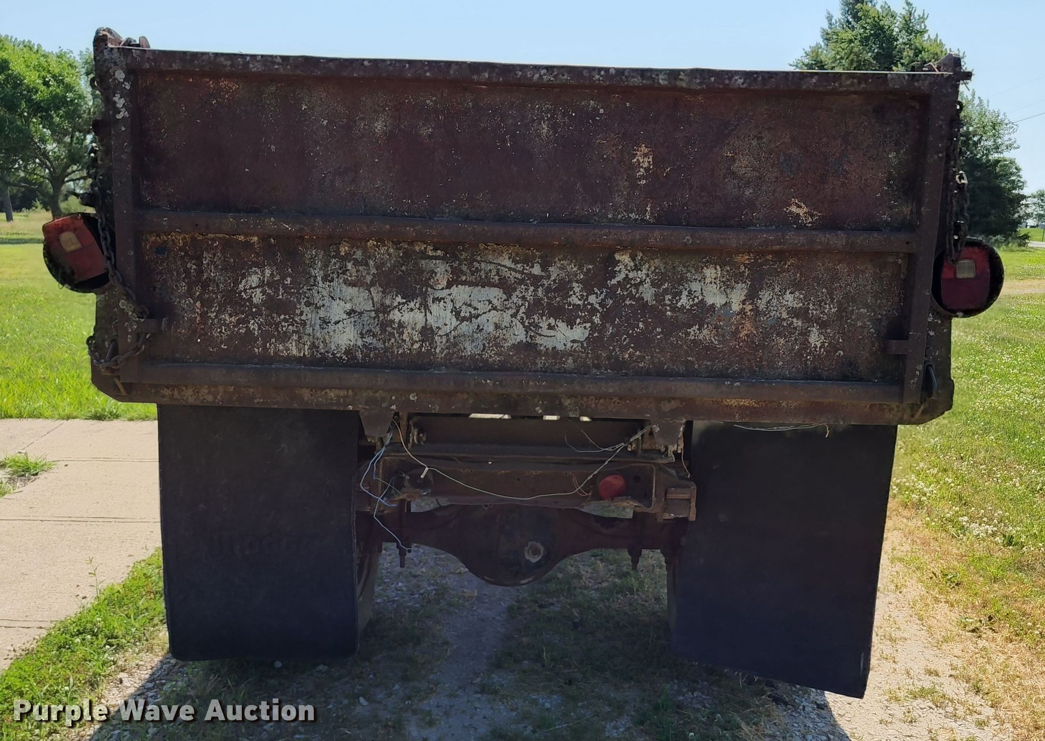 1969 Ford F600 dump truck. Miles: 57,088 on odometer, VIN: F61CKE11408. Engine Displacement: 330, Cylinders: 8, Fuel type: Gas. Transmission Model: Fm465, Manual, Speed: 4, plus 2. Chassis Axles: Single, Suspension: Spring, Brakes: Hydraulic, PTO. Interior Heat. Features Dump bed Anthony T6386, 10' L x 96" W, Side height: 25", Bed type: Steel, Ram: Single , End gate: Manual. Tires Size: 8.25-20. Notes Non-operational brakes. Missouri title. Adrian, MO 64720
