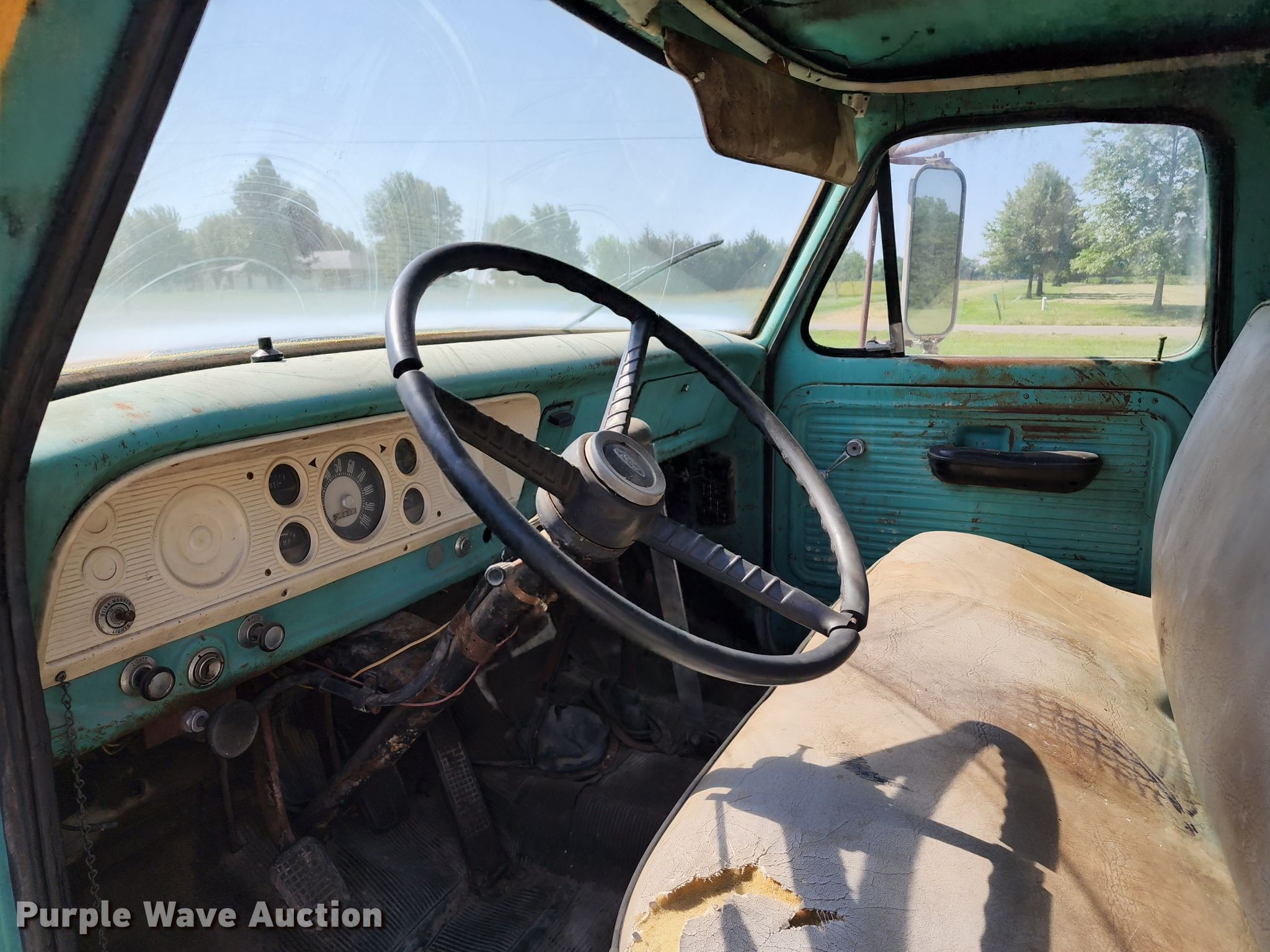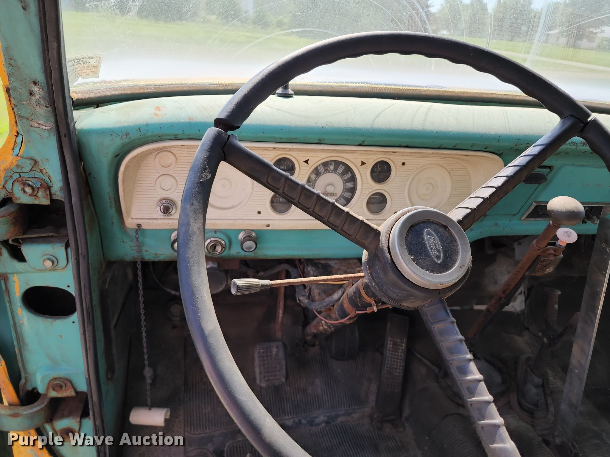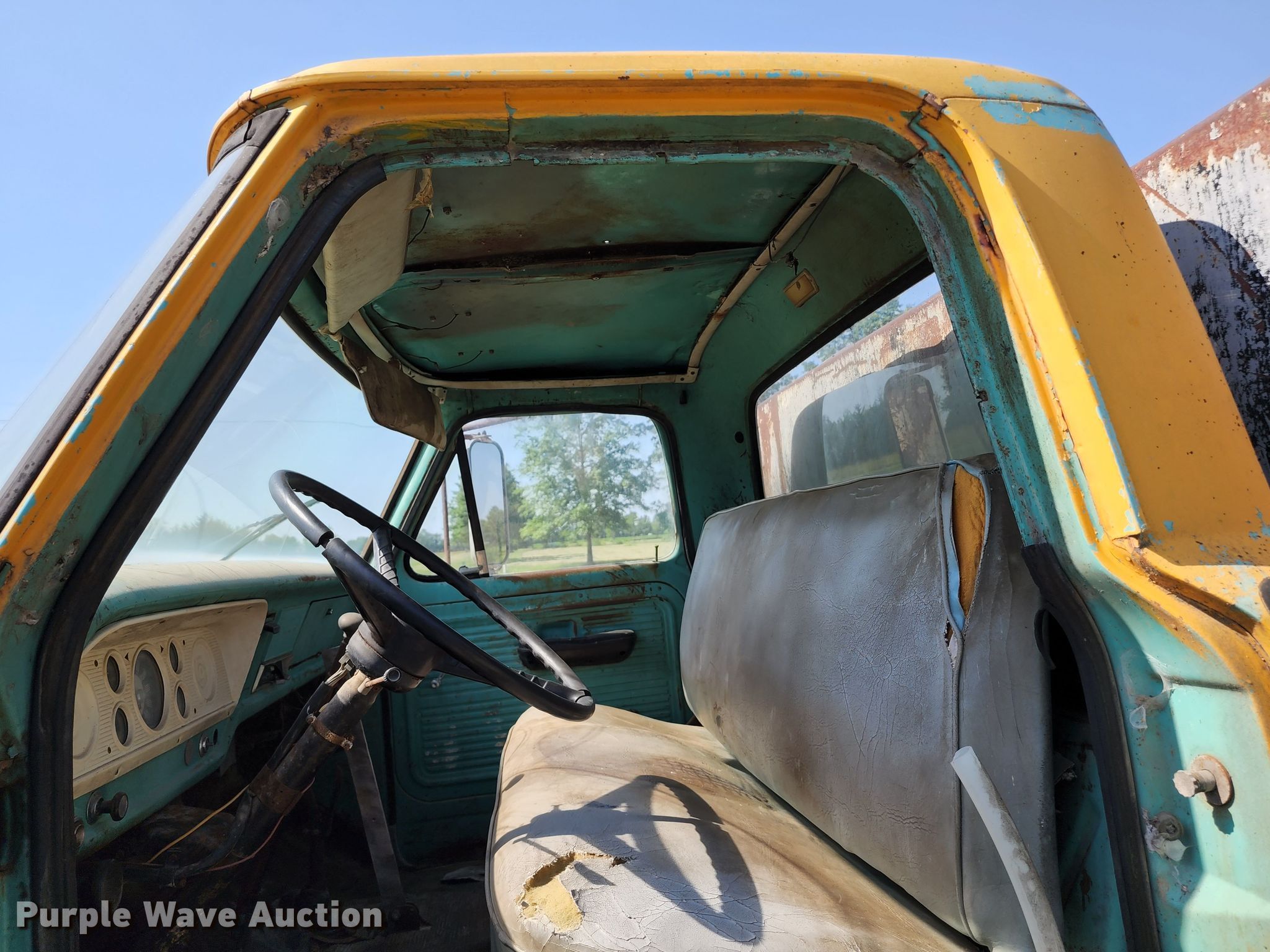 1969 Ford F600 dump truck. Miles: 57,088 on odometer, VIN: F61CKE11408. Engine Displacement: 330, Cylinders: 8, Fuel type: Gas. Transmission Model: Fm465, Manual, Speed: 4, plus 2. Chassis Axles: Single, Suspension: Spring, Brakes: Hydraulic, PTO. Interior Heat. Features Dump bed Anthony T6386, 10' L x 96" W, Side height: 25", Bed type: Steel, Ram: Single , End gate: Manual. Tires Size: 8.25-20. Notes Non-operational brakes. Missouri title. Adrian, MO 64720