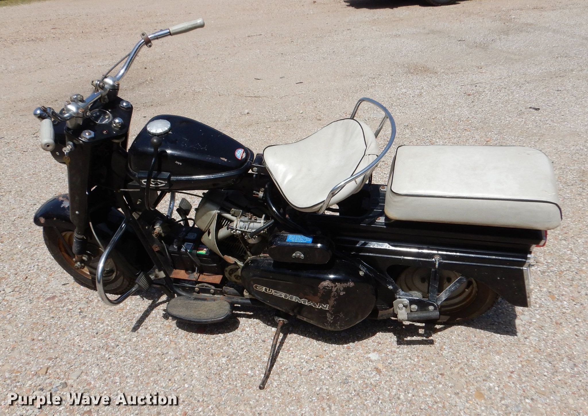 Purple Wave is selling a used Motorcycle in Kansas. This item is a 1965 Cushman Super Silver Eagle scooter with the following: Miles: 1,247 on odometer, VIN: 193555
