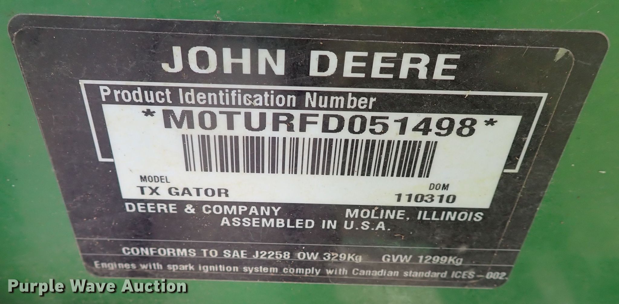 Purple Wave is selling a used Utility Vehicle in Oklahoma. This item is a 2010 John Deere Gator utility vehicle with the following: VIN: MOTURFD051498