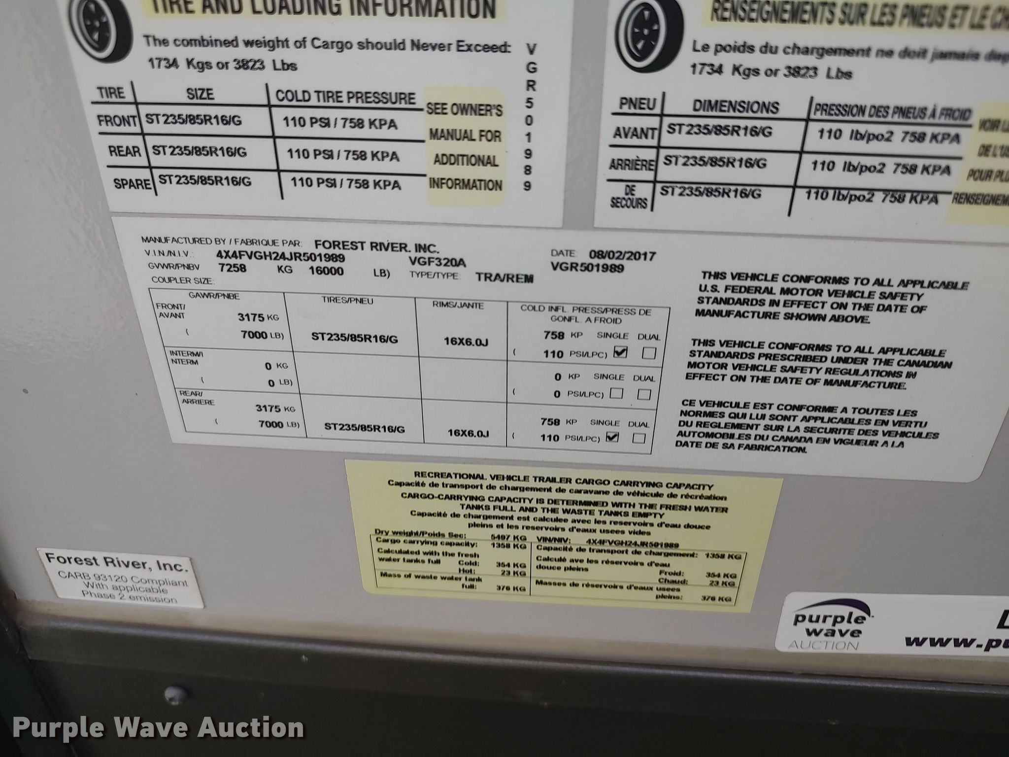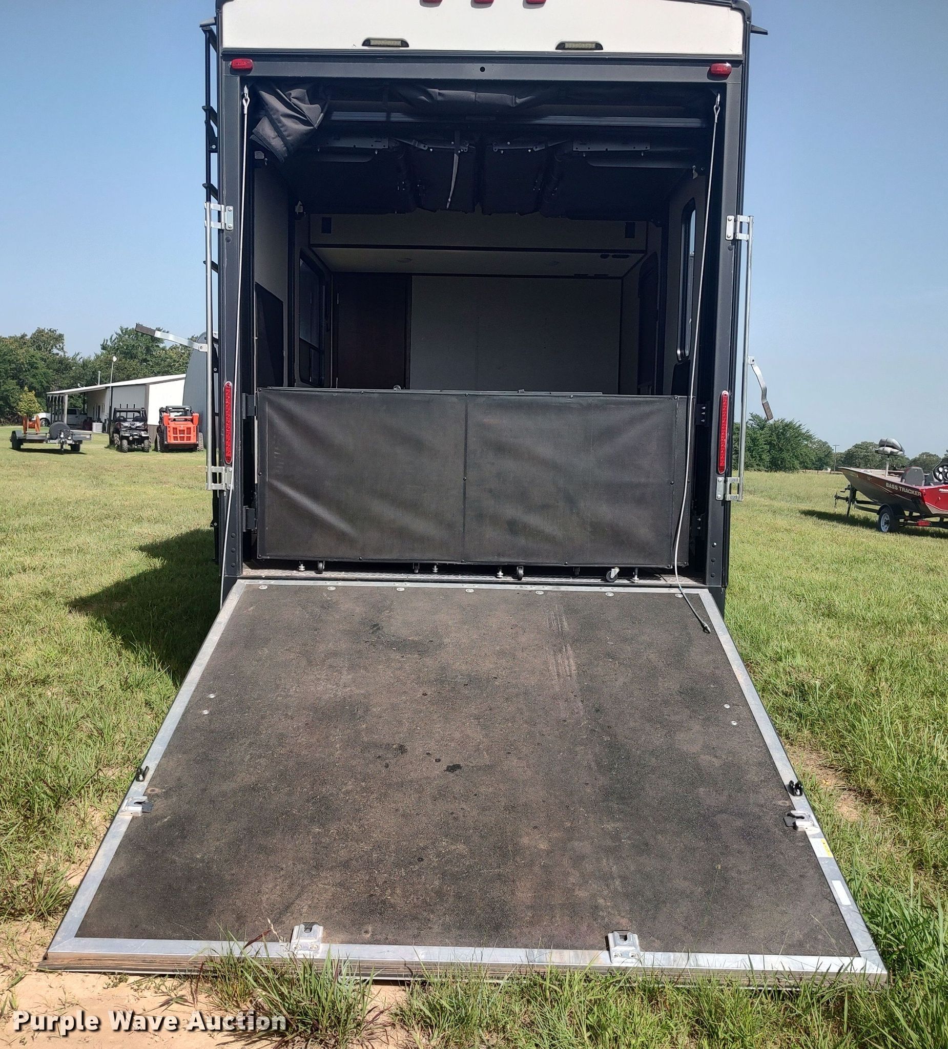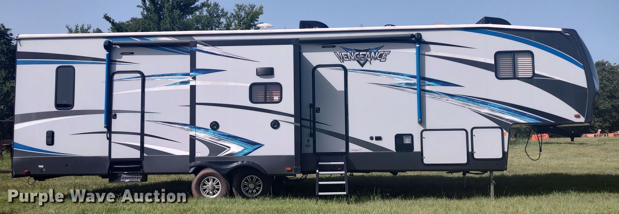 Purple Wave is selling a used RV or Camper in Oklahoma. This item is a 2018 Forrest River Vengeance toy hauler camper with the following: Camper length: 33', Toy hauler cabin: 12' L x 96" W, VIN: 4X4FVGH24JR501989, Claim #: 1-816385