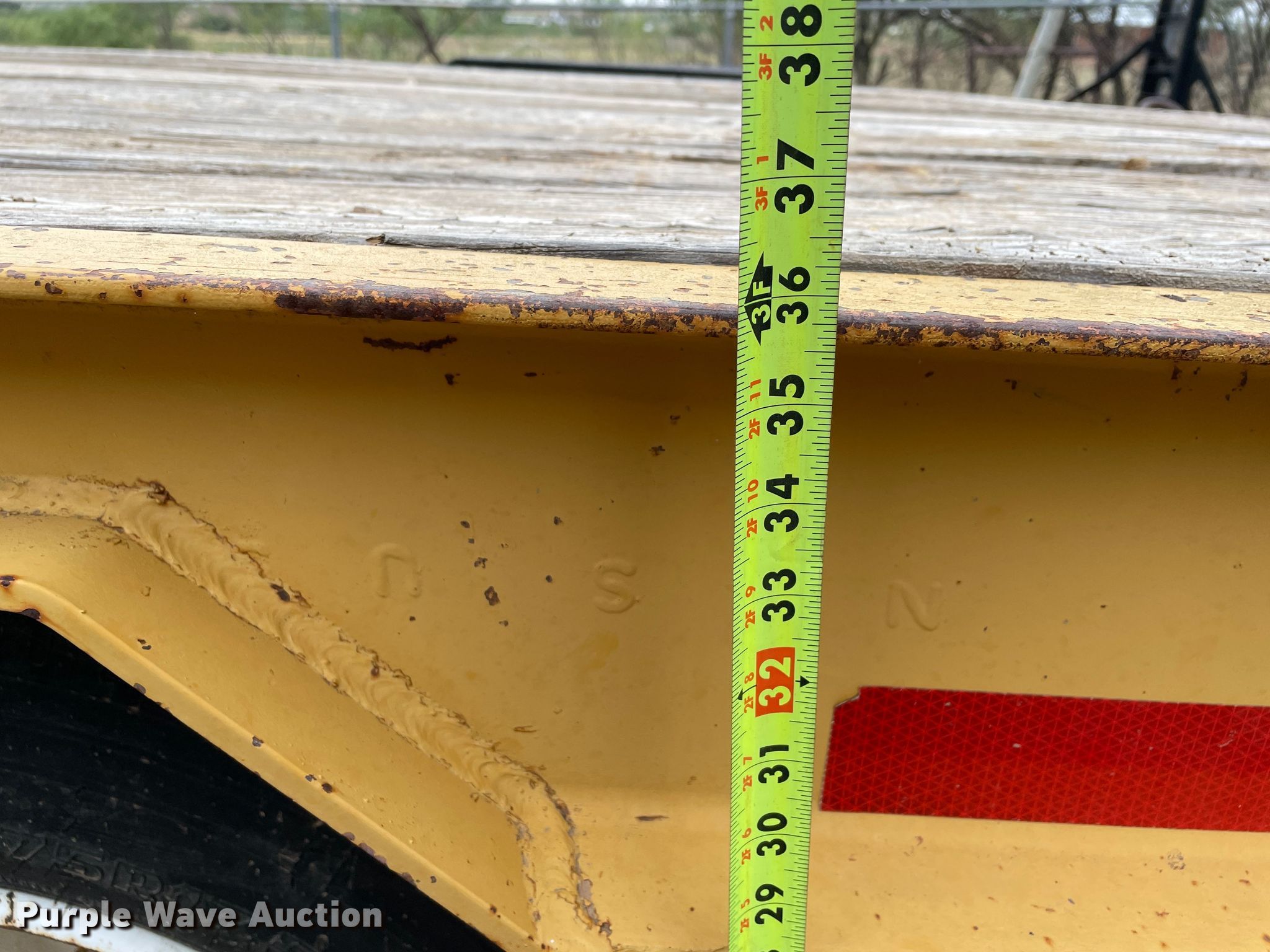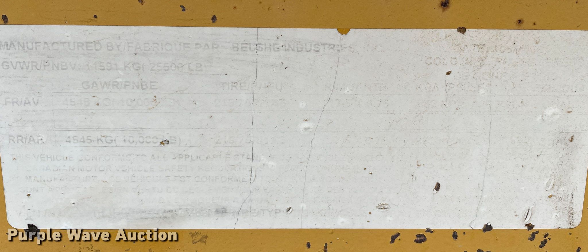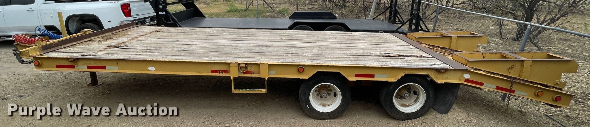 2006 Belshe DT256 equipment trailer. VIN: 16JF0202761042665. Dimensions Overall: 31' L x 96" W, Deck: 20' L x 91" W, Deck height: 36", Tail length: 5', Ramps: Manual Length: 5'. Features Deck type: Wood. Chassis Hitch: Pintle, Landing gear: Single, Suspension: Spring, Brakes: Air, Axles: Tandem, GVWR: 25,500 lbs, GAWR: 10,000 lbs. Tires Steel wheels, Size: 215/75R17.5. Texas title. 8825 Melfrank Dr. Amarillo, TX 79124