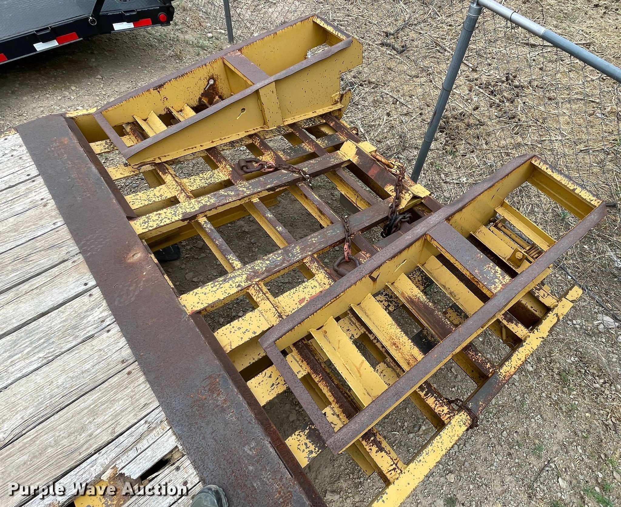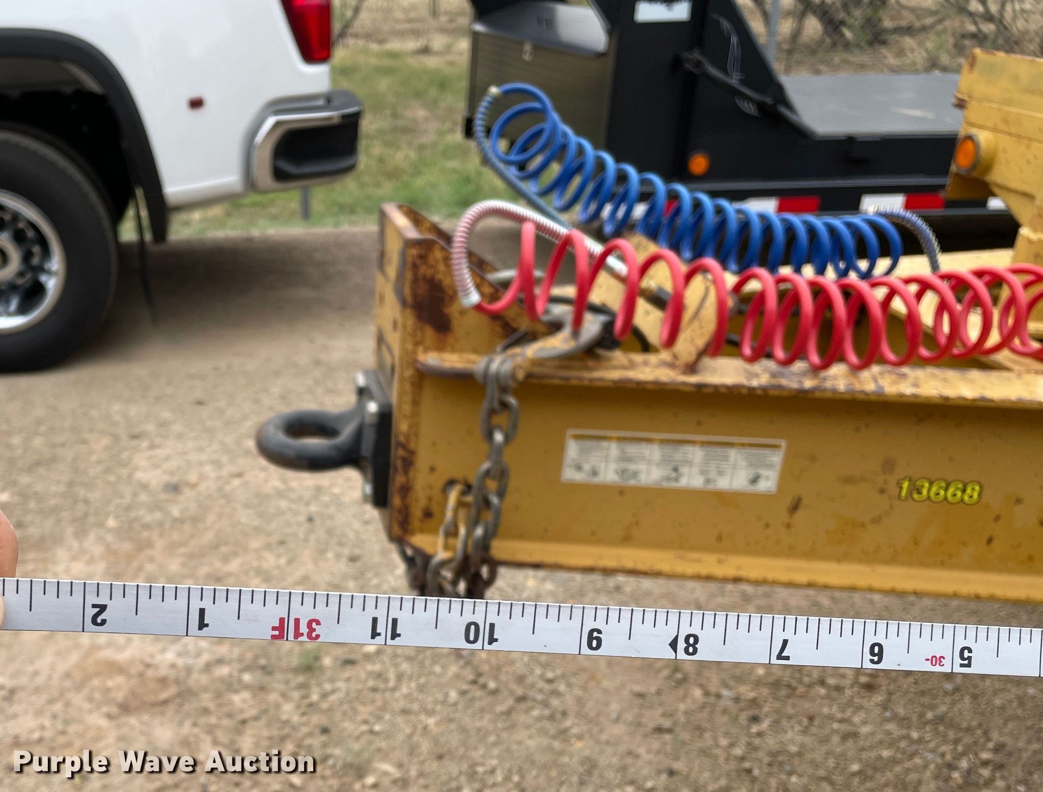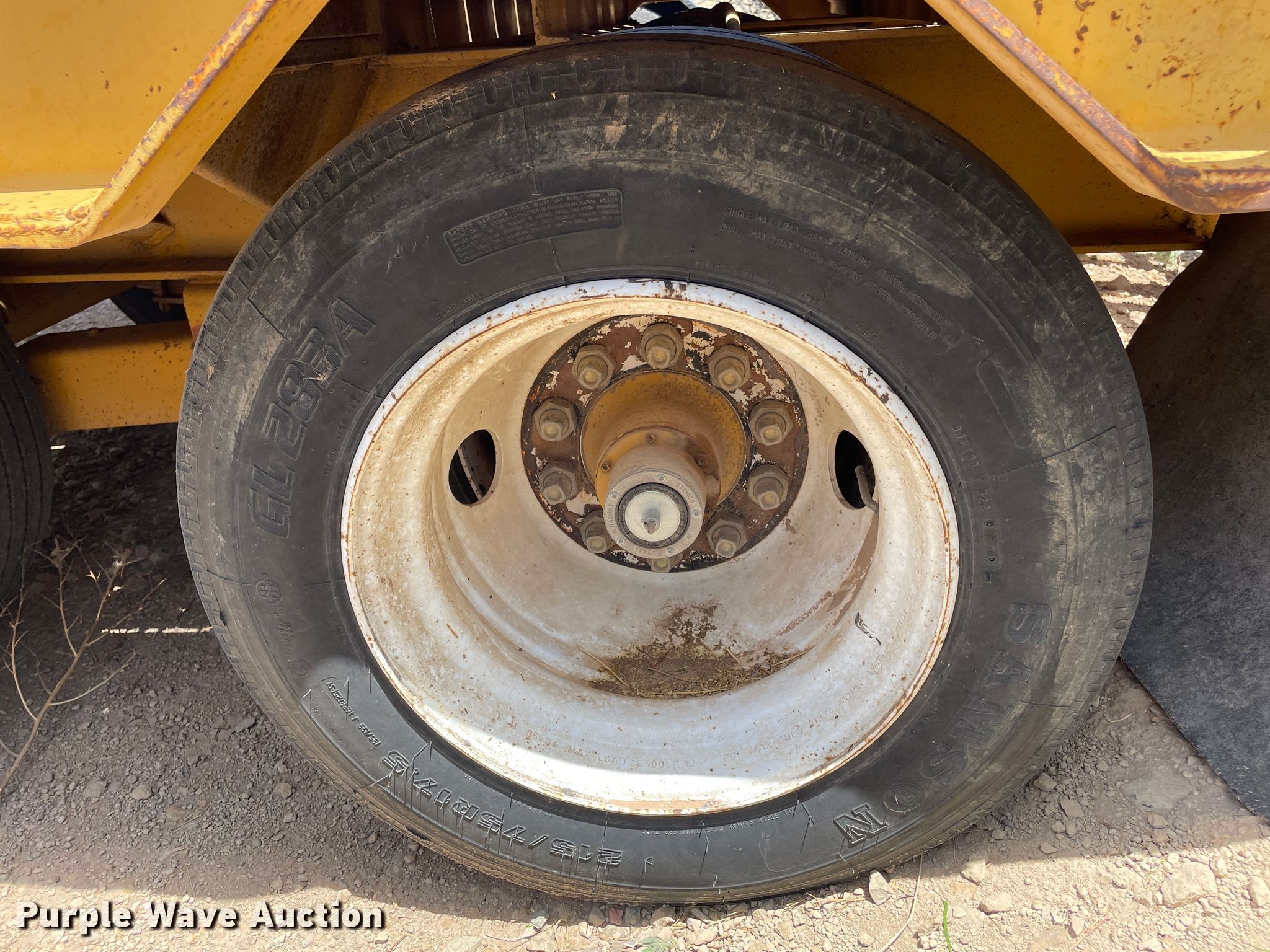2006 Belshe DT256 equipment trailer. VIN: 16JF0202761042665. Dimensions Overall: 31' L x 96" W, Deck: 20' L x 91" W, Deck height: 36", Tail length: 5', Ramps: Manual Length: 5'. Features Deck type: Wood. Chassis Hitch: Pintle, Landing gear: Single, Suspension: Spring, Brakes: Air, Axles: Tandem, GVWR: 25,500 lbs, GAWR: 10,000 lbs. Tires Steel wheels, Size: 215/75R17.5. Texas title. 8825 Melfrank Dr. Amarillo, TX 79124