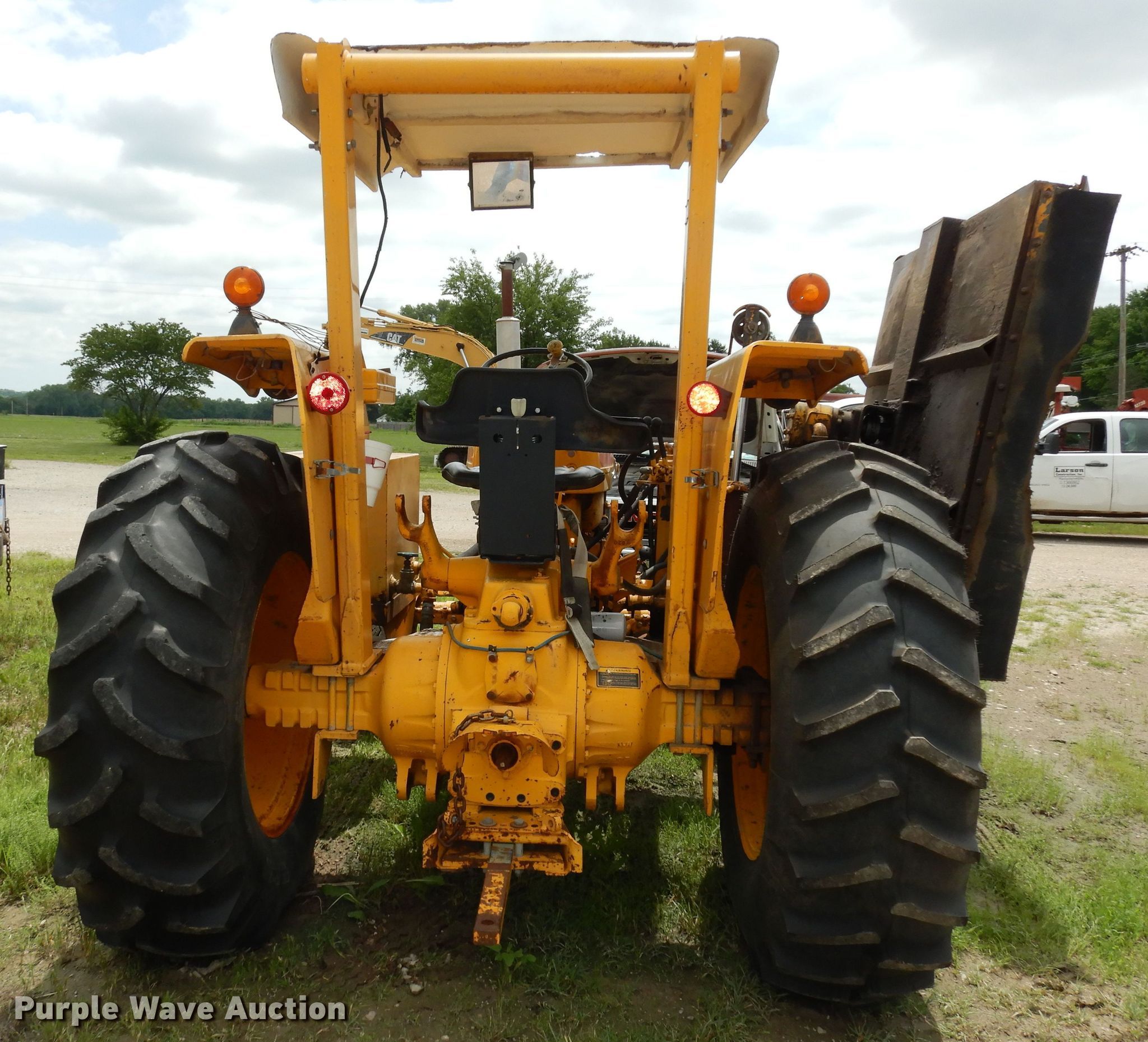 Ford Tiger Special 5600 tractor. Hours: 4,073 on meter, Serial: C620297. Engine Serial: CH24B, Cylinders: 4, Fuel type: Diesel. Transmission Manual, 8F - 2R. Features PTO: 540, 64" W side boom rotary mower. Tires Front: 7.50-16, Rear: 16.9-30. Notes Dead battery. Larson Construction, Inc.. Manhattan, KS 66502
