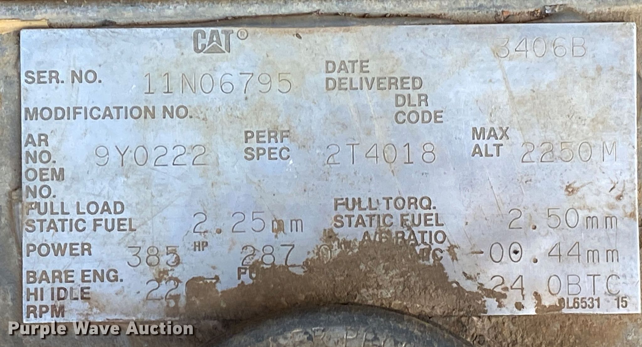 1994 Caterpillar D400D haul truck. Hours: 19,471 on meter, Serial: 8TF00726. Engine Caterpillar 3406B, Serial: 11N06795, Displacement: 14.6L, Cylinders: 6, Fuel type: Diesel. Transmission Powershift, 4F - 4R. Chassis Six wheel drive. Interior AC, Heat, Retarder. Features Dump bed Capacity: 40 tons. Tires Size: 29.5-25. Notes Flat tire. A&M Engineering and Environmental Services, Inc.. Stroud, OK 74079