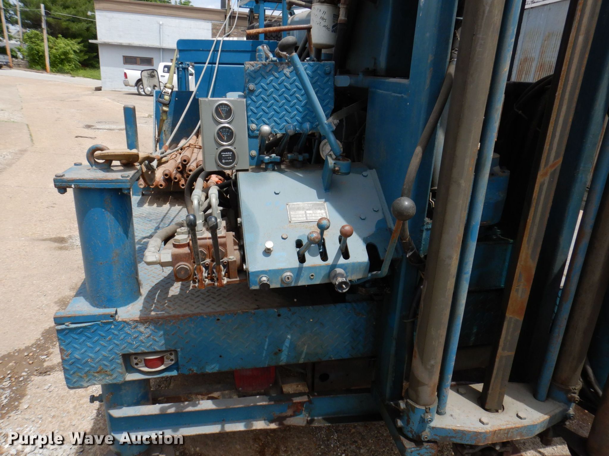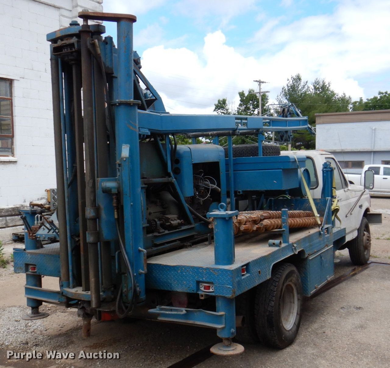 1997 Ford F450 Super Duty drilling rig truck. Miles: 235,967 on odometer, VIN: 1FDLF47F8VEB32264. Engine International A225, Displacement: 7.3L, Cylinders: 8, Fuel type: Diesel. Transmission Manual, Speed: 5. Chassis Axles: Single, Suspension: Spring, Brakes: Hydraulic, GVWR: 15,000 lbs, Wheelbase: 161". Interior Heat. Features Bed/ drill Central Mine 45, Serial: 123884, Engine Ford, Cylinders: 4, Fuel: Gas Hours: 358, Approx. 22 4" auger sections, Approx. 5 8" auger sections, Approx. 23 5' boring rod extensions, 8" rock bit, 4" rock bit, 8" auger bit. Tires Size: 235/85R16. Notes Auger rack. Missouri title. Bib Filter. 323 South Maple Avenue. Hannibal, MO 63401