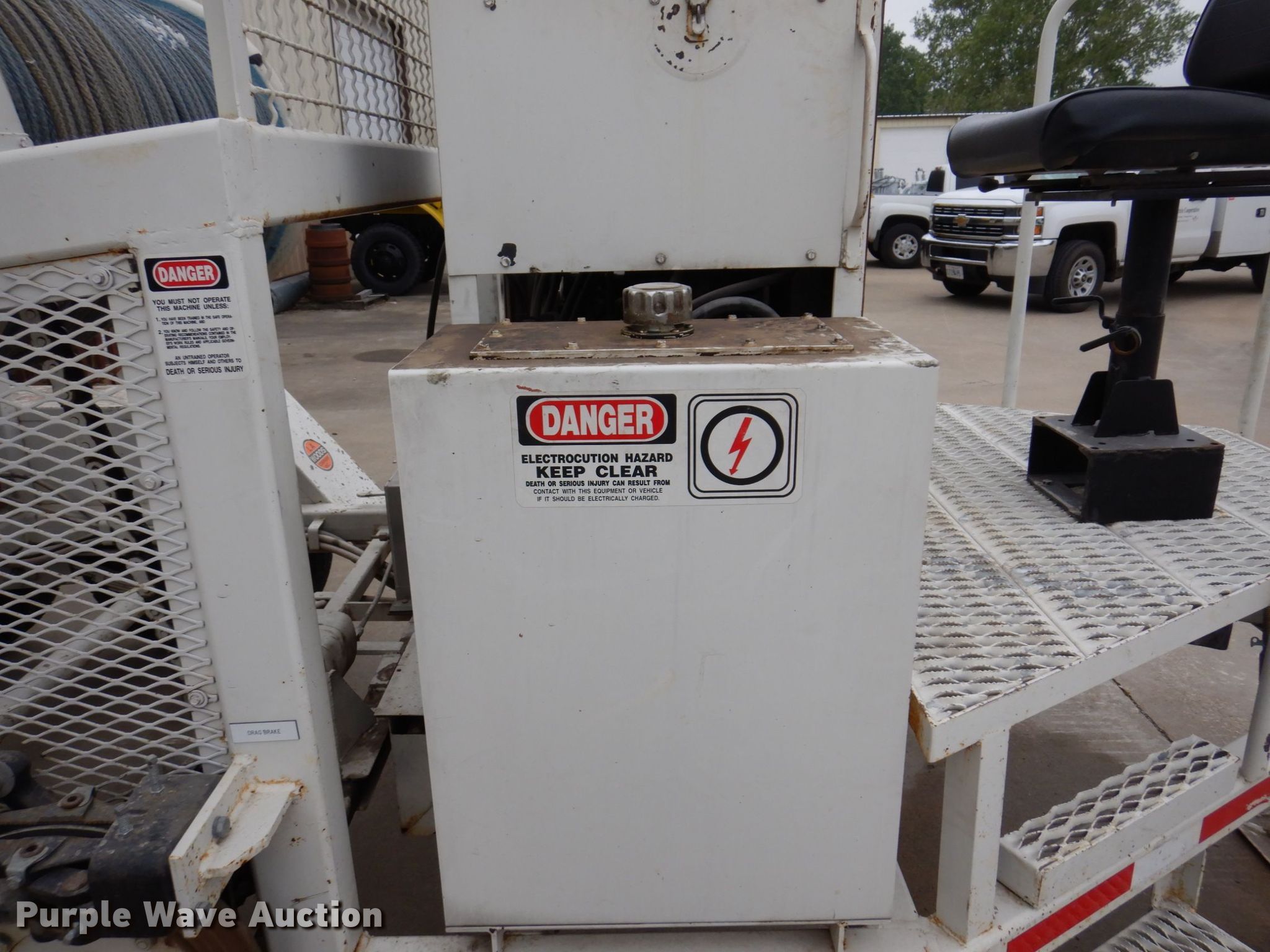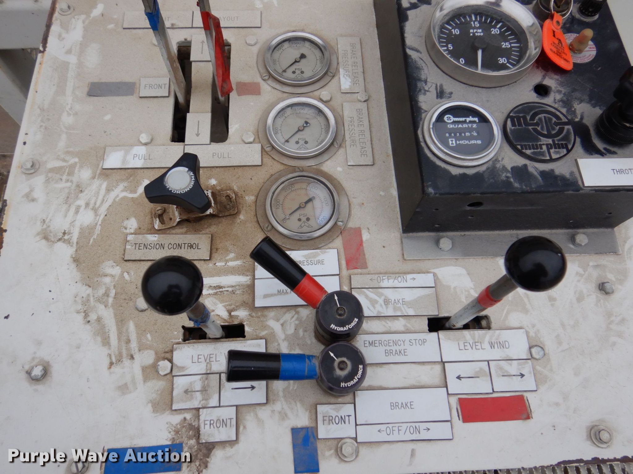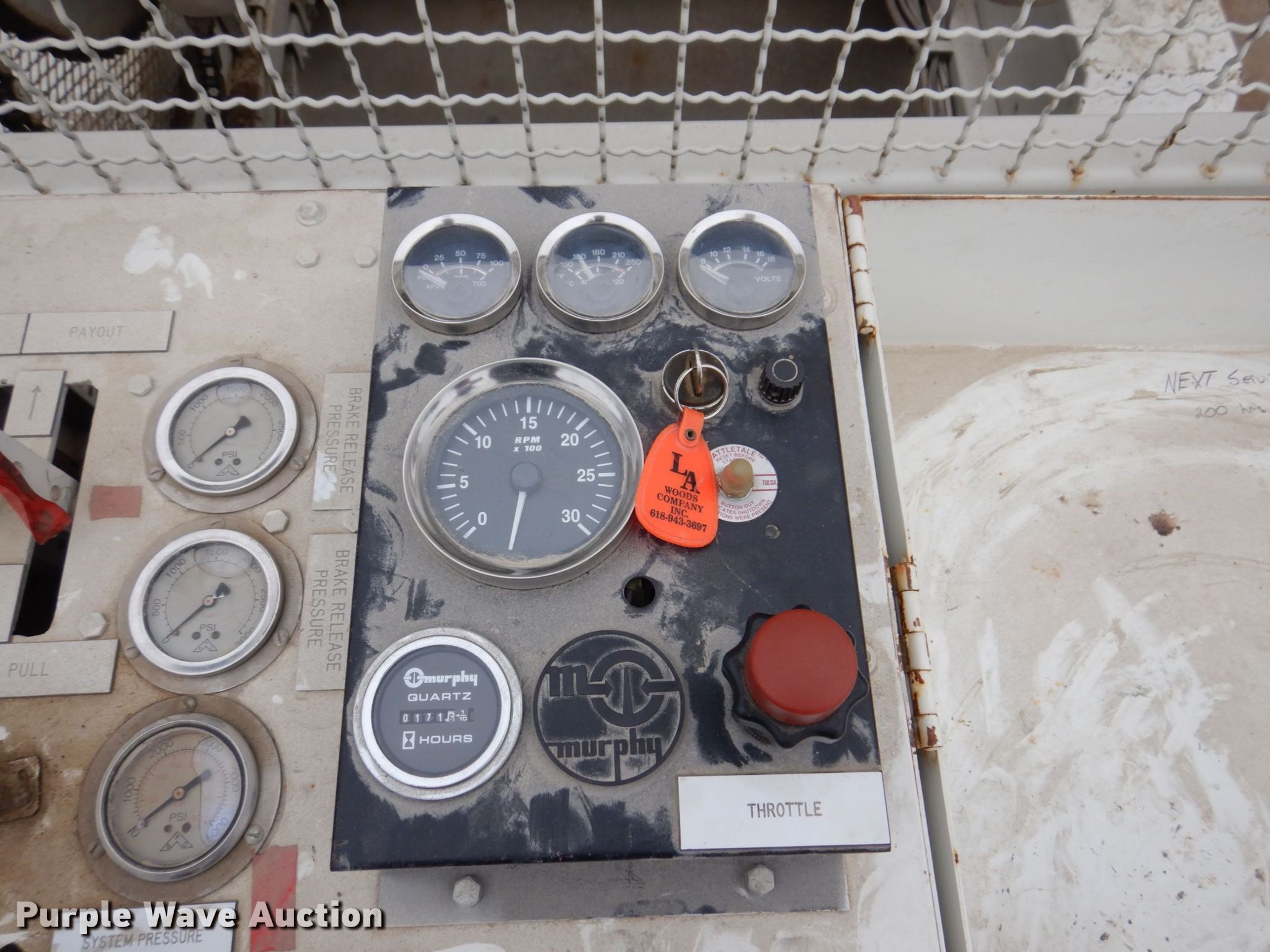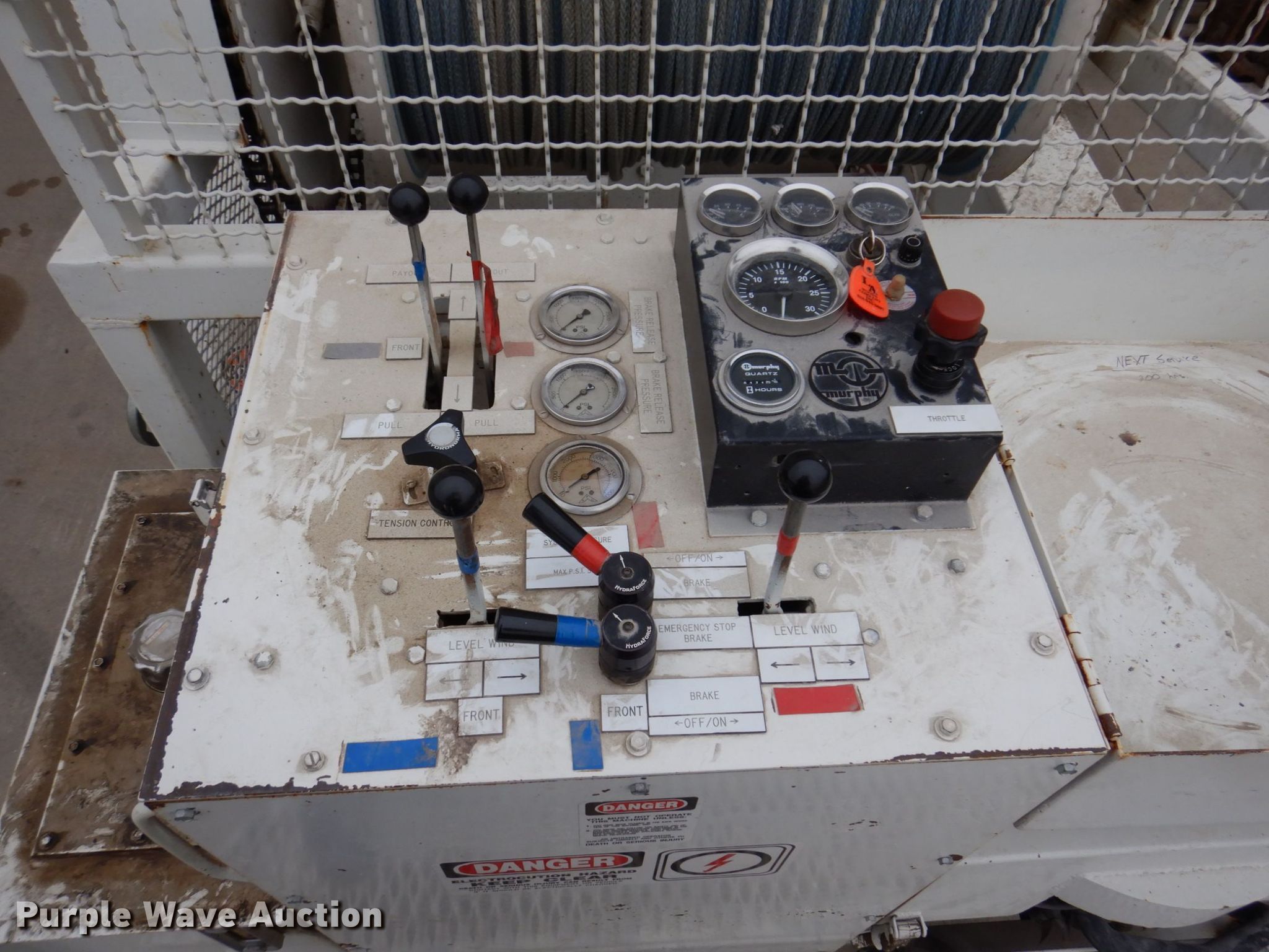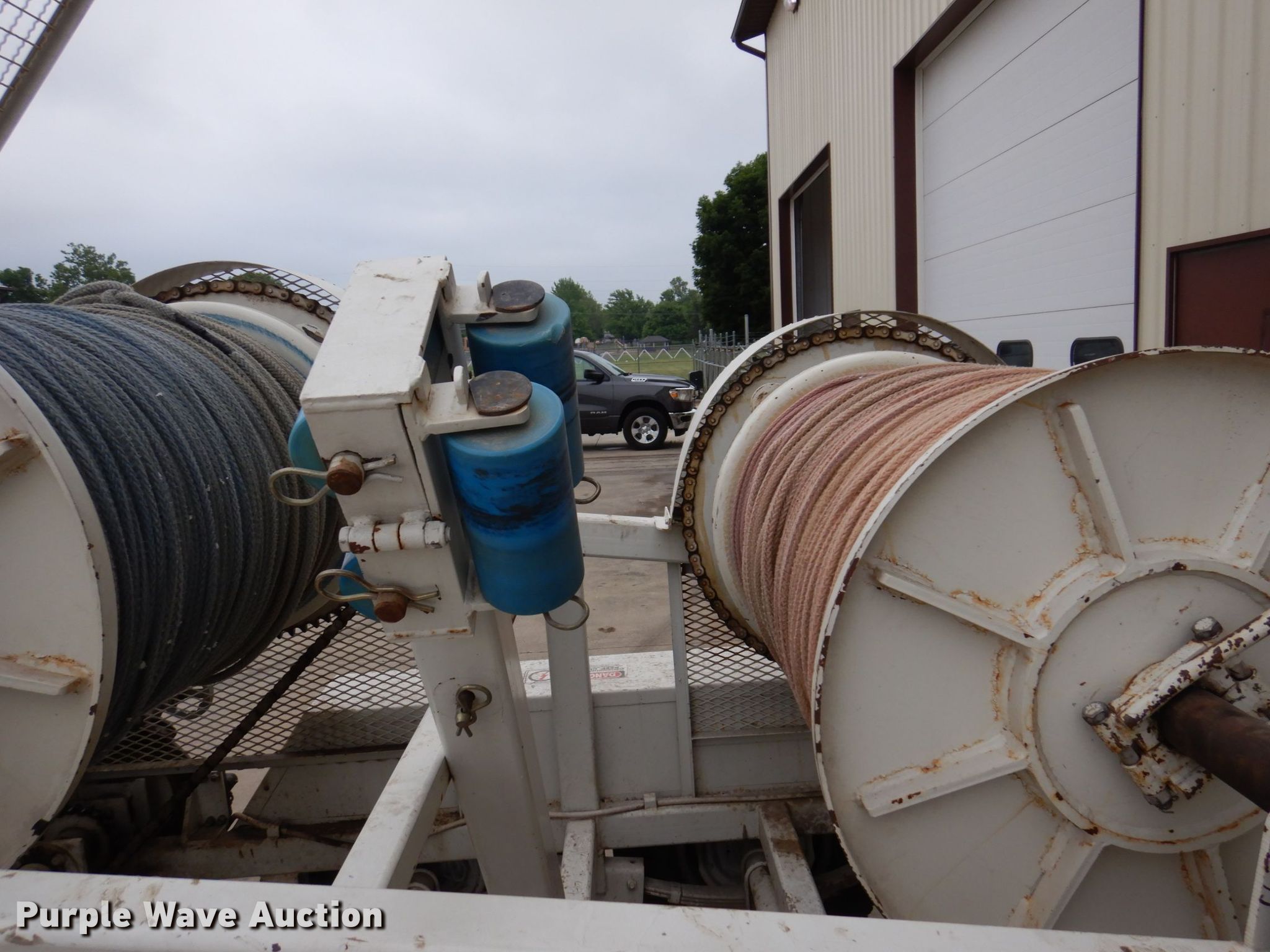 1999 LA Woods TR2DP reel trailer. Hours: 172 on meter, VIN: 1L9BB1823X1109050. Dimensions Overall: 19' L x 96" W. Engine Nissan, Cylinders: 4, Fuel type: Gas. Features Reel: Double, Self-contained hydraulics, Blue rope Diameter: 1/2" , Length: 6000', Red rope Diameter: 1/2" , Length: 6000'. Chassis Hitch: Pintle, Landing gear: Single, Suspension: Spring, Brakes: Electric, Axles: Tandem, GVWR: 14,000 lbs, GAWR: 12,000 lbs. Tires Size: 235/85R16. Notes Weak battery. Illinois title. Shelby Electric Cooperative. 1355 State Hwy 128. Shelbyville, IL 62565