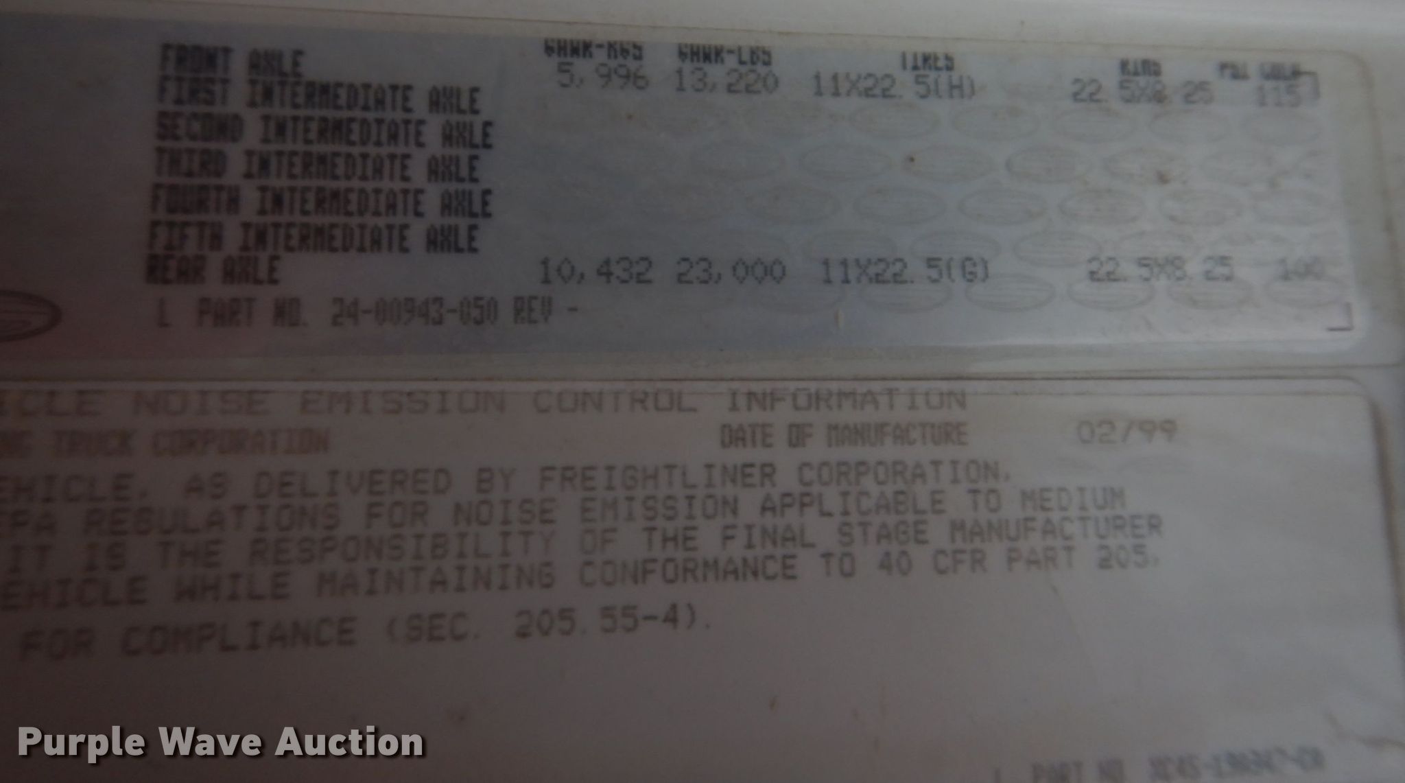 1999 Sterling L8513 applicator truck. Miles: 60,419 on odometer, Engine hours: 5,812 on meter, VIN: 2FZ6MJBB3XAB45881, Unit #: 15. Engine Caterpillar 3126, Serial: 7AS51179, Displacement: 7.2L, Cylinders: 6, Fuel type: Diesel. Transmission Automatic. Operators station AC, Heat. Operational Solution tank Capacity: 1,600 gallons, Type: Stainless Steel, Chemical eductor Type: Stainless Steel, Foam marker, Rinse tank, Clean water tank, Boom Width: 70', Sections: 3, Hydraulic boom fold, Hydraulic height control, Nozzle Spacing: 30", Nozzle bodies: Single, Electronics GPS monitor Trimble CFX-750, Spray controls Raven SCS440NVM.. Tires Front: 43x25.00-20, Rear: 66x43.00-25, Flotation tires. Notes CB radio not included, (8) additional tires, Dead battery, Battery cable issues, may need to be replaced, Passenger exterior door handle broken. Missouri title. MFA. 2816 E Liberty St. Mexico, MO 65265