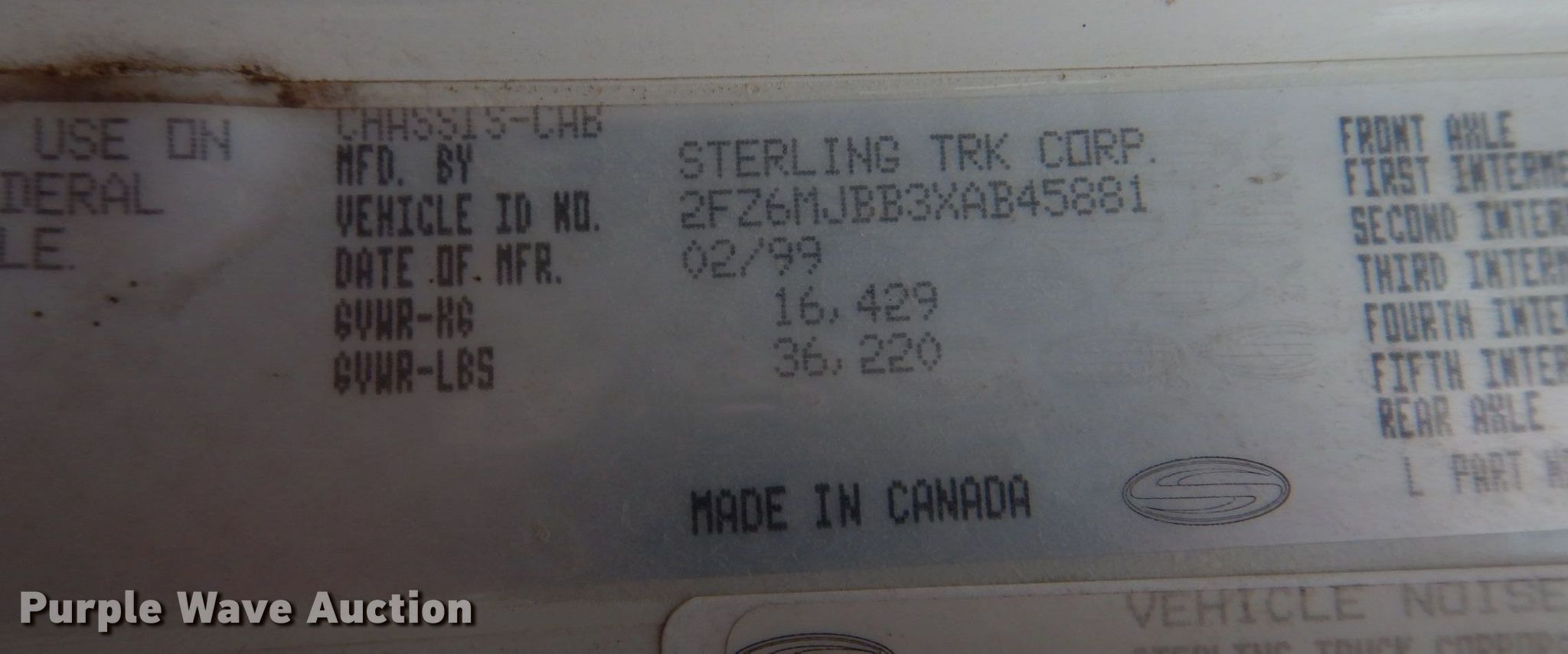 Purple Wave is selling a used Applicator Truck in Missouri. This item is a 1999 Sterling L8513 applicator truck with the following: Miles: 60,419 on odometer, Engine hours: 5,812 on meter, VIN: 2FZ6MJBB3XAB45881, Unit #: 15
