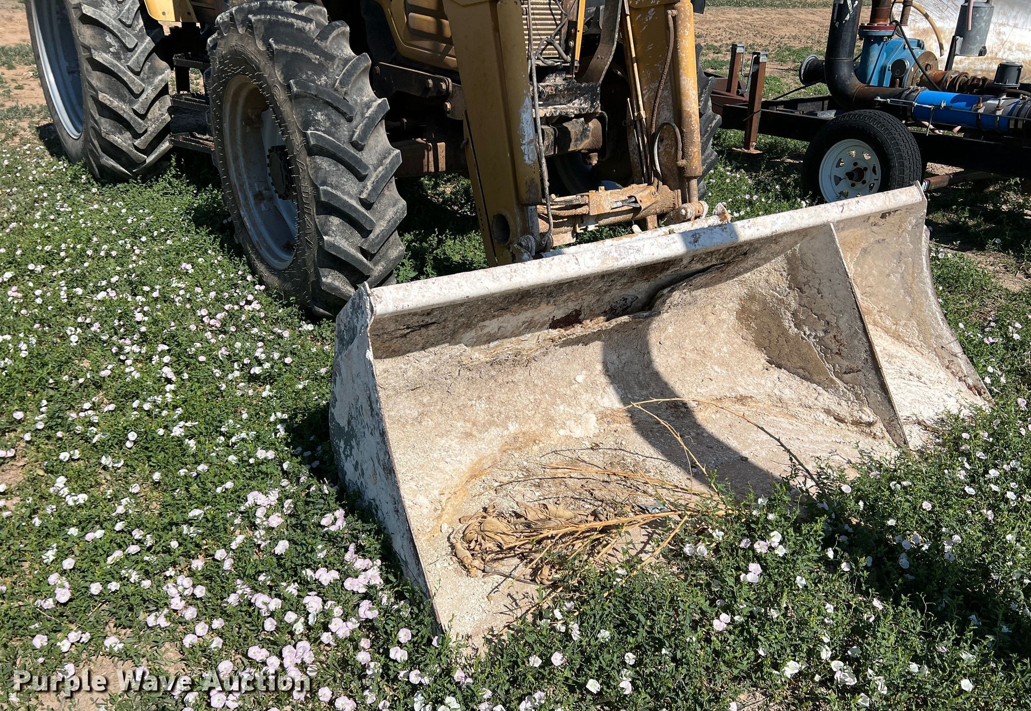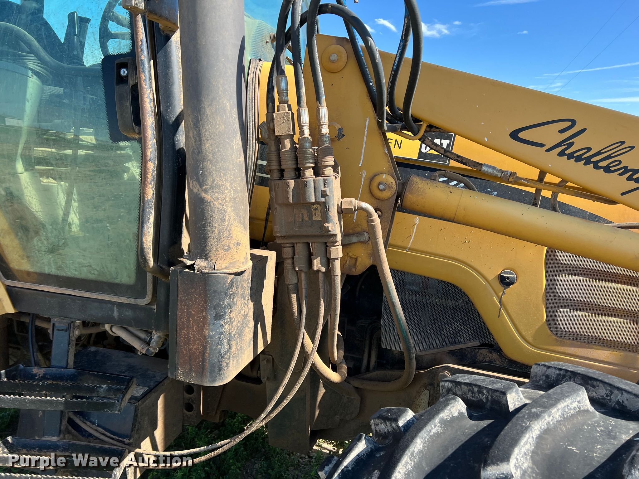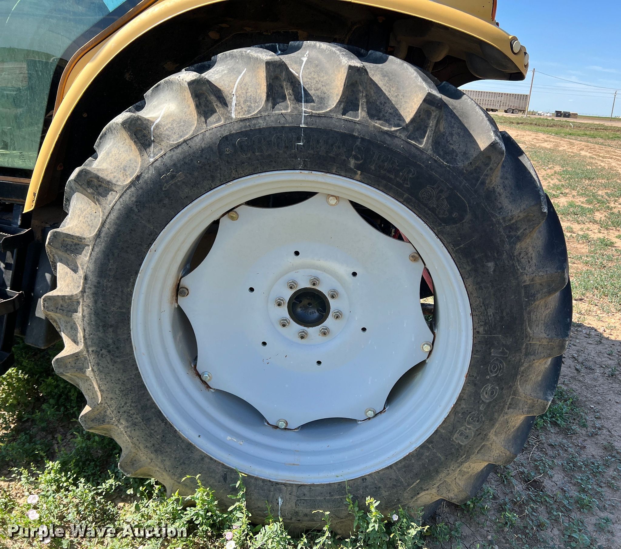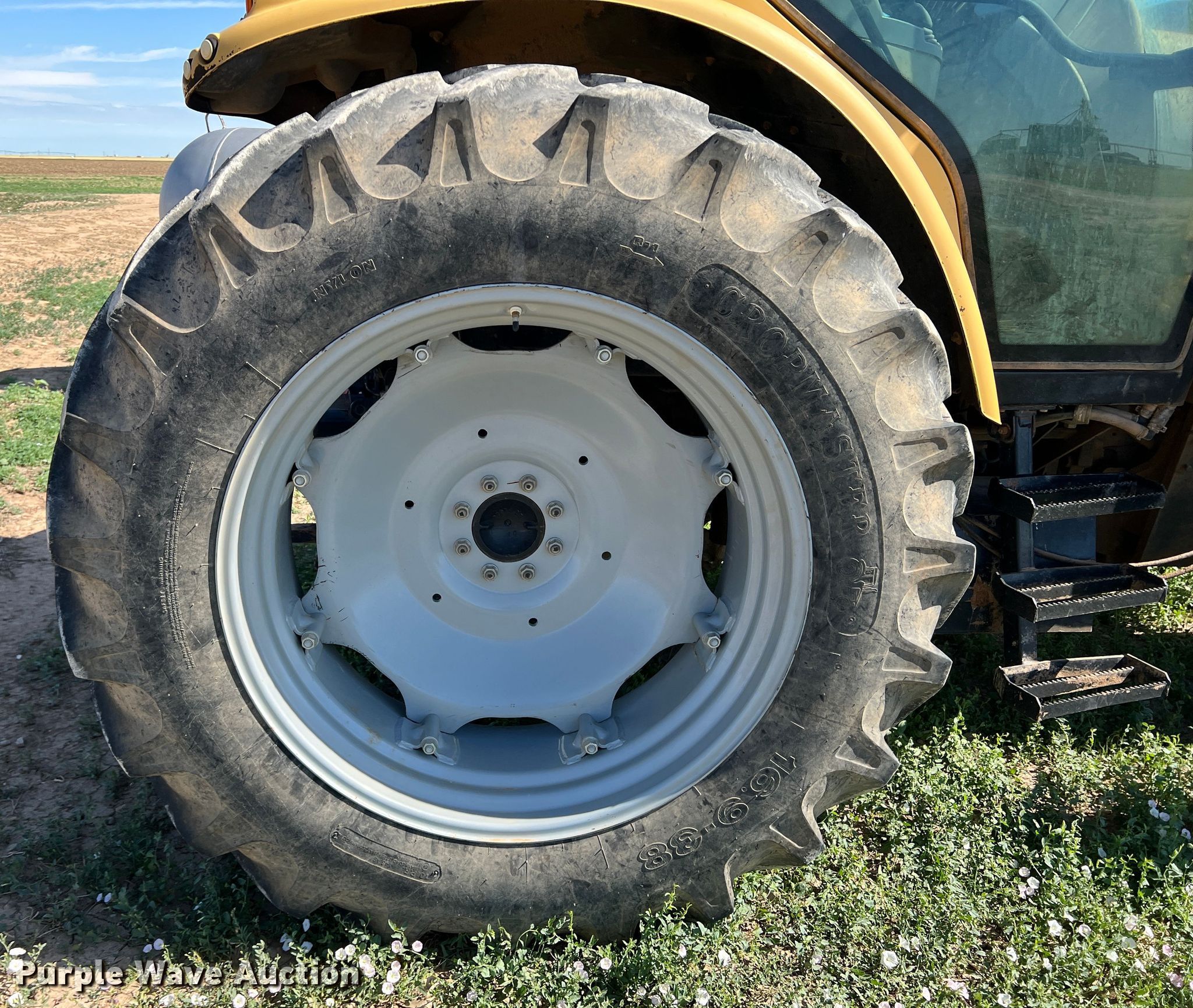 AGCO MT465B MFWD tractor. Hours: 5,090 on meter, Serial: N281081. Engine Cylinders: 4, Fuel type: Diesel. Transmission Powershift, 12F - 12R, Left-hand reverser. Operators station AC, Heat. Features PTO: 1000, Hydraulic remote sets Rear: 2, Loader Challenger ML75, Controls: Joystick, Bucket Width: 81".. Tires Front: 340/85R28, Rear: 16.9-38. Seaboard Foods. Guymon, OK 73942