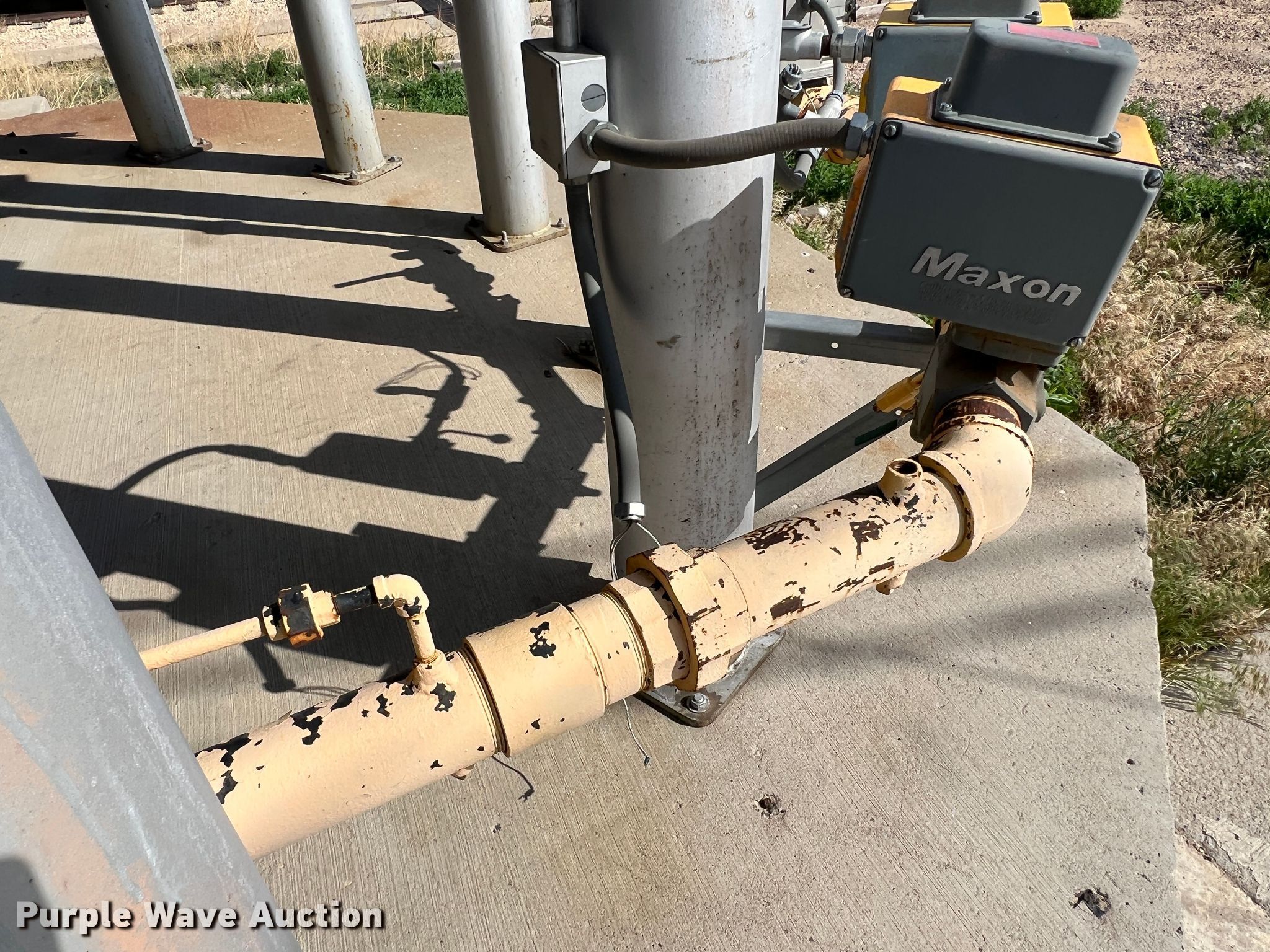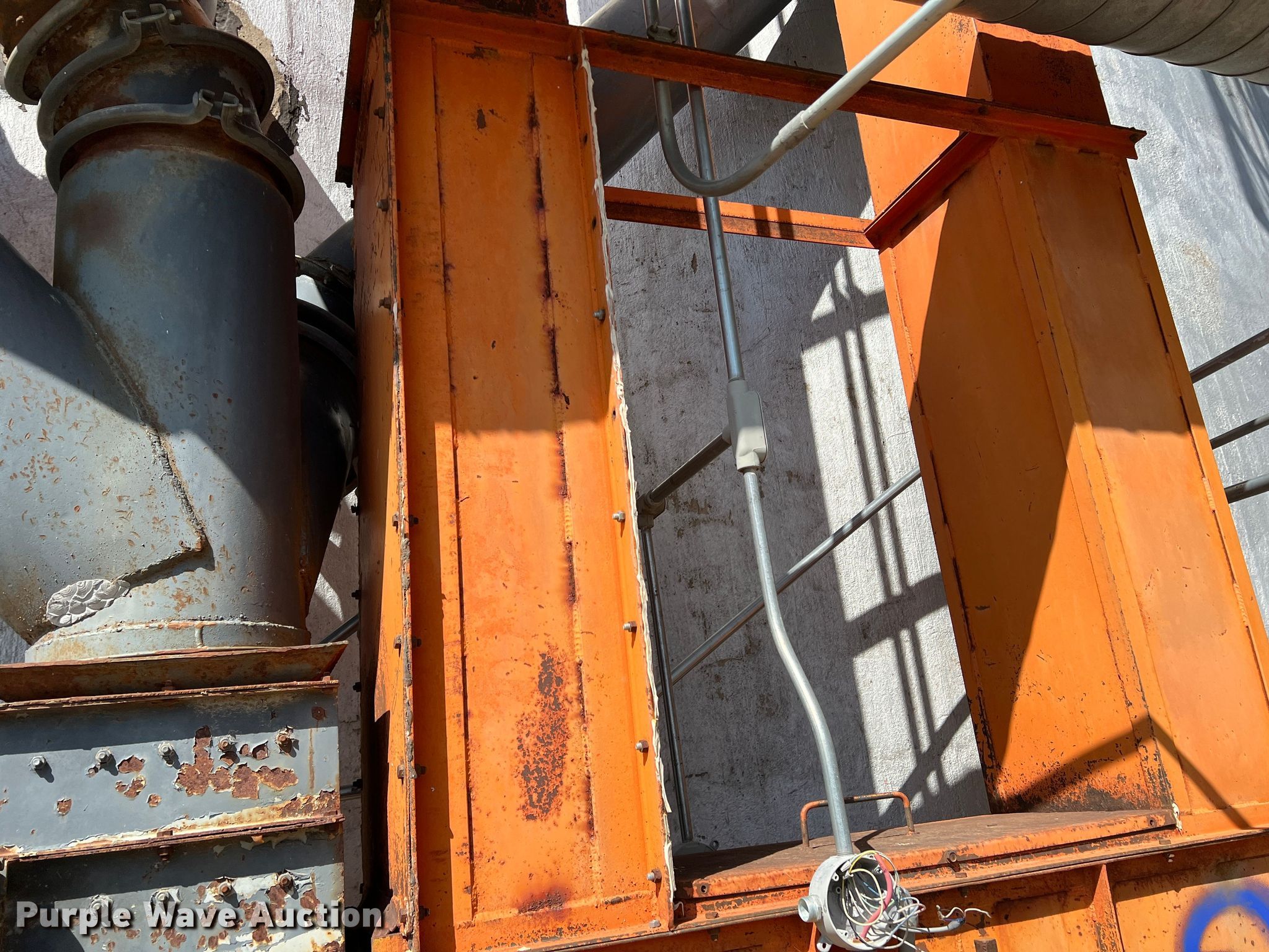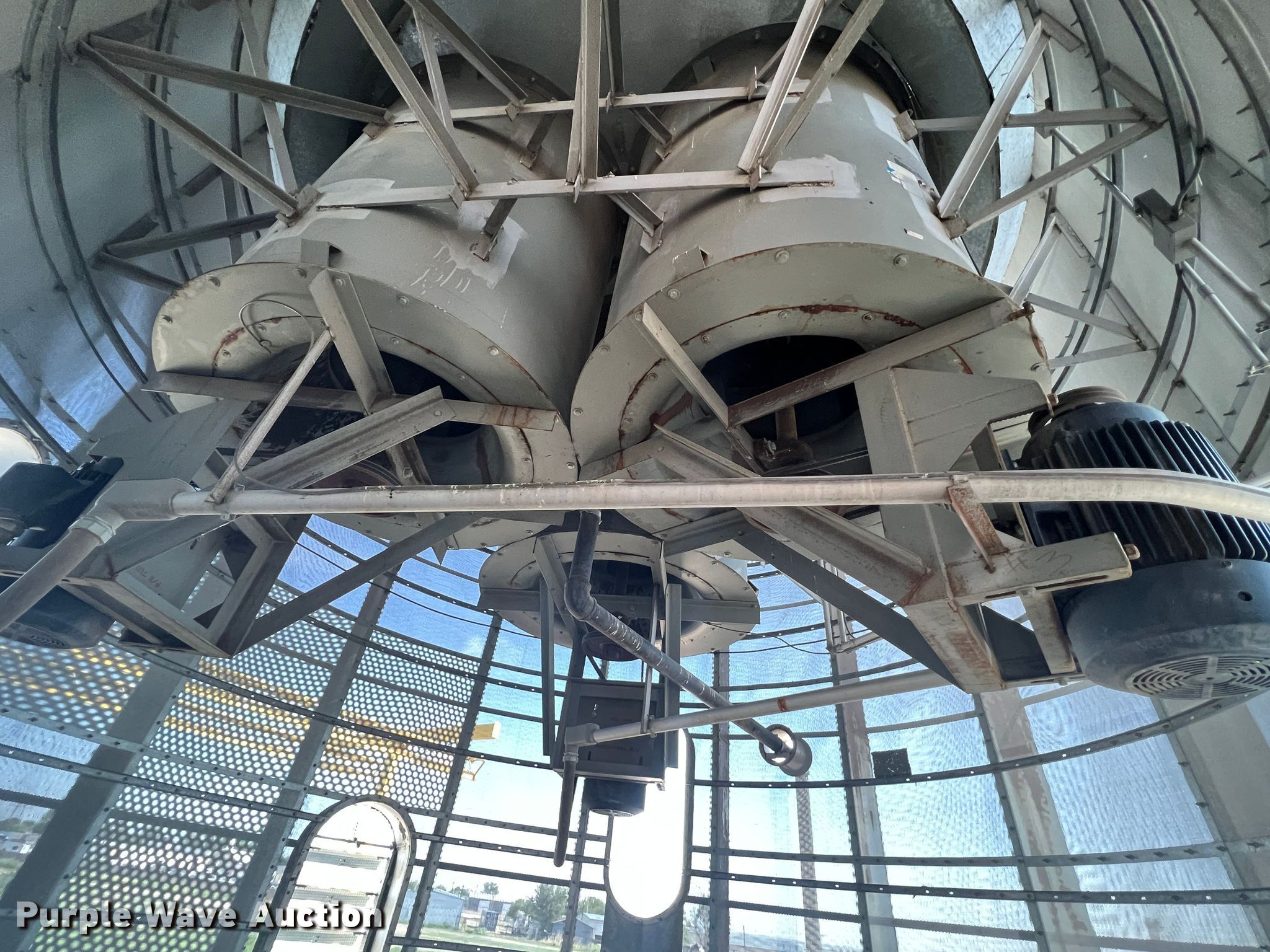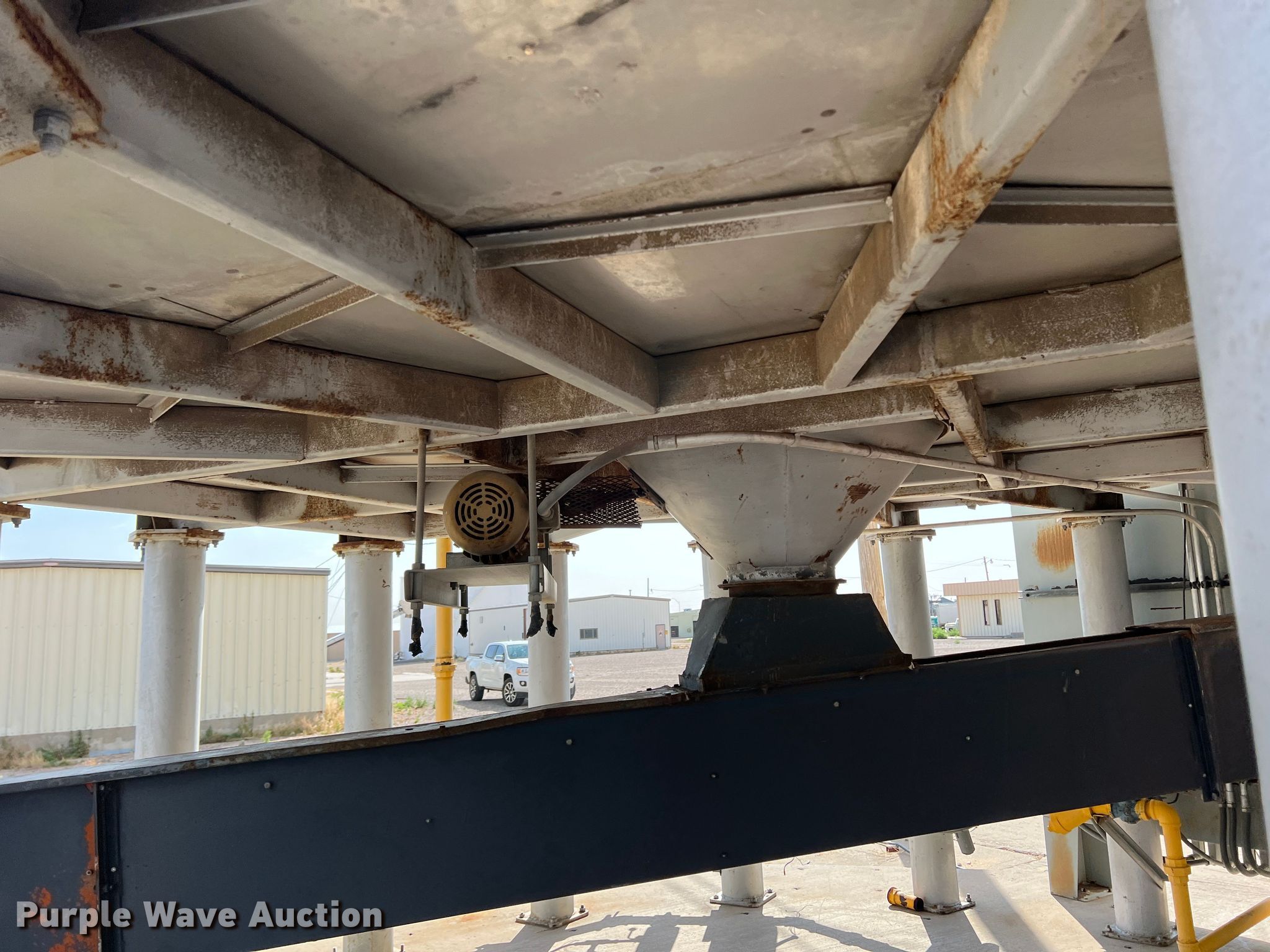 Purple Wave is selling a used Grain Dryer in Oklahoma. This item is a Zimmerman VT-3026 grain dryer with the following: Length: 37', Width: 10", Continuous flow, Bushel capacity: 2,500, Electric: Three phase, Heating: Natural gas, Dry grain leg: Approx 120' H, Wet grain leg: Approx 100' H