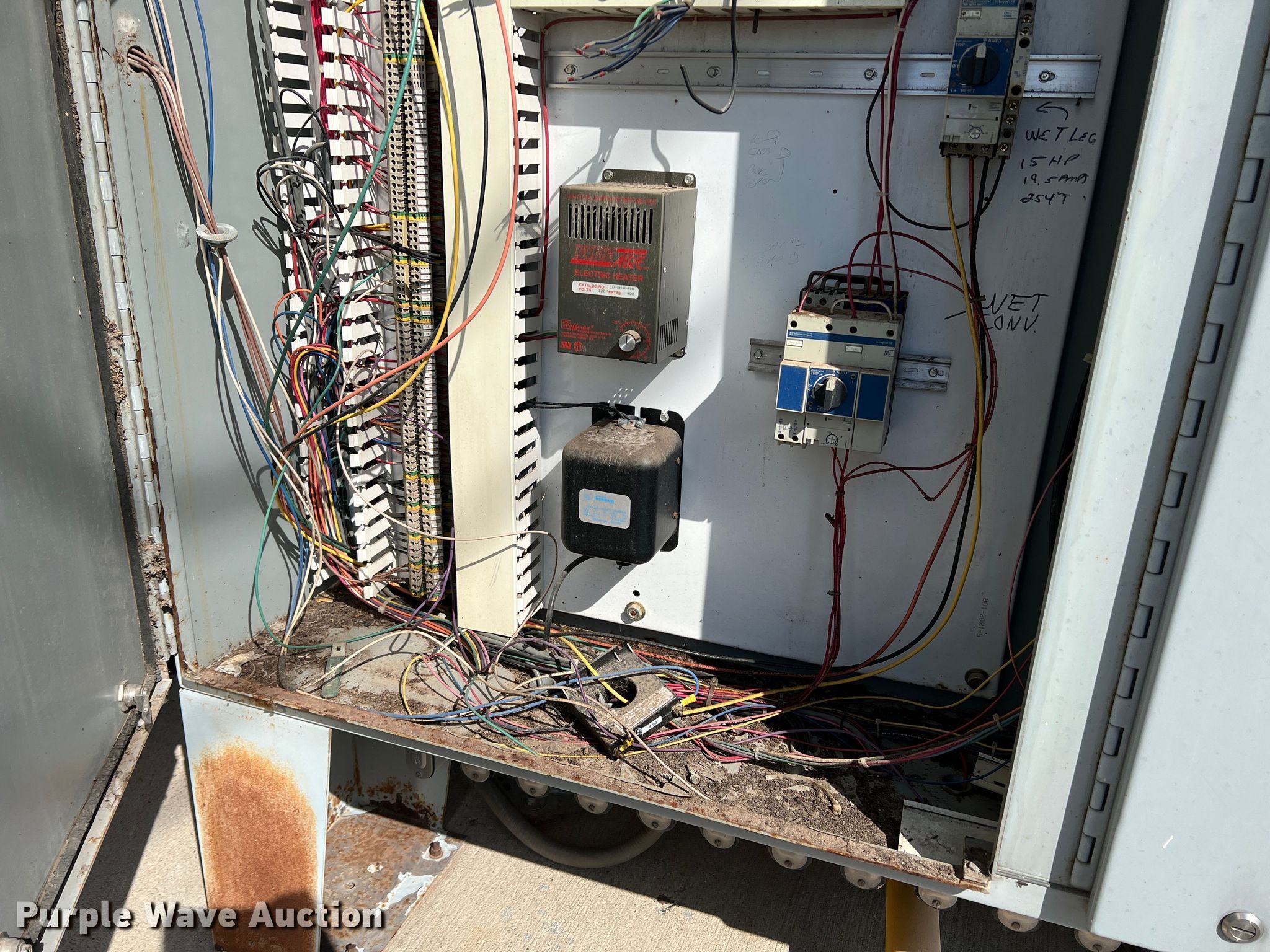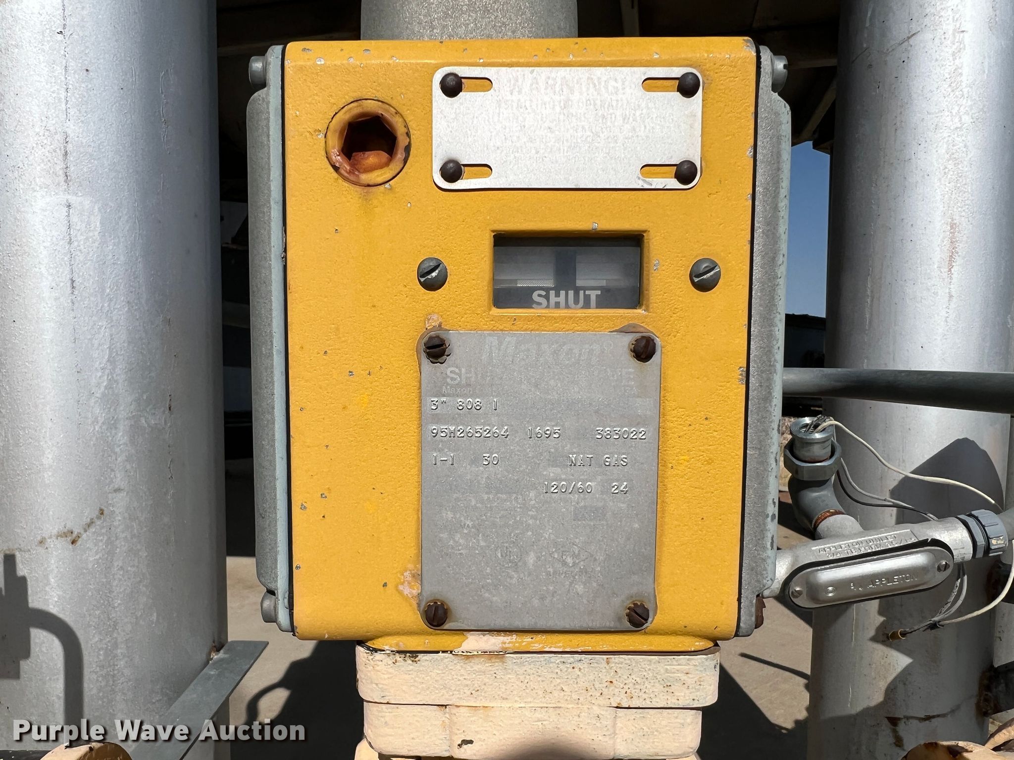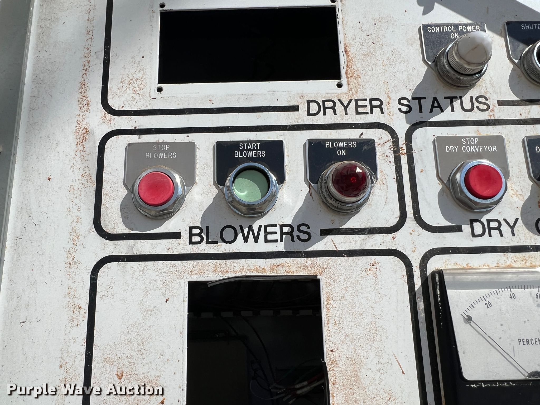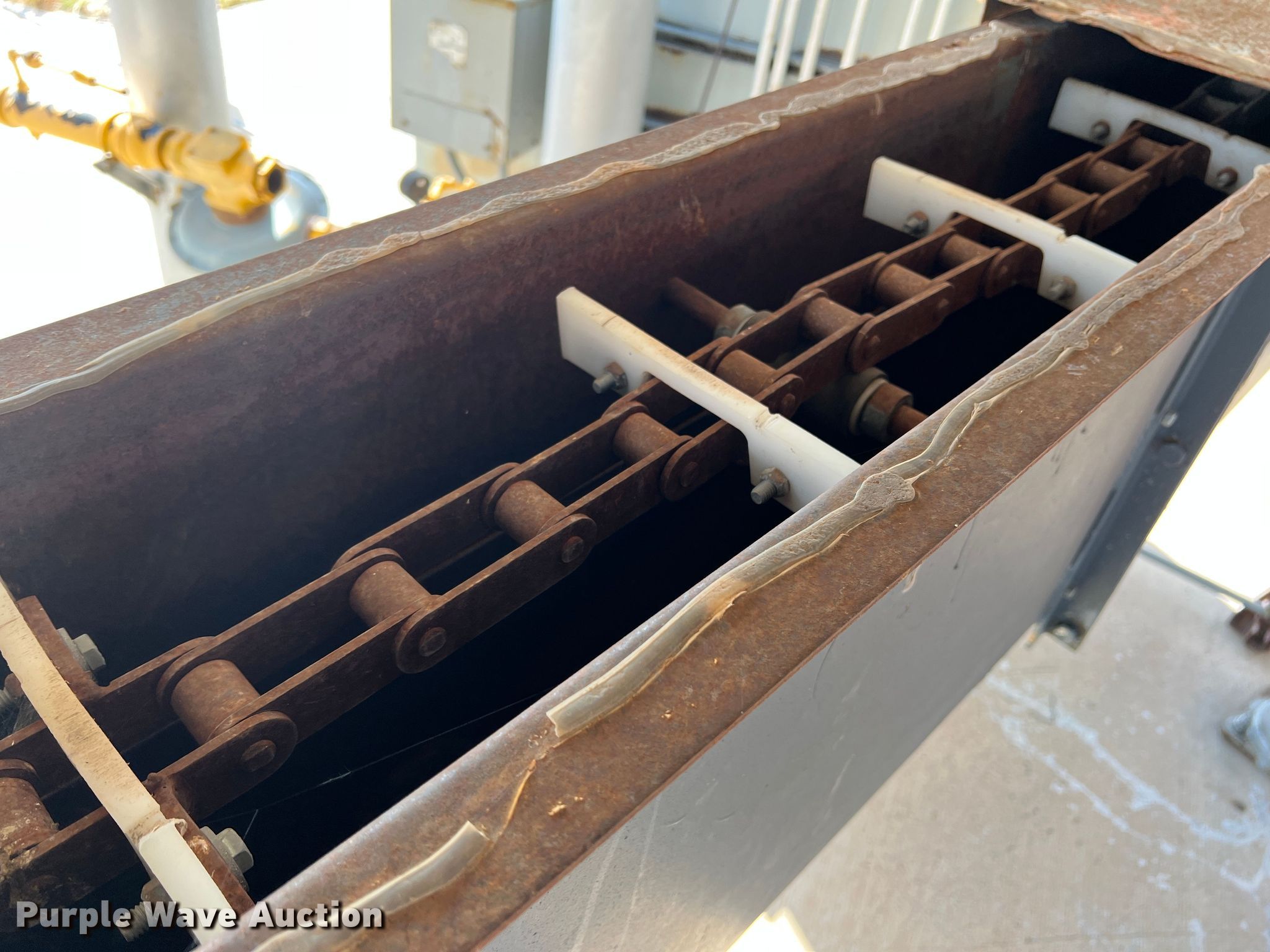 Purple Wave is selling a used Grain Dryer in Oklahoma. This item is a Zimmerman VT-3026 grain dryer with the following: Length: 37', Width: 10", Continuous flow, Bushel capacity: 2,500, Electric: Three phase, Heating: Natural gas, Dry grain leg: Approx 120' H, Wet grain leg: Approx 100' H