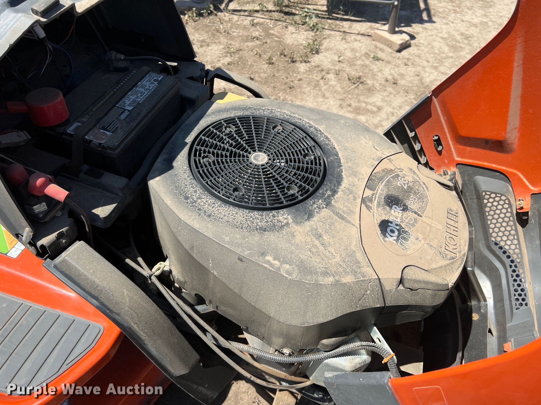 Husqvarna LGT2654 lawn mower. Hours: 390 on meter, Cutting width: 54", Serial: 061914A014508. Engine Kohler, Displacement: 747 cc, Cylinders: 2, Fuel type: Gas. Transmission Hydrostatic. Tires Front: 16x6.50-8, Rear: 22x9.50-12. 5057 R Rd. Plains, KS 67869