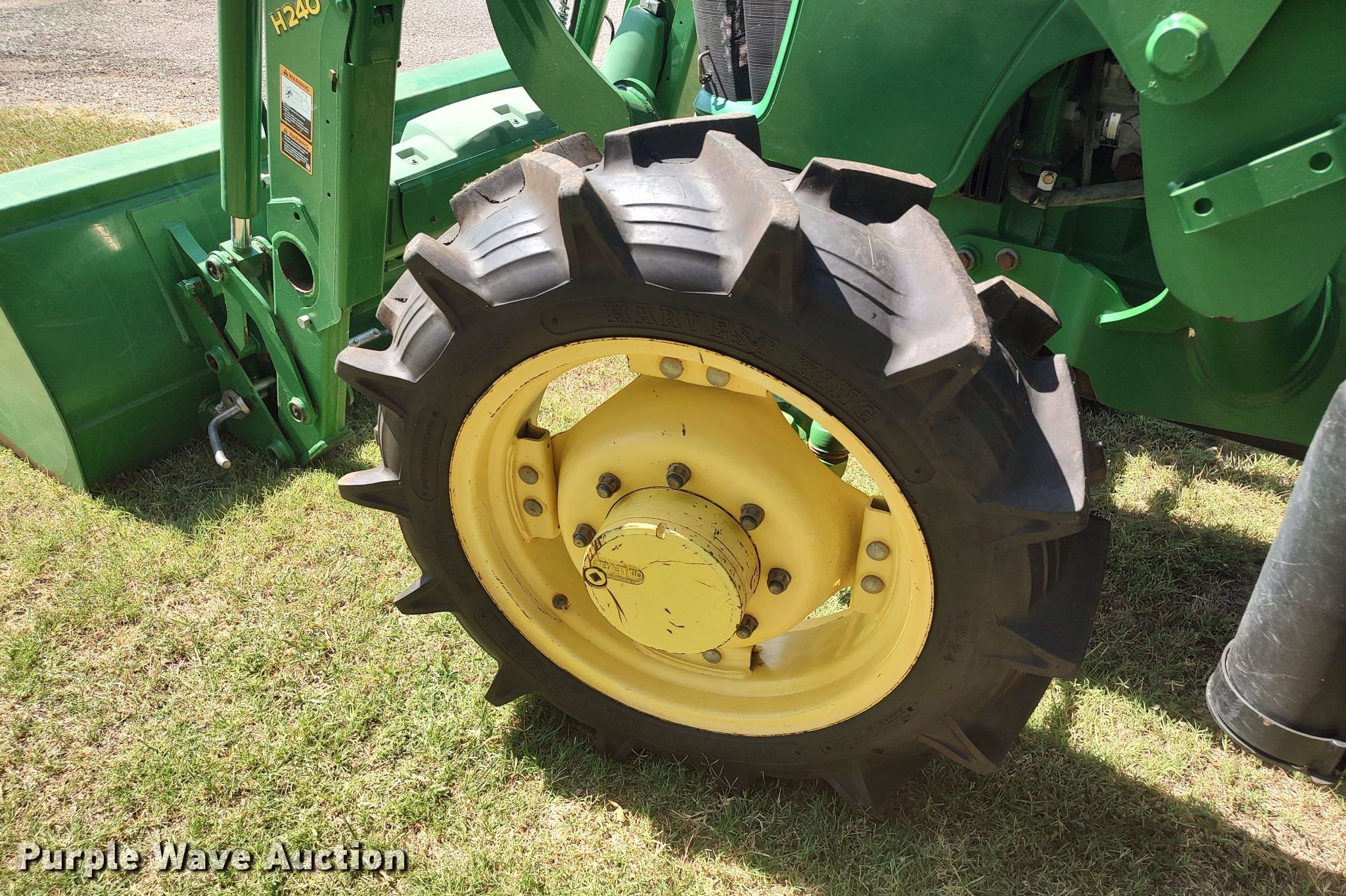 2013 John Deere 5055E MFWD tractor. Hours: 1,016 on meter, Serial: 1LV5055EKD4140144. Engine John Deere 3029, Displacement: 2.9L, Cylinders: 3, Fuel type: Diesel. Transmission Synchro, 9F - 3R. Operators station AC, Heat. Features PTO: 540, Three point, Seven pin outlet, Hydraulic remote sets Rear: 1, Loader John Deere H240, Controls: Joystick, Bucket Width: 75".. Tires Front: 9.5-24, Rear: 16.9-28. 22906 N 2860 Rd. Kingfisher, OK 73750