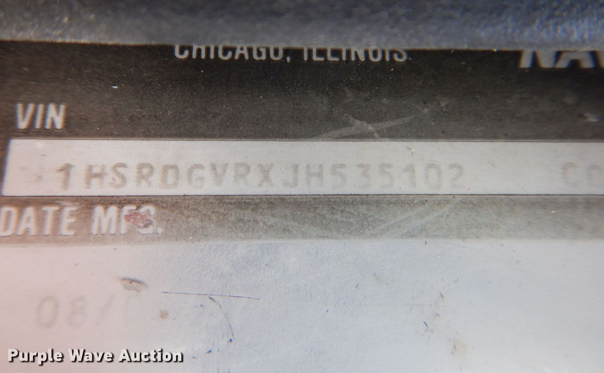 1988 International 9600 semi truck. Miles: 866,705 on odometer, VIN: 1HSRDGVRXJH535102. Engine Cylinders: 6, Fuel type: Diesel, Engine brake. Transmission Eaton Fuller, Manual, Speed: 9. Chassis Axles: Tandem, Differential lock: Inter-axle, Suspension: Air Dump valves, Brakes: Air, Wheelbase: 172". Interior Heat, Sleeper Sleeper length: 3', Beds: Single. Features Fifth wheel type: Sliding, Fuel tank: Dual. Tires Front: 275/80R22.5, Rear: 2955/75R22.5. Notes Windshield chipped or cracked, Cab lift issues, No mattress included. Iowa title. Chafa Transport LLC. 2207 250th Street. Washington, IA 52353