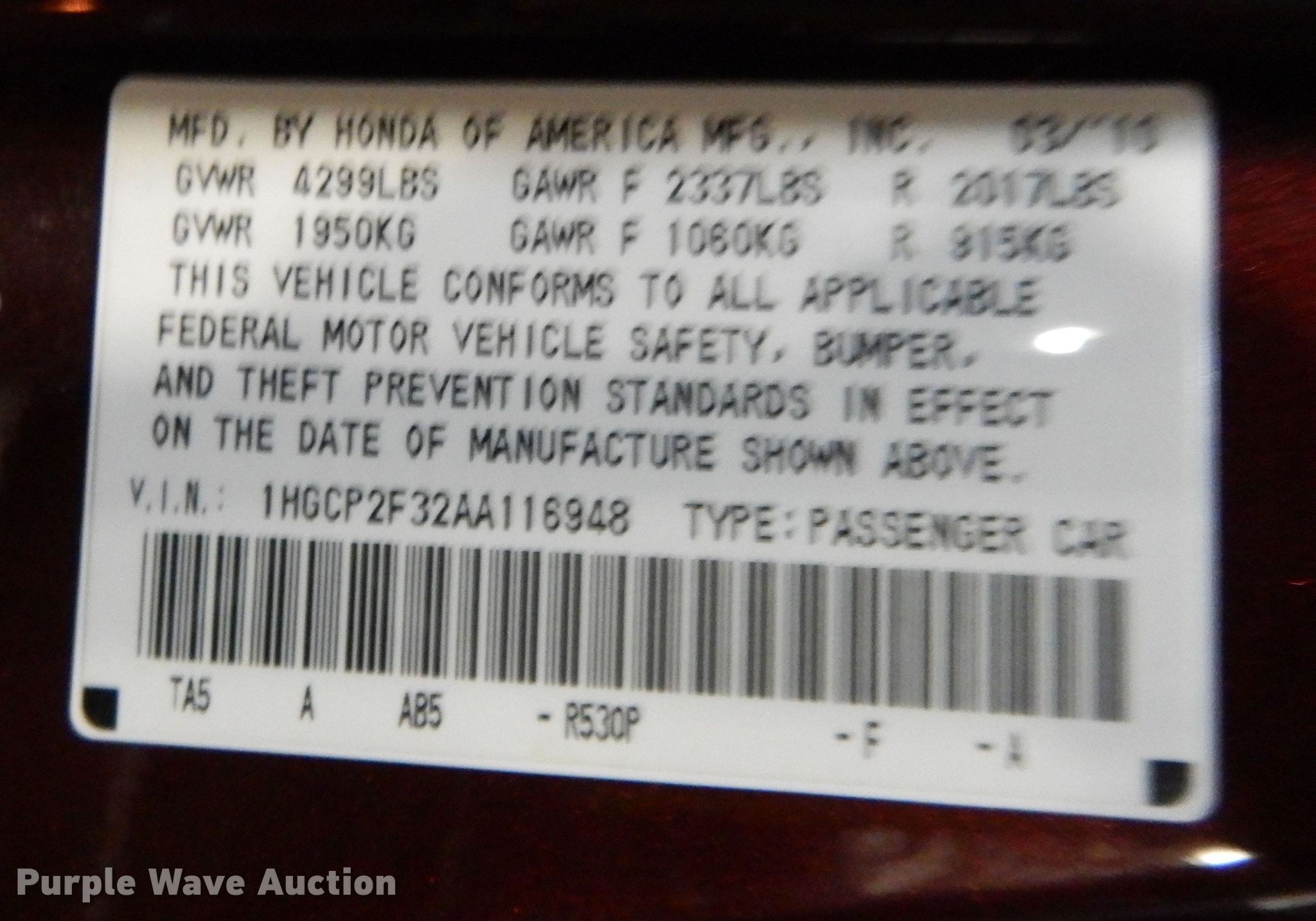 Purple Wave is selling a used Passenger Vehicle in Kansas. This item is a 2010 Honda Accord LX with the following: Miles: 116,432 on odometer, VIN: 1HGCP2F32AA116948