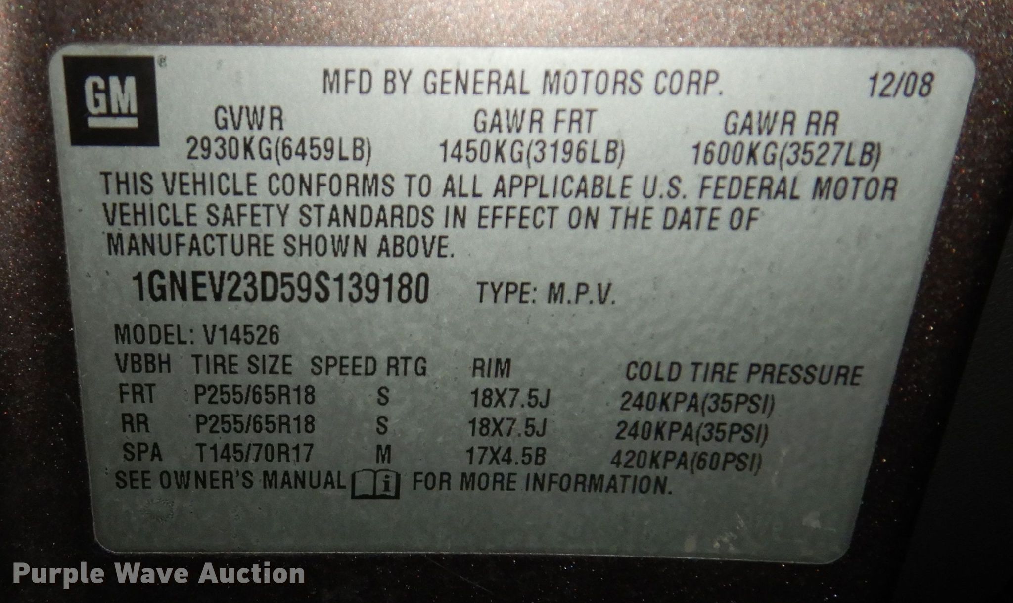 Purple Wave is selling a used Passenger Vehicle in Kansas. This item is a 2009 Chevrolet Traverse LT SUV with the following: Miles: 177,501 on odometer, VIN: 1GNEV23D59S139180