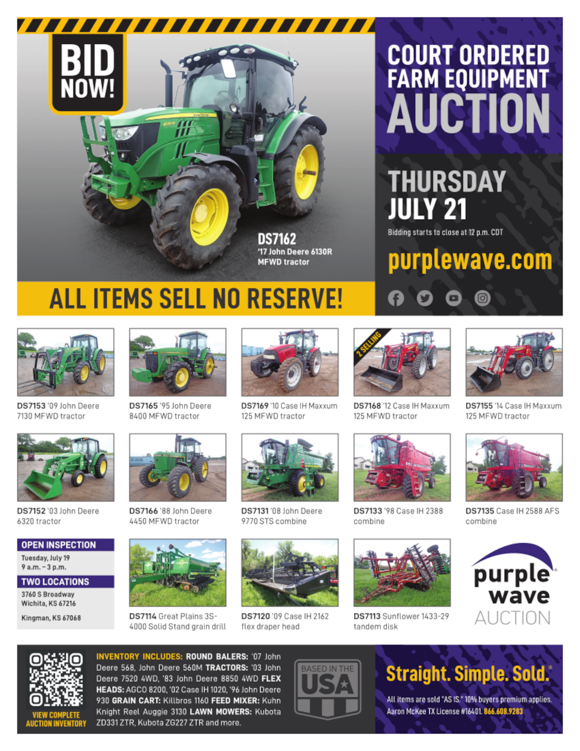 SOLD! Thursday July 21 Court Ordered Ag Equipment Auction