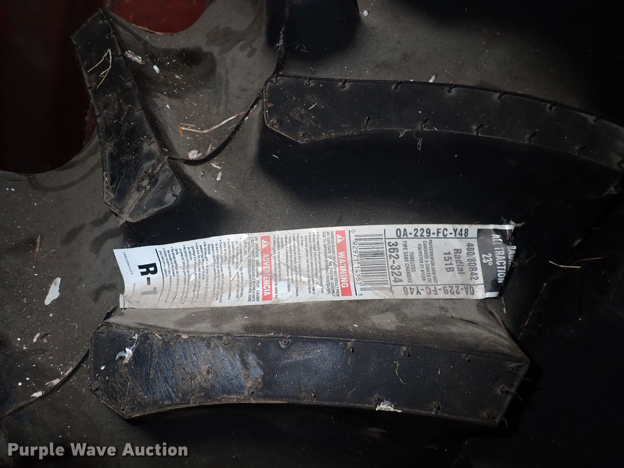 Purple Wave is selling a used Industrial Tires or Tracks in Kansas. This item is a (4) Firestone 480/80R42 tires with the following: (4) Firestone 480/80R42 tires. Hutchinson, KS 67502