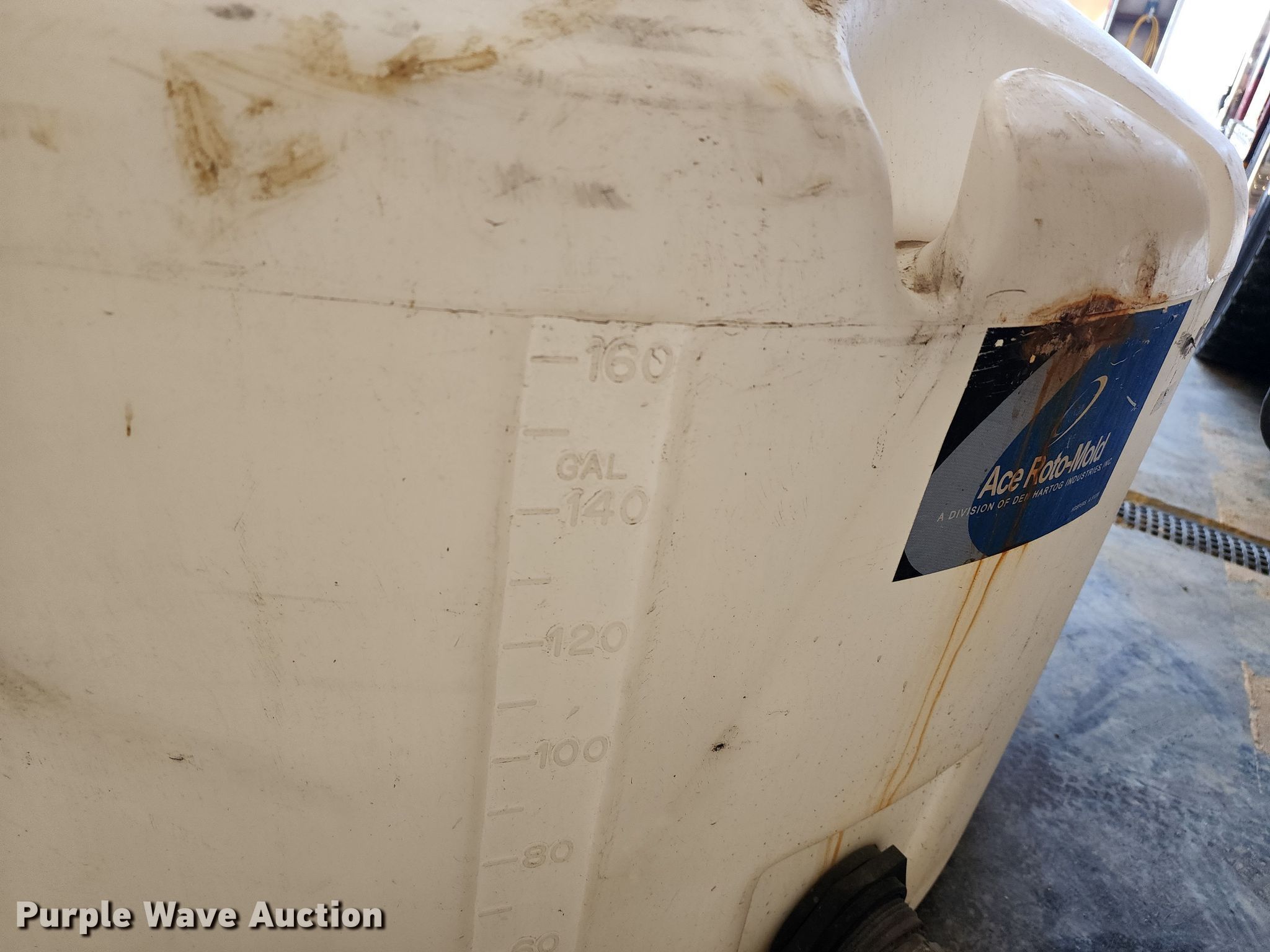 Purple Wave is selling a used Tanks in Missouri. This item is a Poly tank with the following: Capacity: 160 gallons