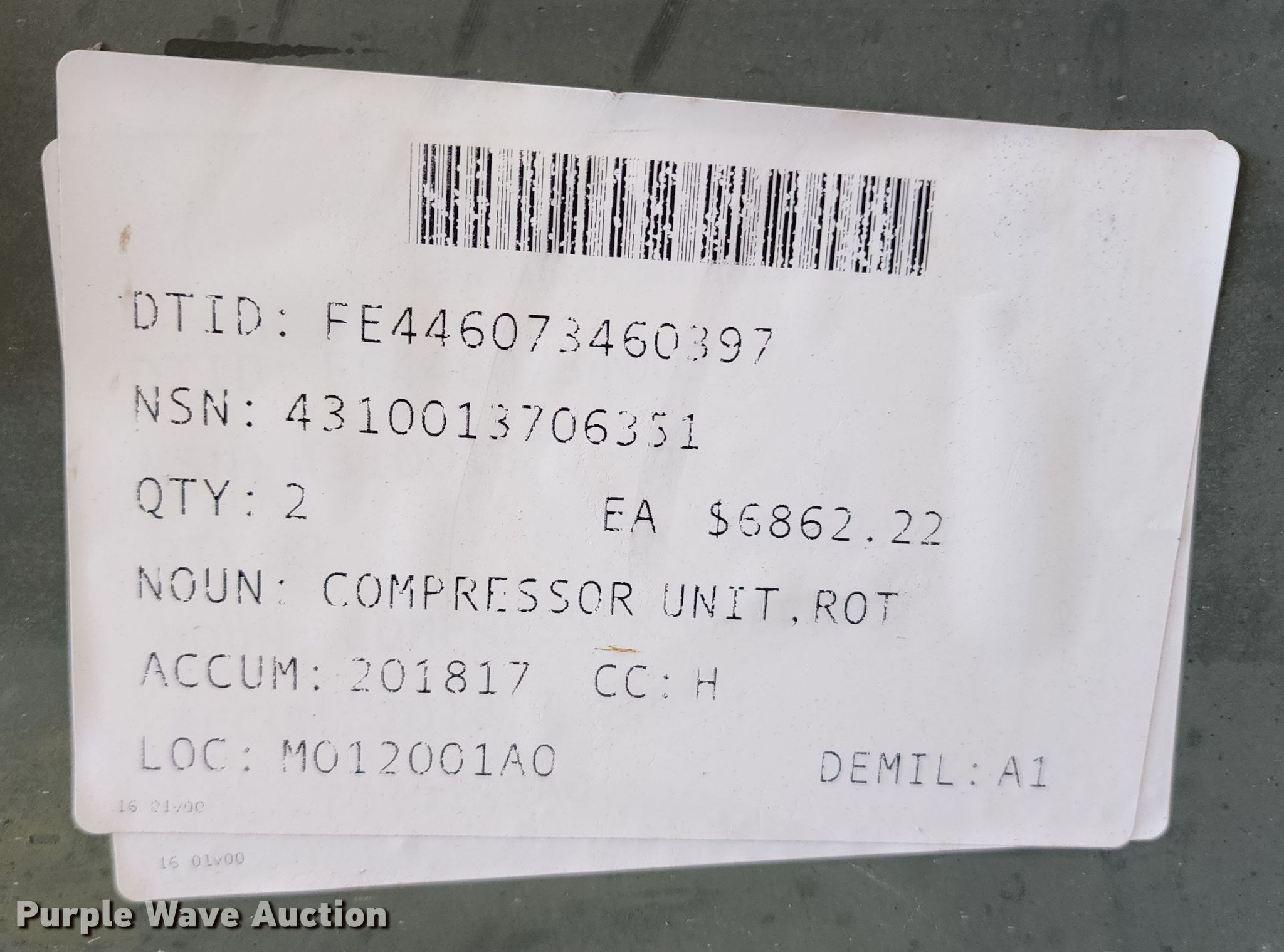 Take a look at this used Air compressor being sold on July 26th, 2022 in the SOLD! July 26 Government Auction. Take a look at all of the item information below or take a look at similar auctions for Compressors.