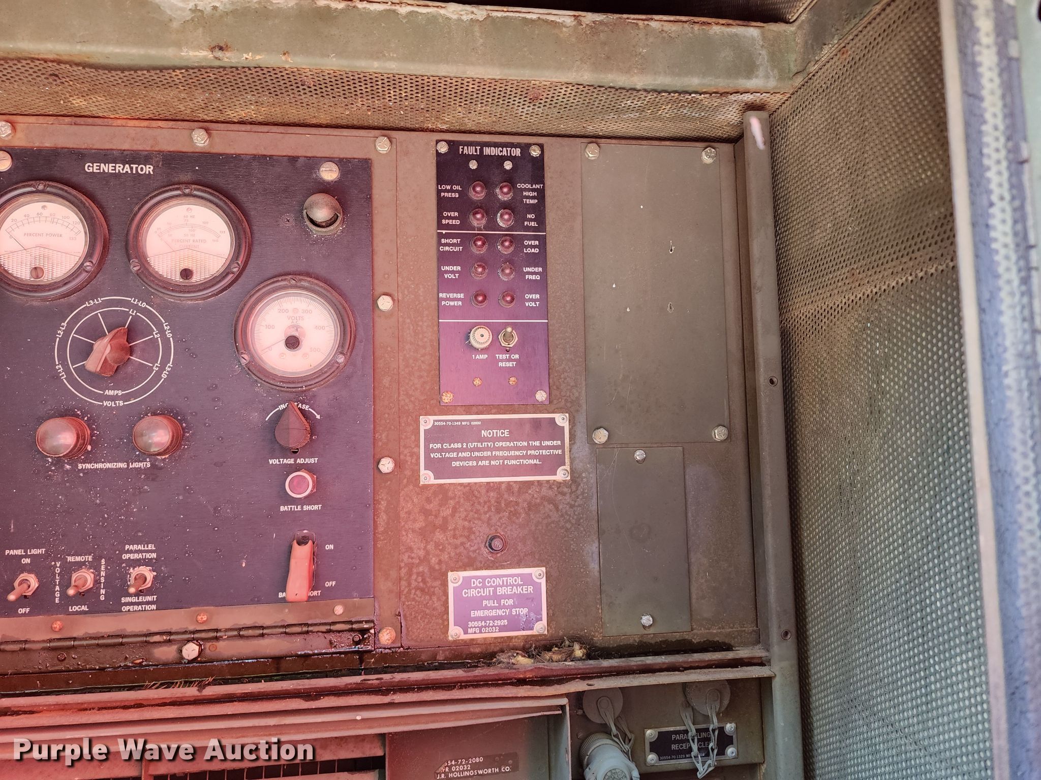 Purple Wave is selling a used Generator Set in Missouri. This item is a John R Hollingsworth MEP-004AAS generator with the following: Hours: 753 on meter, Serial: ASK15-1638