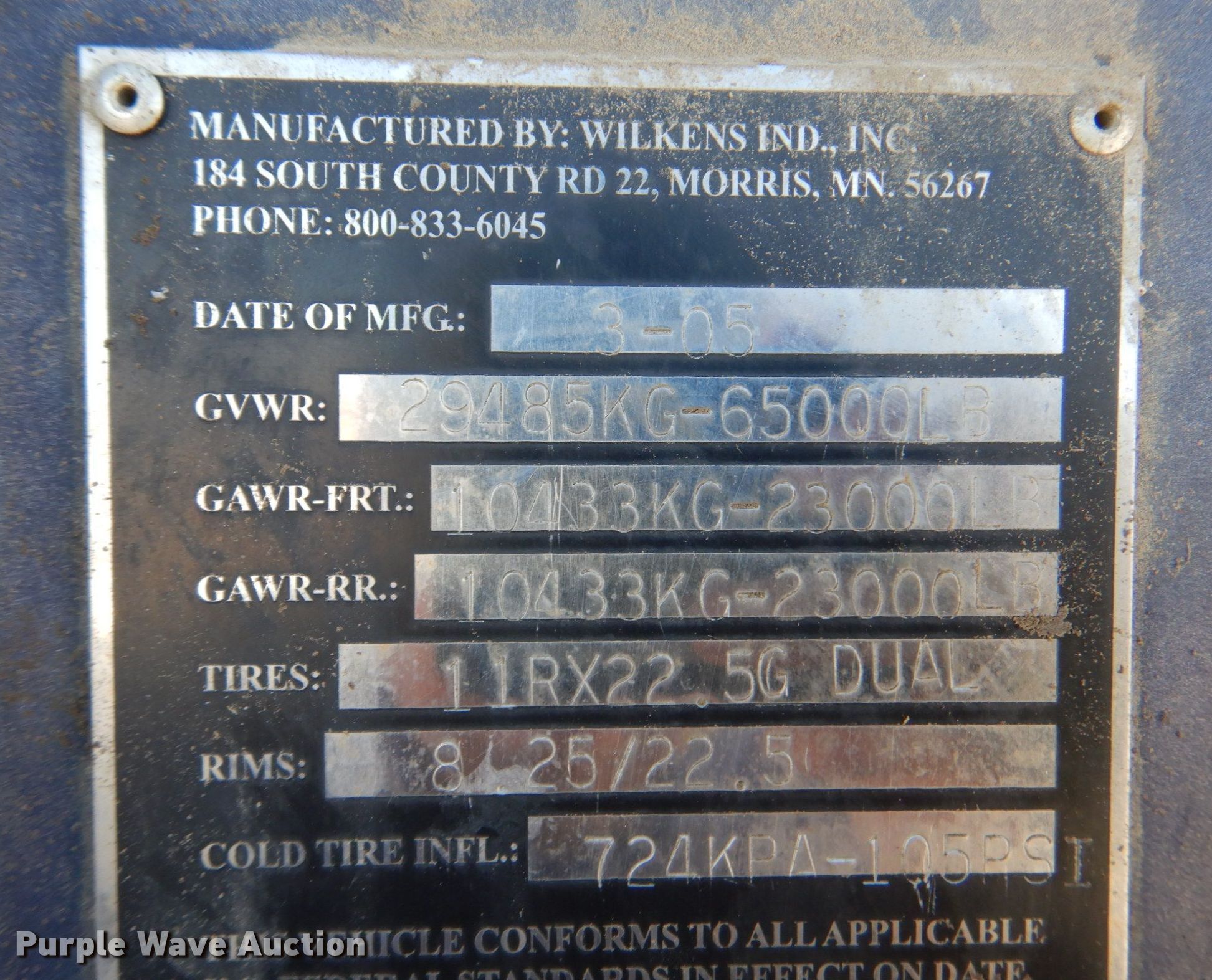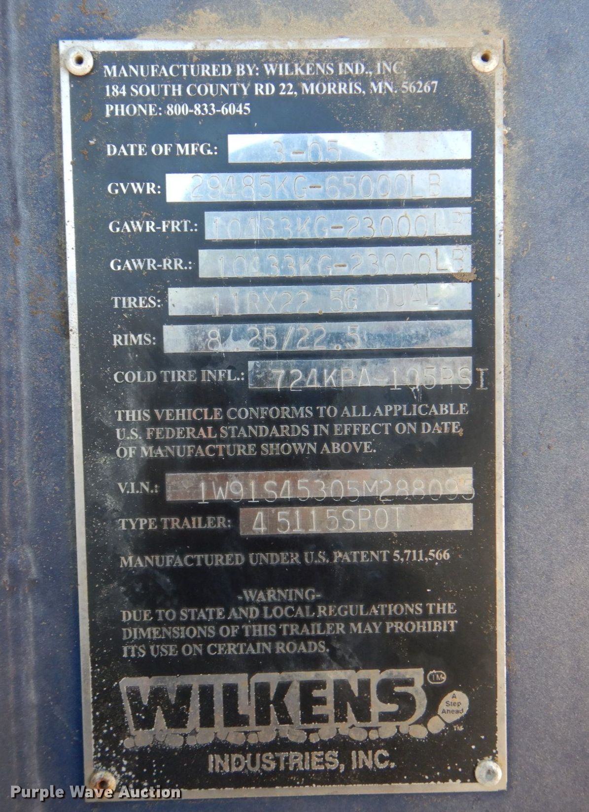 Purple Wave is selling a used Trailer Other in Nebraska. This item is a 2005 Wilkens 54115SPOT walking floor trailer with the following: VIN: 1W91S45305M288095, Unit #: 77406
