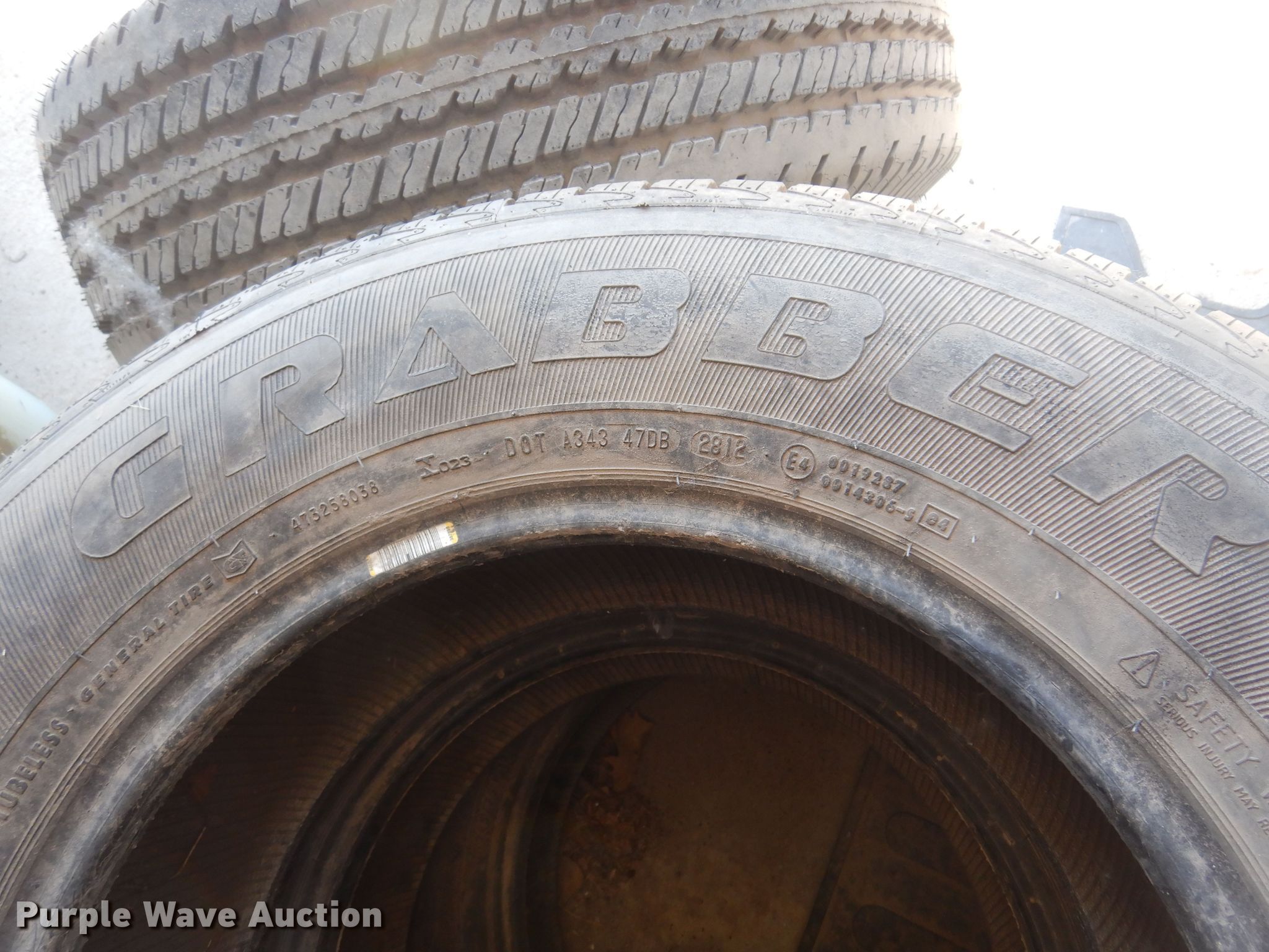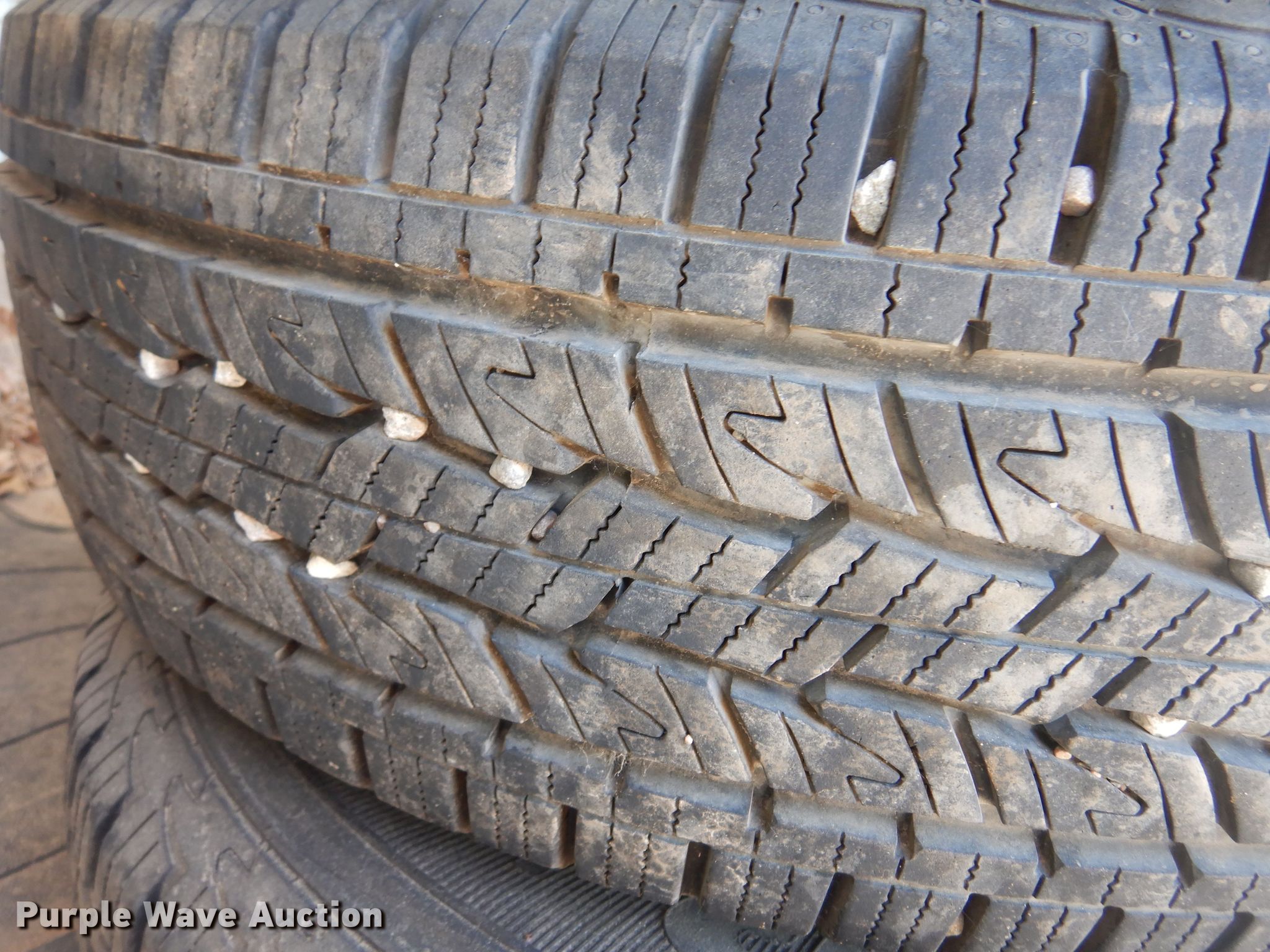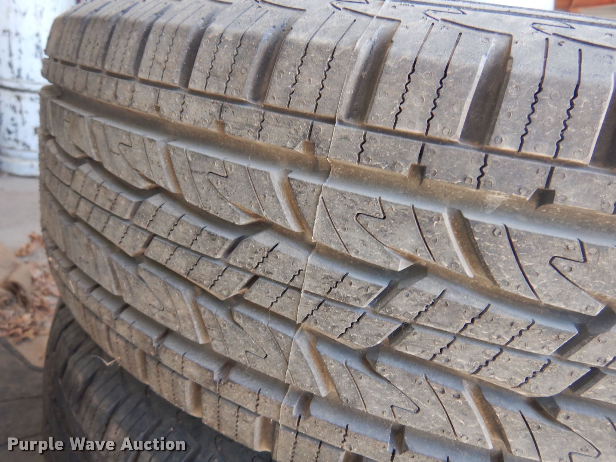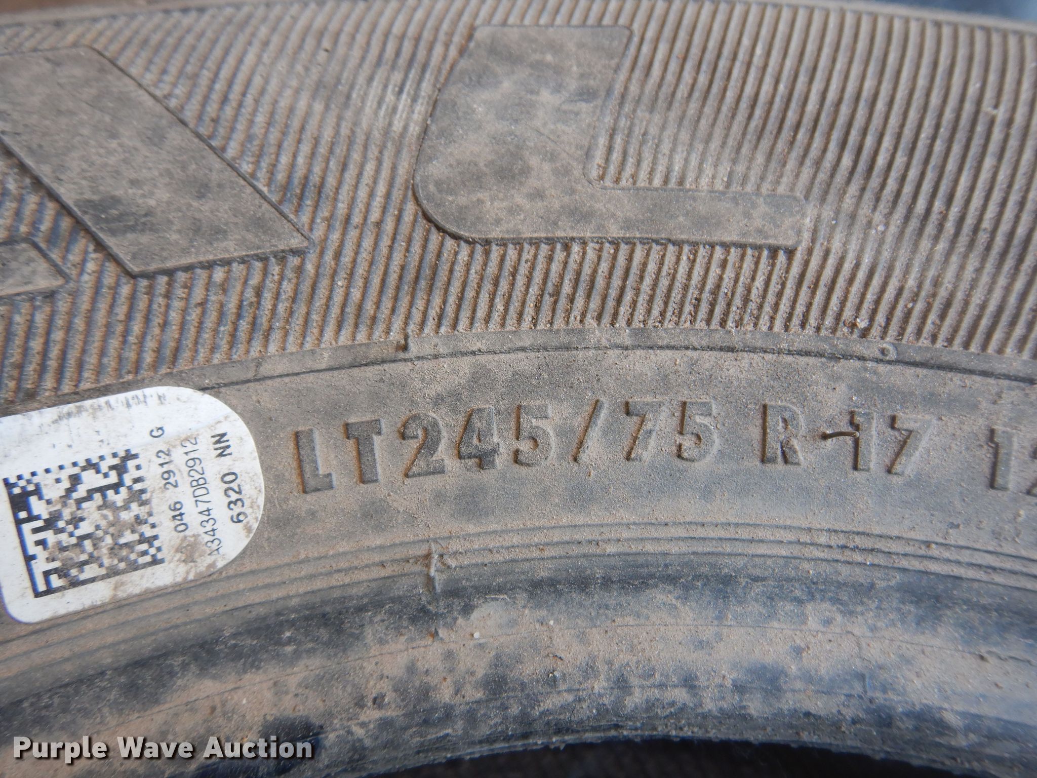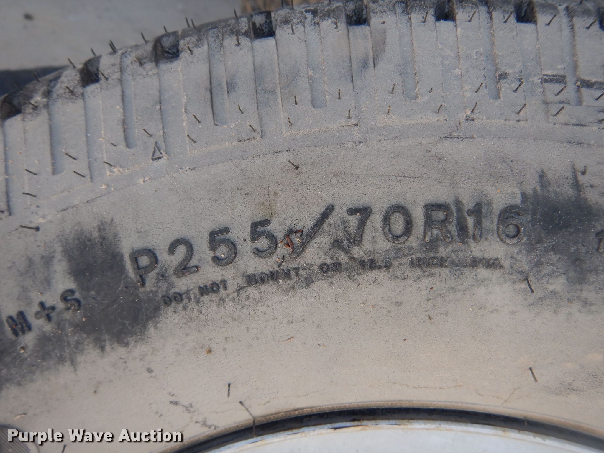 Purple Wave is selling a used Fleet Tires in Kansas. This item is a (4) tires with the following: Goodyear Wrangler 255/70R16 tire and wheel, (3) General Grabber 245/75R17, 8' rubber pickup truck bed mat