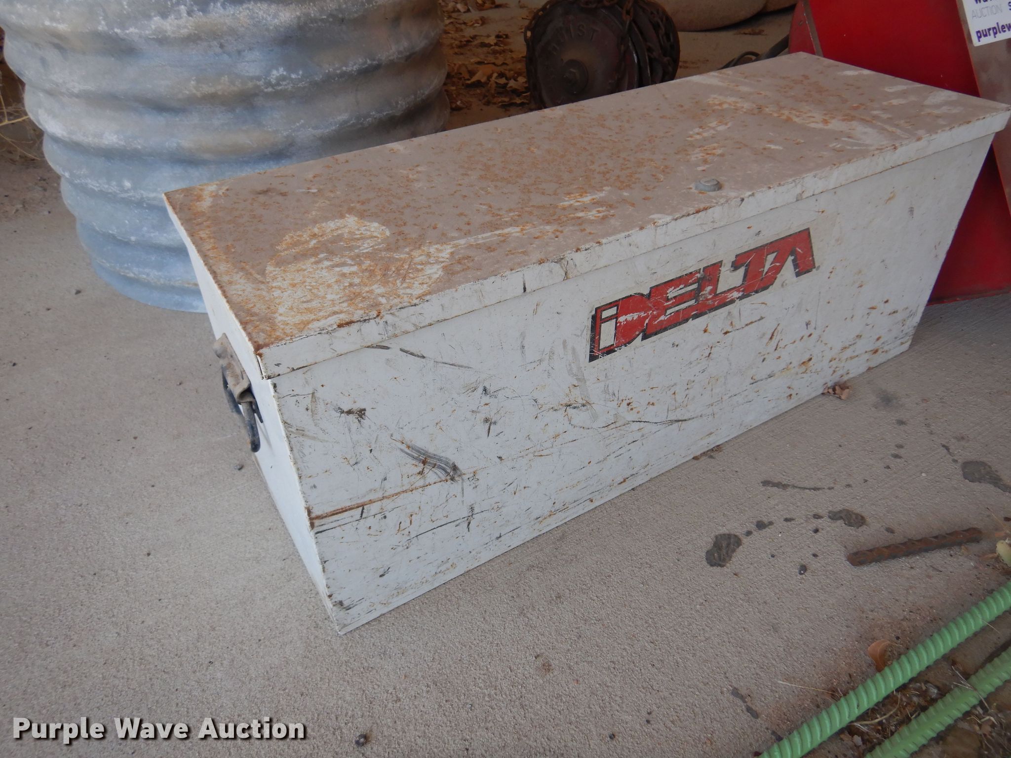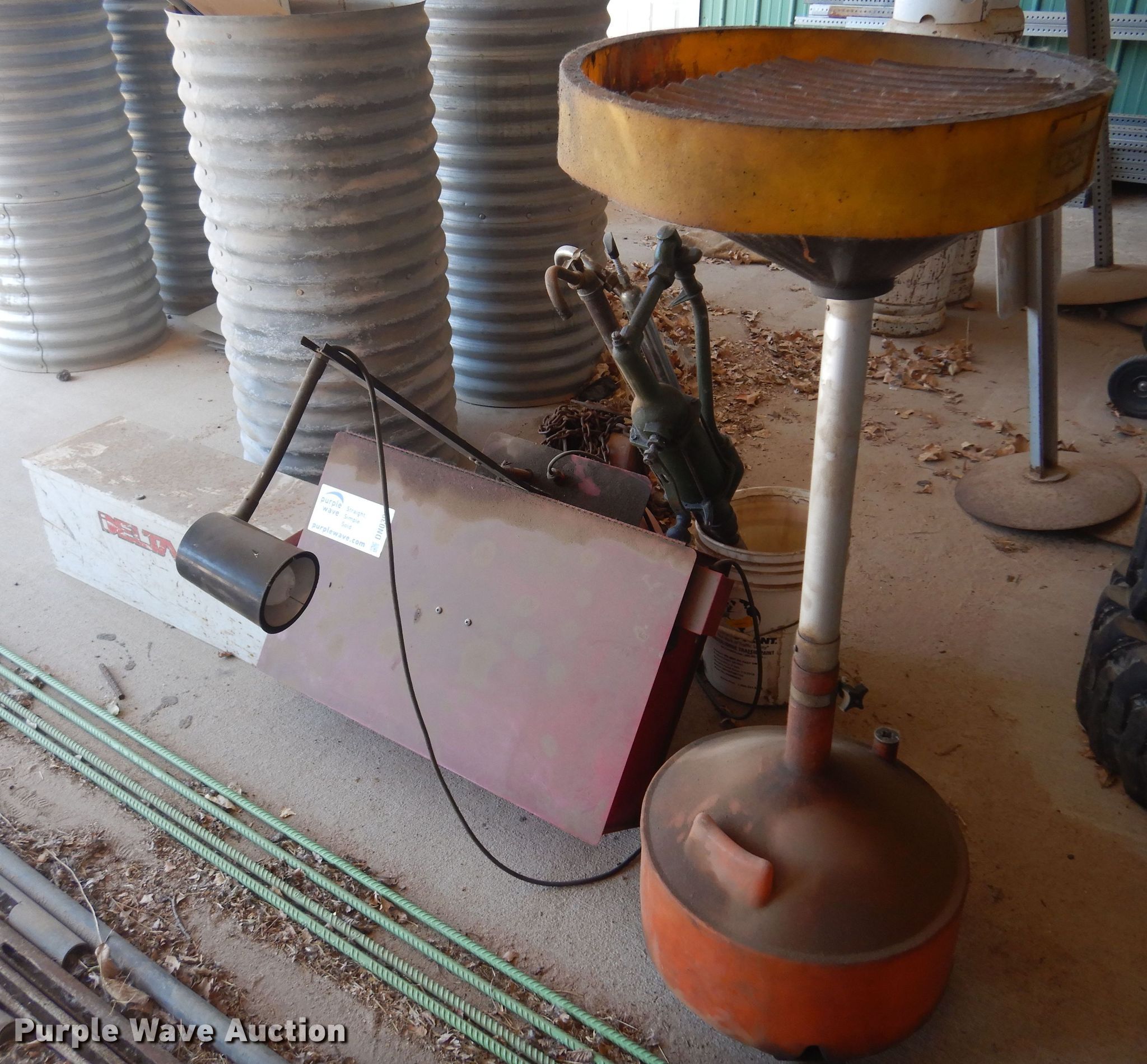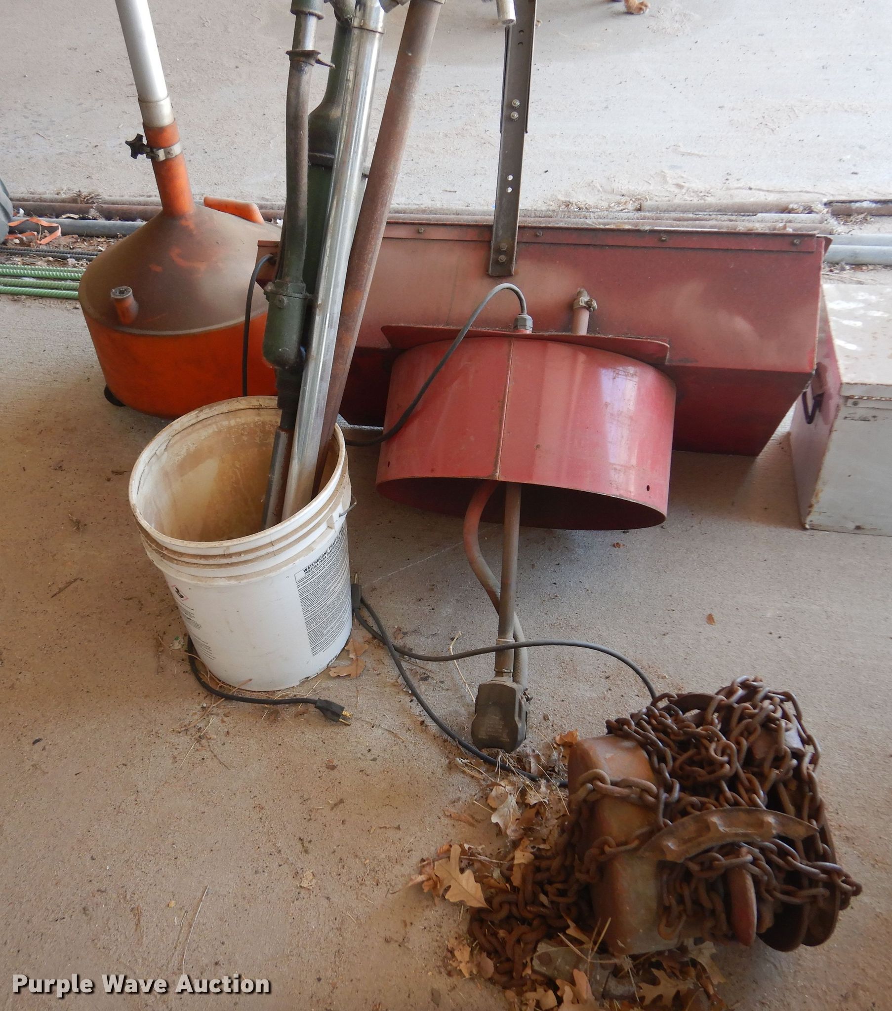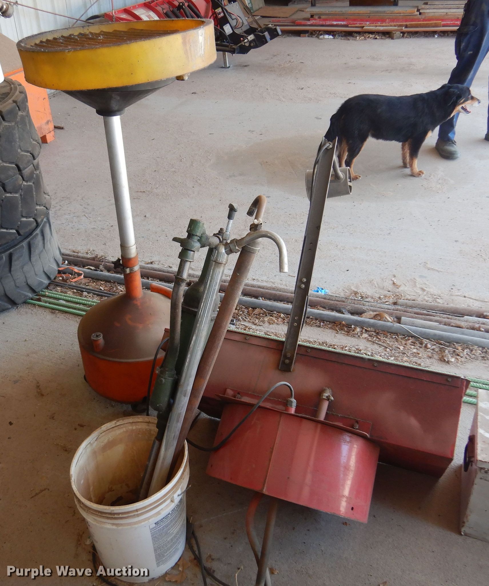 Purple Wave is selling a used Tools in Kansas. This item is a Tools with the following: Degreaser tank, Delta toolbox, 32" L x 11" W x 13" H, Todd Enterprises fluid container, Wright chain hoist, (3) fluid pumps, Unknown operating condition