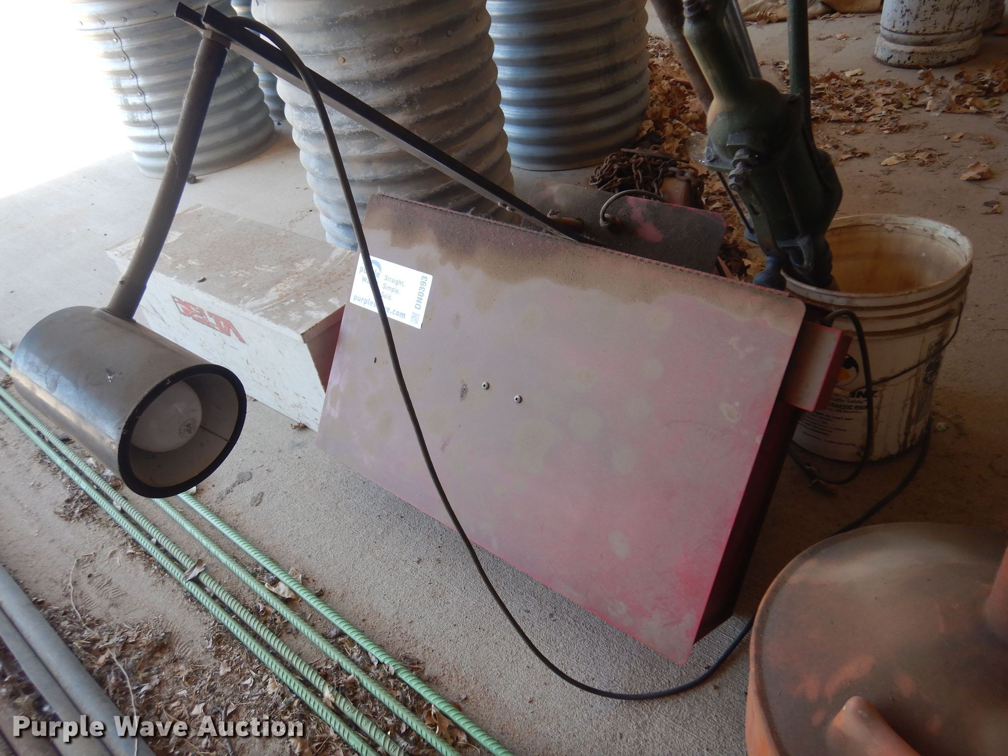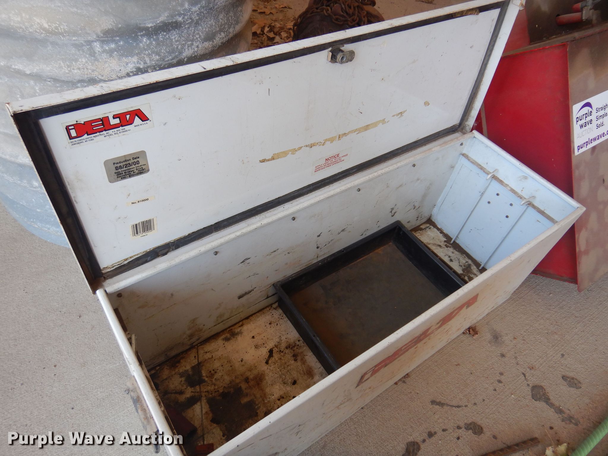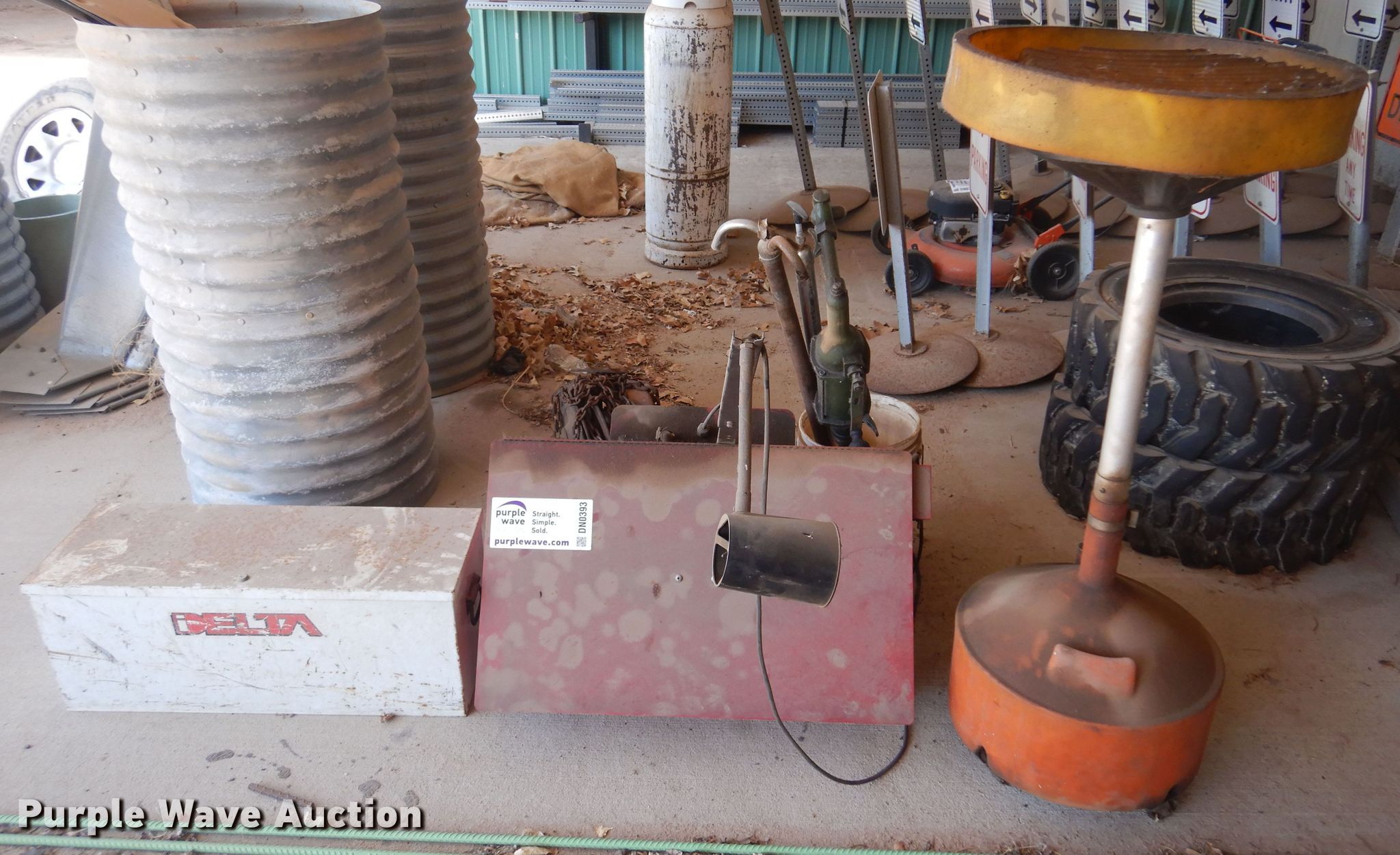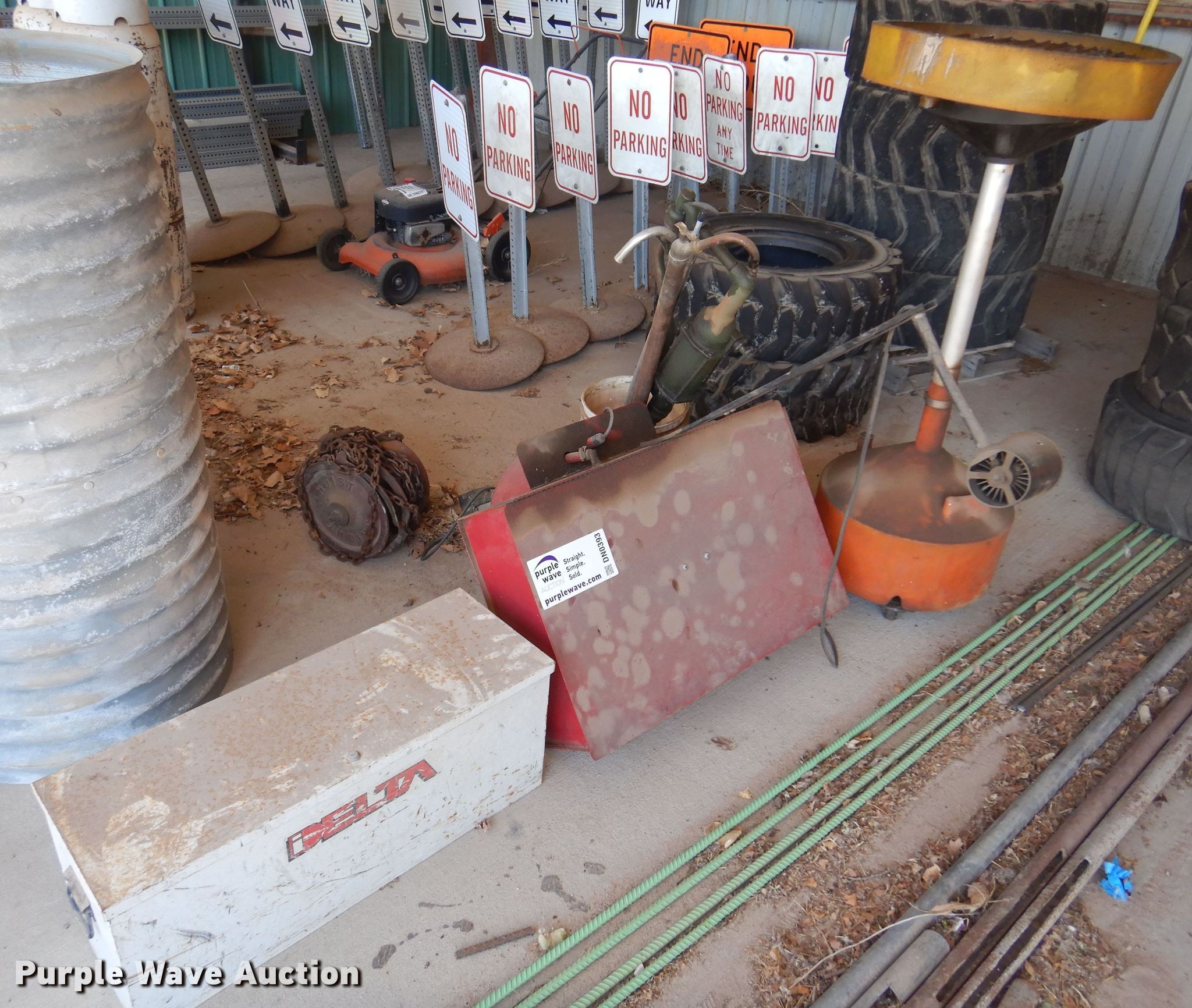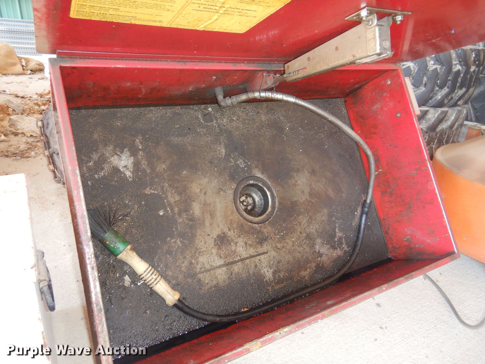 Purple Wave is selling a used Tools in Kansas. This item is a Tools with the following: Degreaser tank, Delta toolbox, 32" L x 11" W x 13" H, Todd Enterprises fluid container, Wright chain hoist, (3) fluid pumps, Unknown operating condition