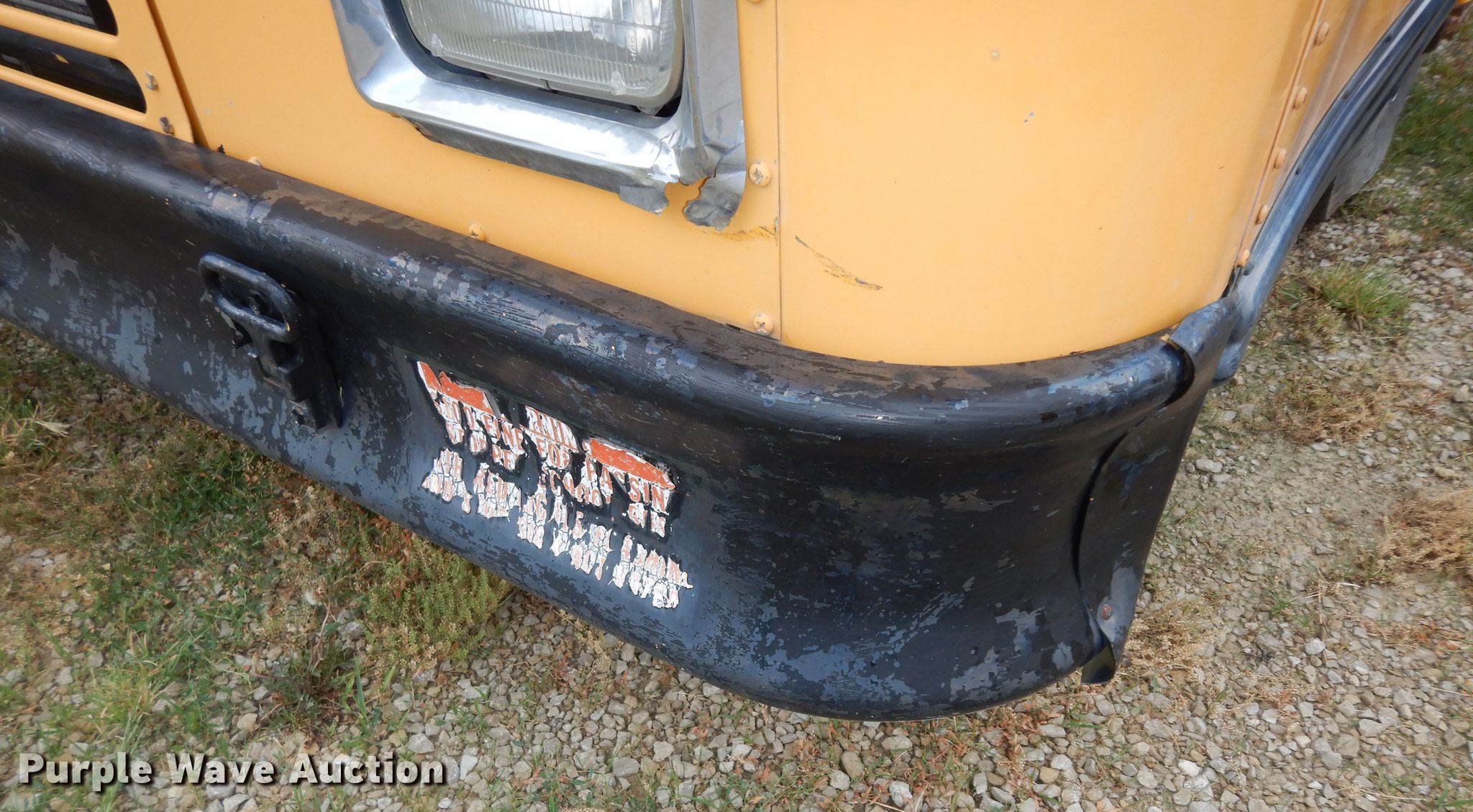 1998 Thomas bus. Miles: 104,749 on odometer, Hours: 7,994 on meter, VIN: 1T88N3B17W1157683, Unit #: 2. Engine Cylinders: 6, Fuel type: Diesel. Transmission Automatic. Chassis Axles: Single, Suspension: Spring, Brakes: Hydraulic, GVWR: 28,360 lbs, Wheelbase: 193". Interior Heat, Passengers: 75. Tires Size: 11R22.5. Notes Decals will be painted prior to auction. Kansas title. Herington USD 487. 1401 North D Street. Herington, KS 67449