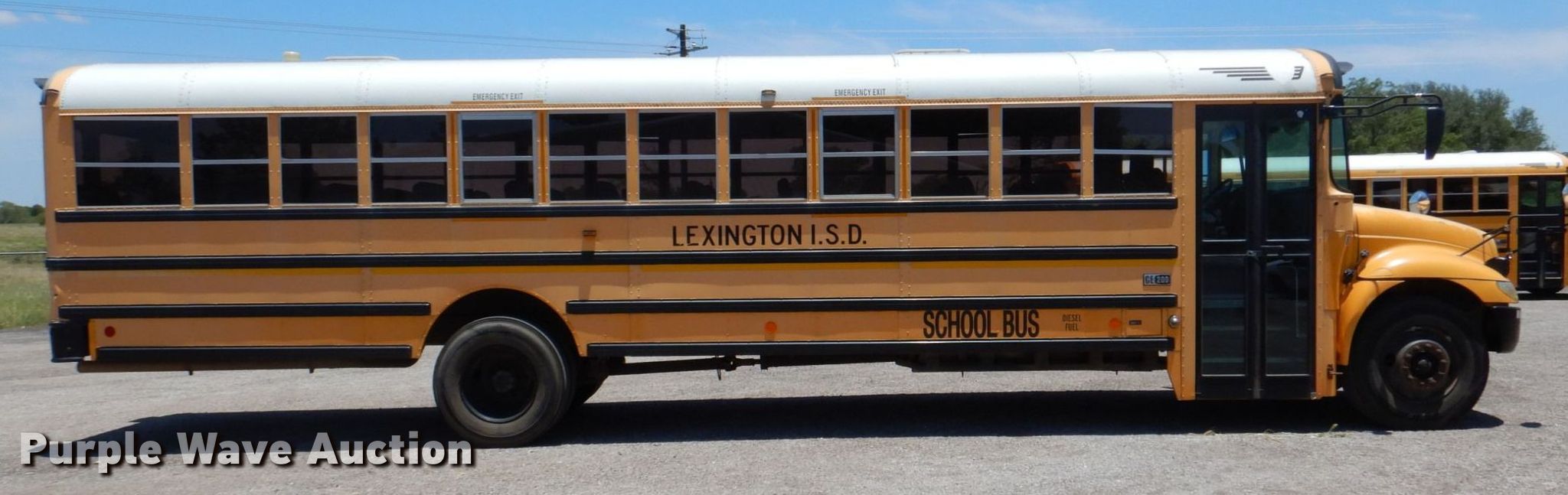 2006 IC PB105 school bus. Miles: 133,531 on odometer, Hours: 5,781 on meter, VIN: 4DRBUAFN36A258257. Engine International A200, Displacement: 6.0L V8, Cylinders: 8, Fuel type: Diesel, HP: 200. Transmission Automatic. Chassis Axles: Single, Suspension: Air, Brakes: Air, GVWR: 29,800 lbs. Interior Heat, Cruise control, Passengers: 71. Tires Size: 11R22.5. Notes Dash warning indicator: ABS, Windshield chipped or cracked, Dead battery. Texas title. Title distribution may be delayed up to 30 days from verification of funds. Lexington ISD. 6068 CR 326. Lexington, TX 78947