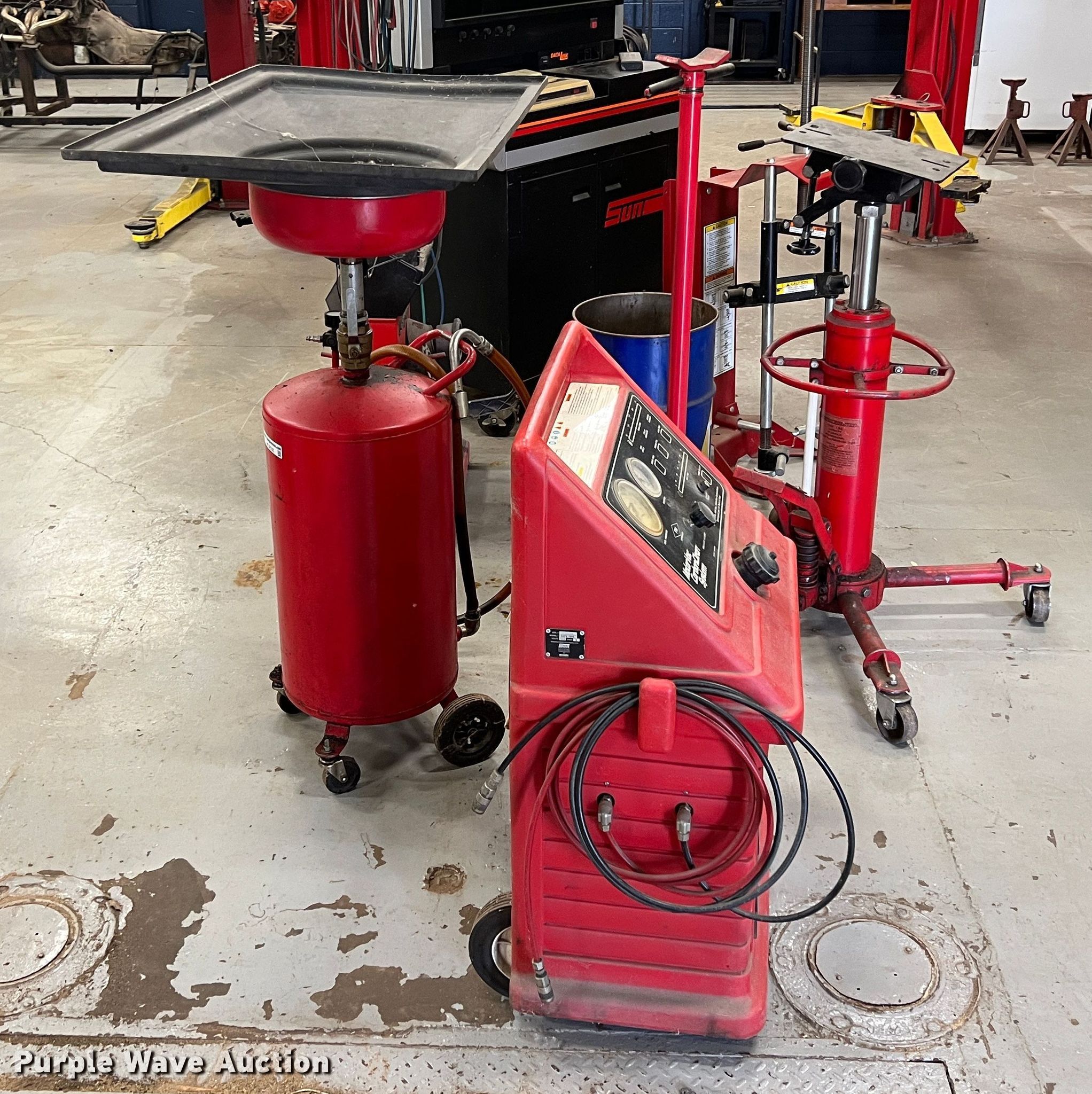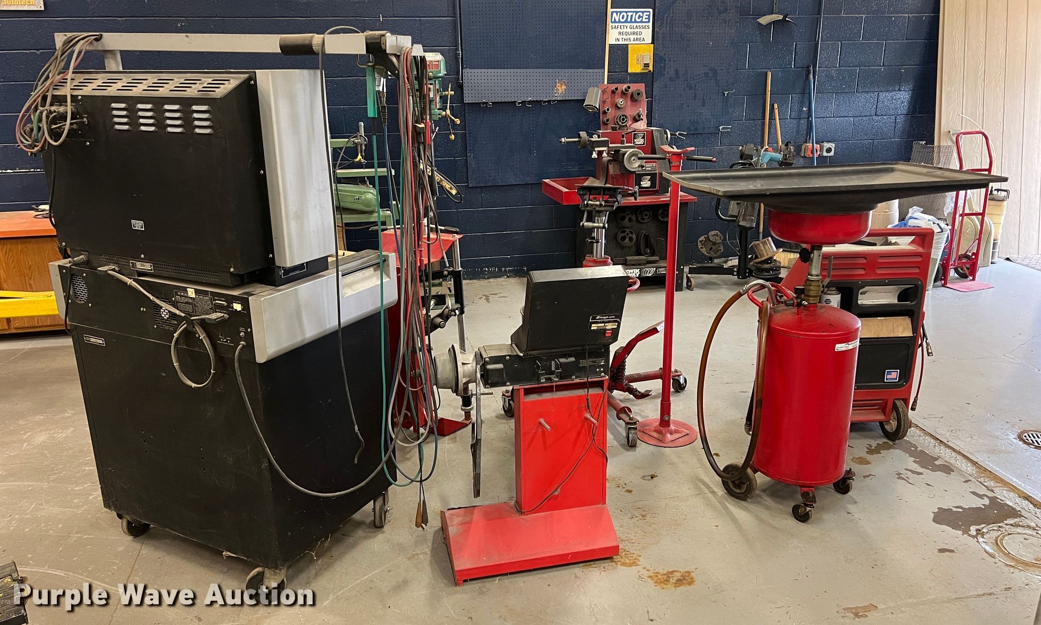 Tools. Sun engine analyzer Serial: 0987A, Branick 7200 strut spring compressor, Central Hydraulics transmission jack Capacity: 1100 lbs, Napa barrel, Snap-On WB250 computer wheel balancer Serial: S-348-016844, Single phase, Oil drain dolly, Sun MotorVac carbon clean system. USD 484. Fredonia, KS 66736