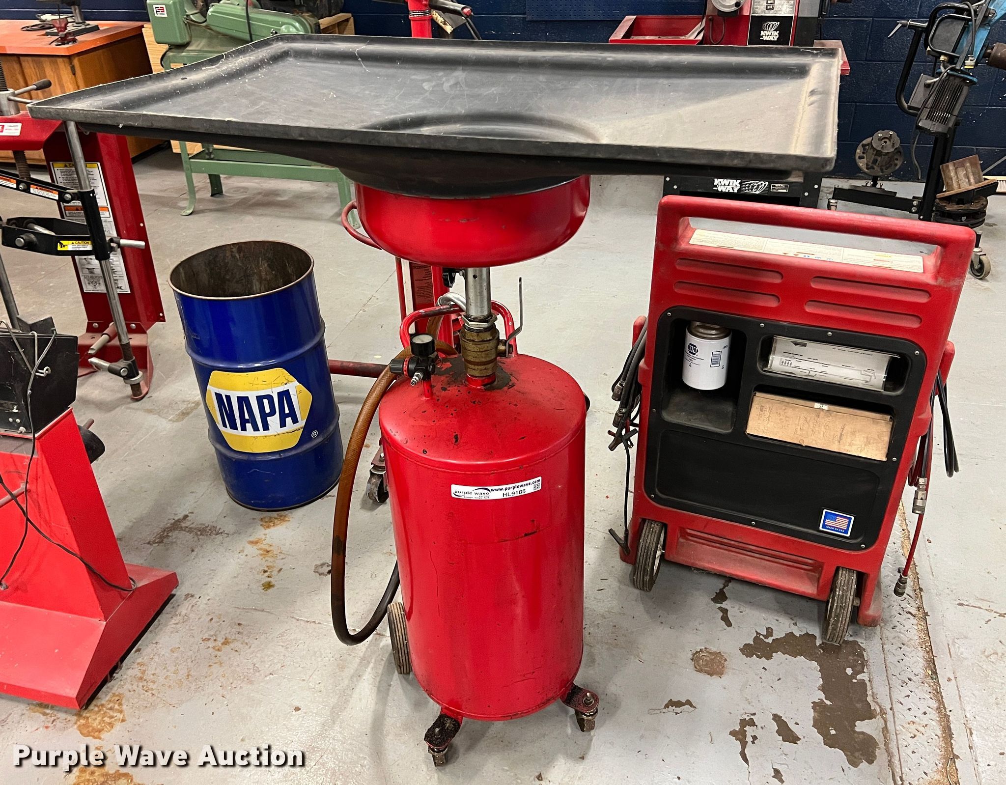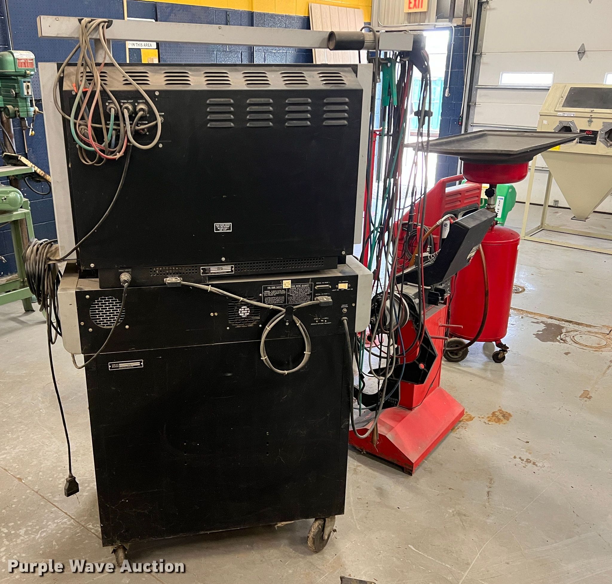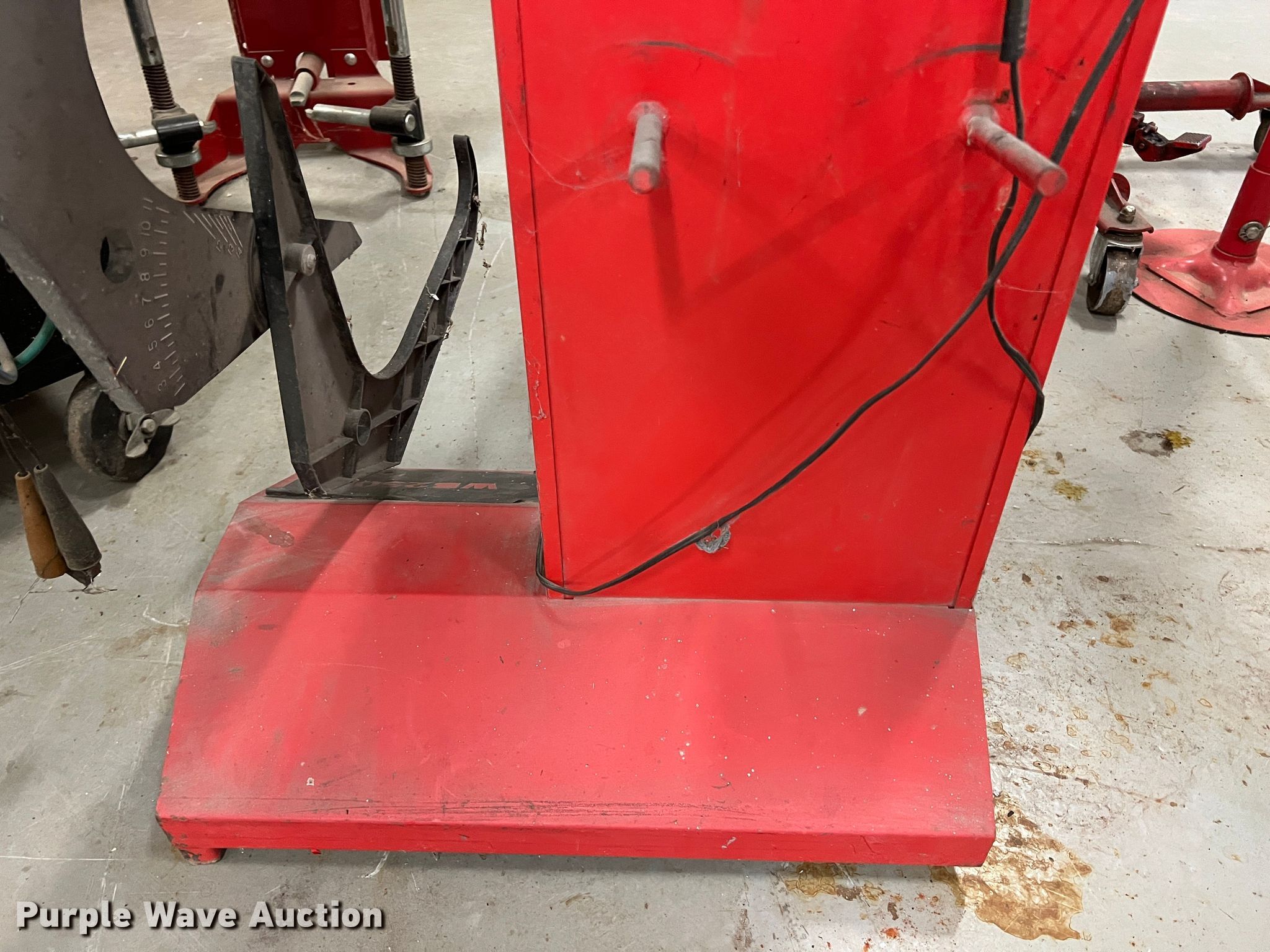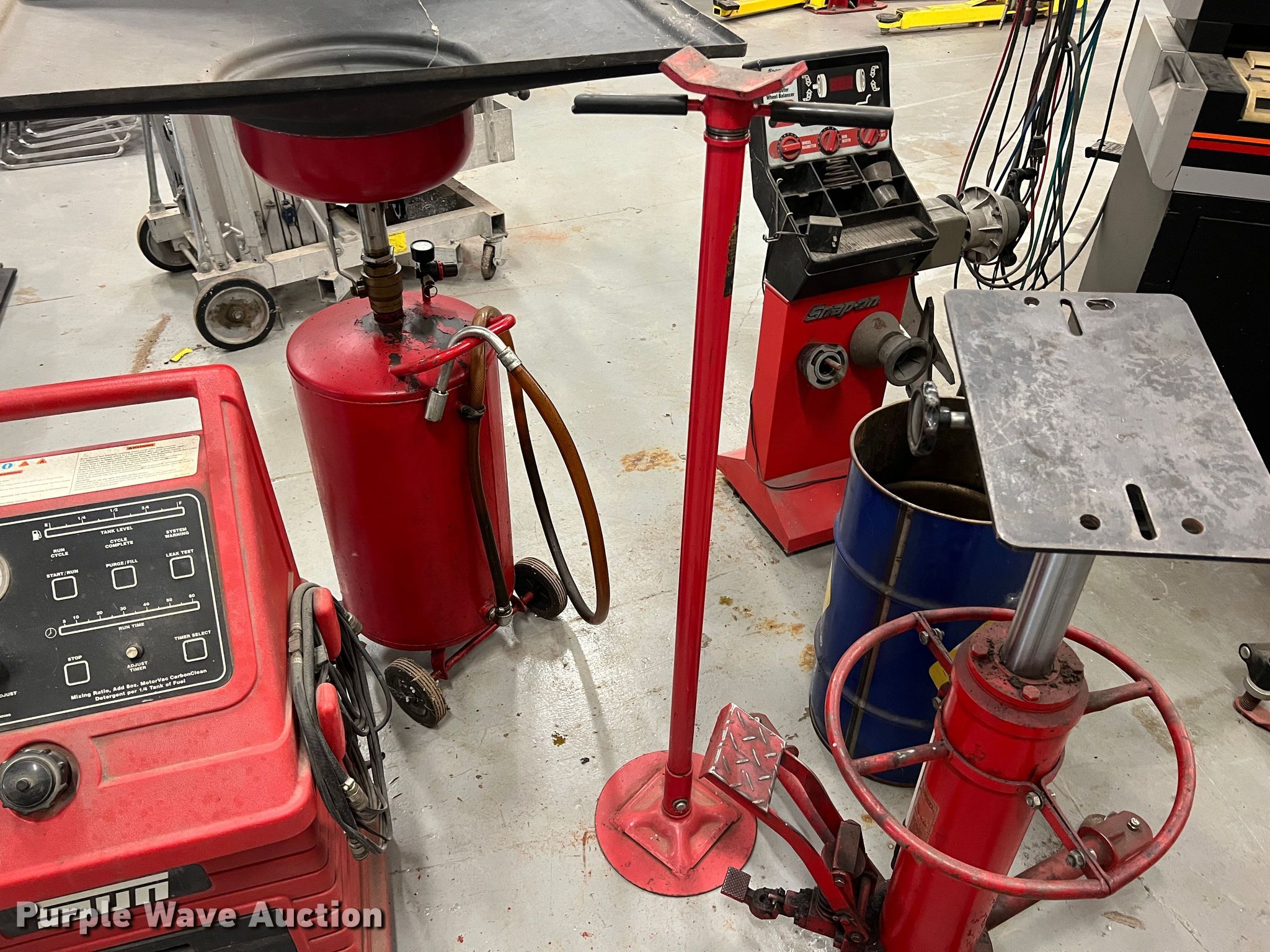 Purple Wave is selling a used Tools in Kansas. This item is a Tools with the following: Sun engine analyzer, Serial: 0987A, Branick 7200 strut spring compressor, Central Hydraulics transmission jack, Capacity: 1100 lbs, Napa barrel, Snap-On WB250 computer wheel balancer, Serial: S-348-016844, Single phase, Oil drain dolly, Sun MotorVac carbon clean system
