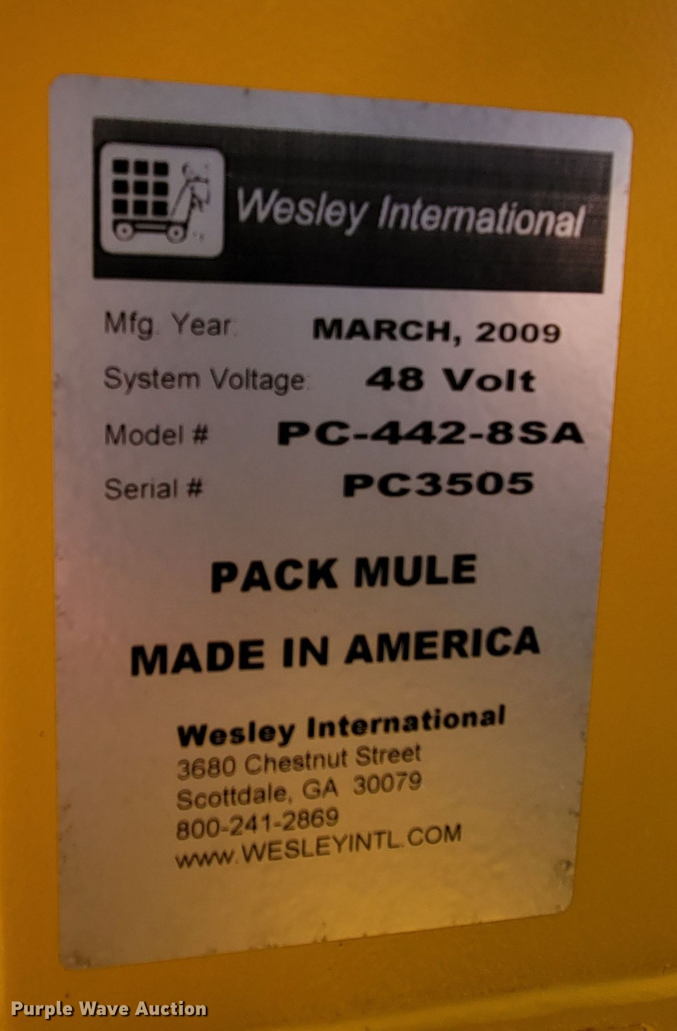 Purple Wave is selling a used Golf Cart in South Dakota. This item is a Wesley International PC-442-8SA golf cart with the following: Hours: Unknown, Serial: PC3505, Unit #: SDV01