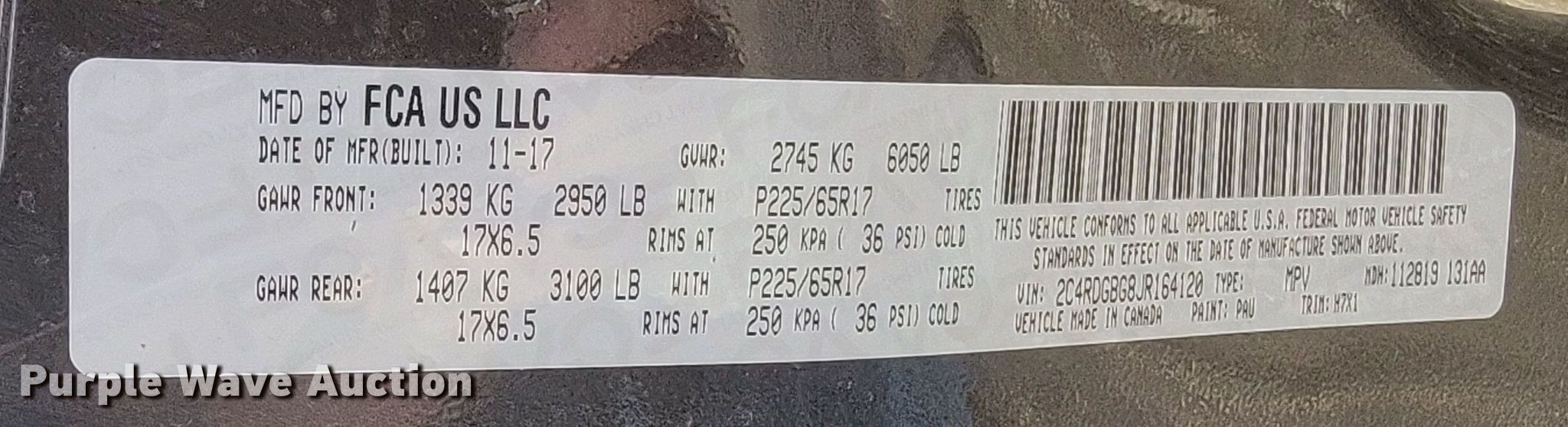 Purple Wave is selling a used Passenger Vehicle in South Dakota. This item is a 2018 Dodge Grand Caravan van with the following: Miles: 38,976 on odometer, VIN: 2C4RDGBG8JR164120, Unit #: BQ023