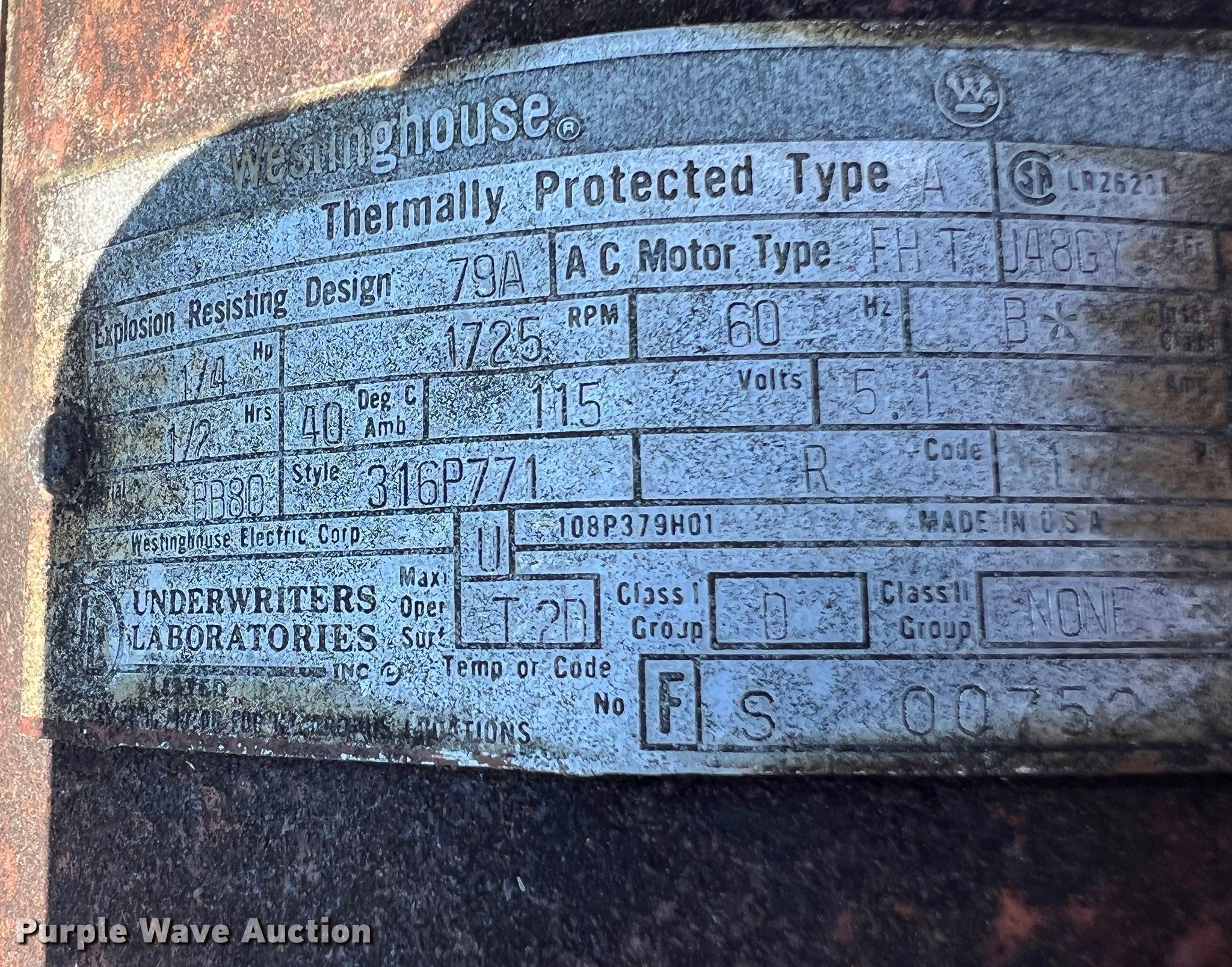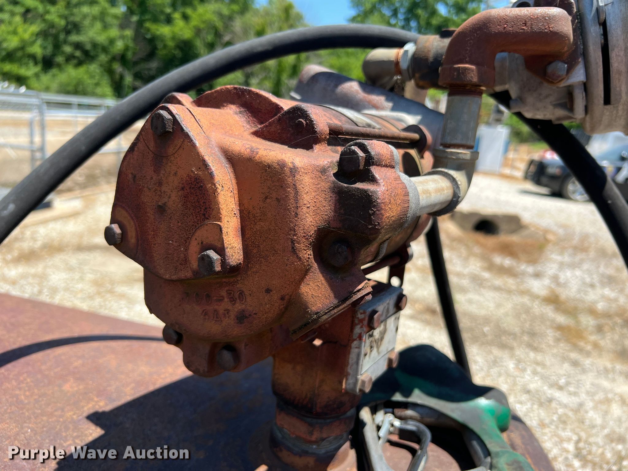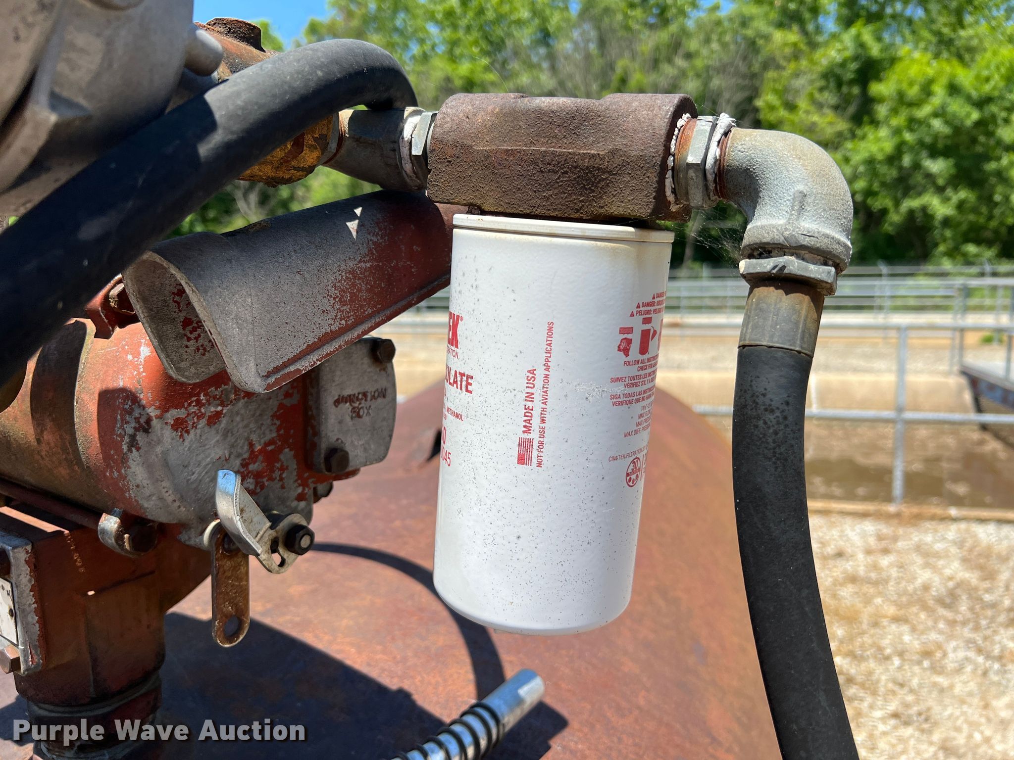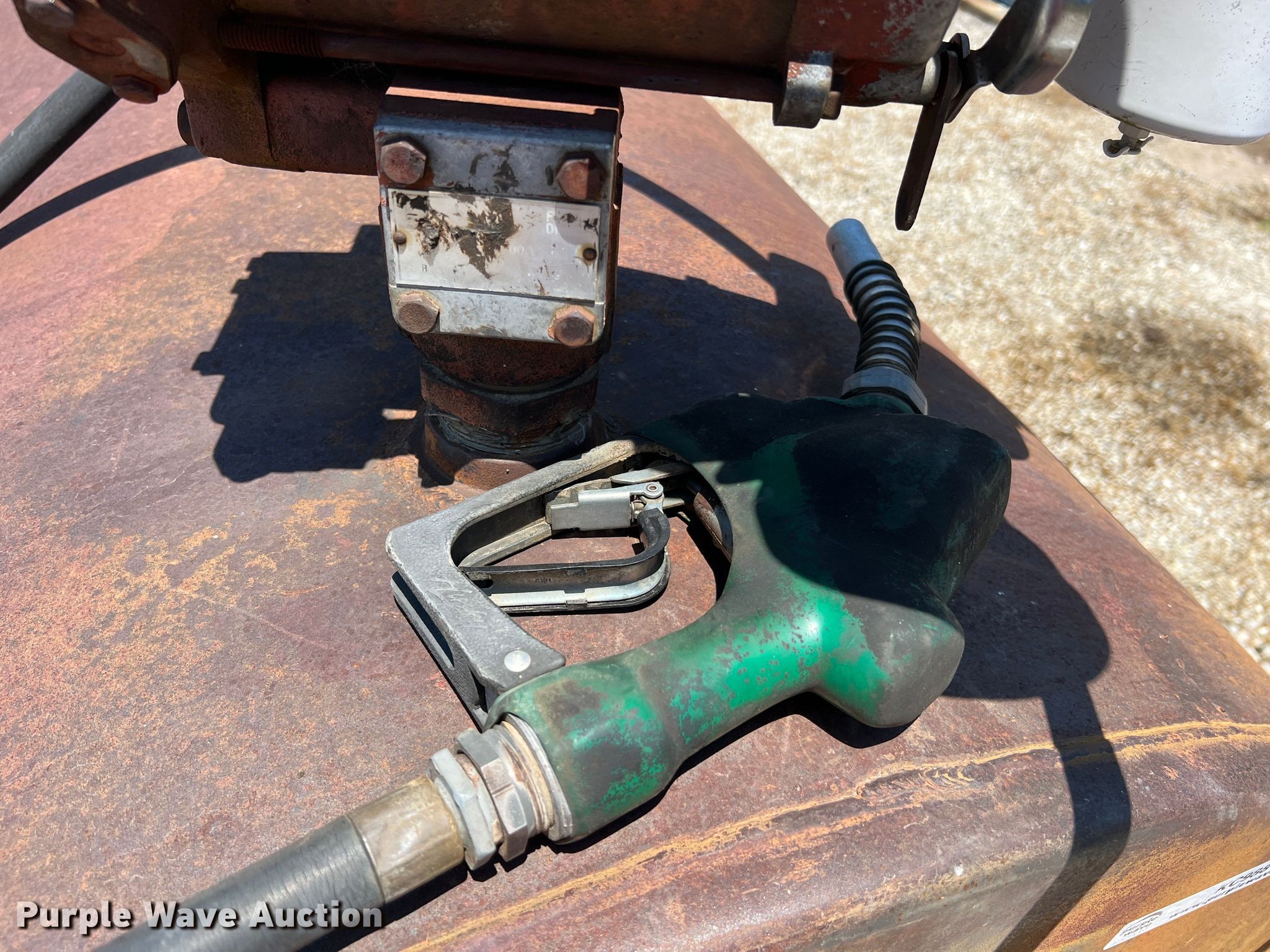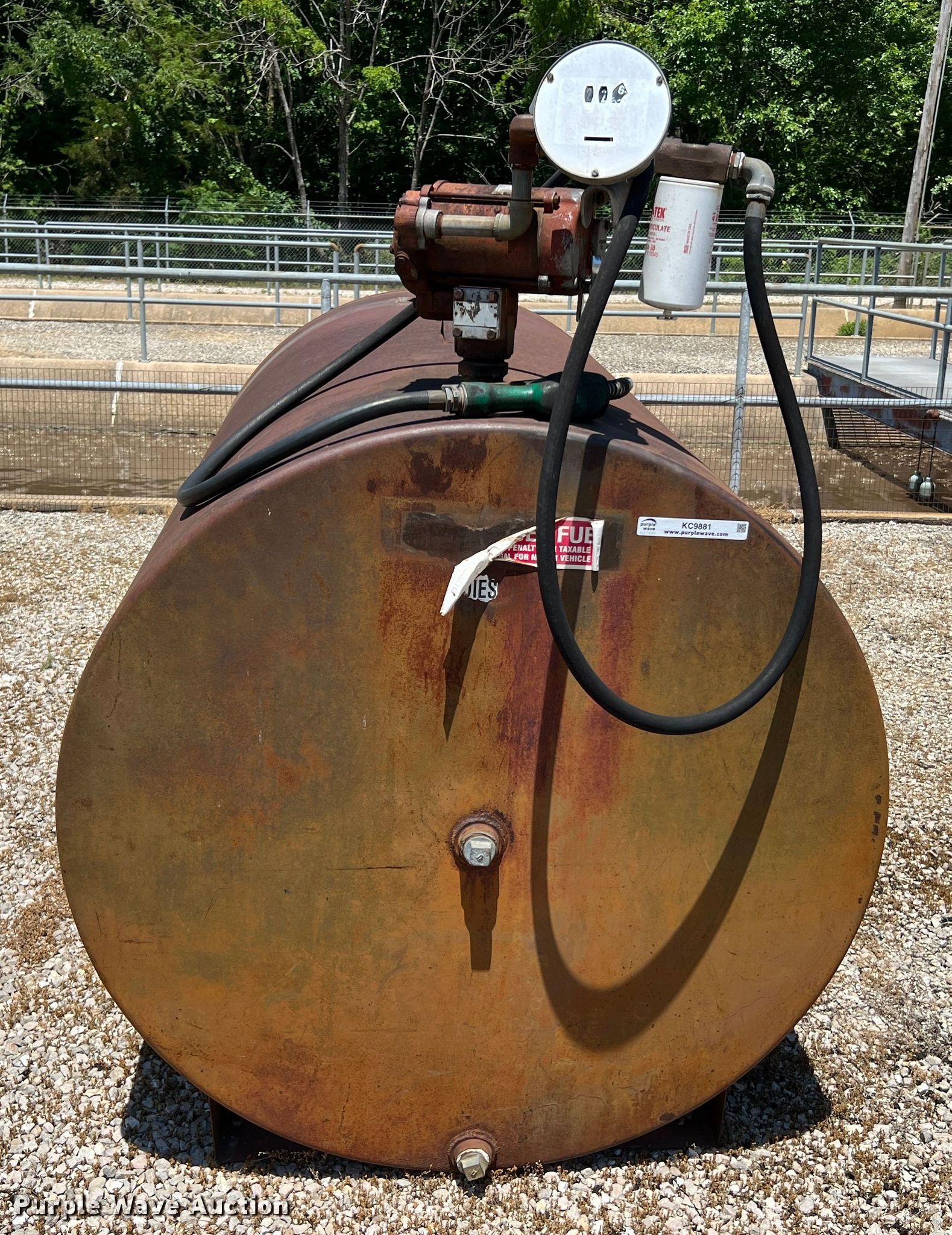 Purple Wave is selling a used Fuel and Lube in Missouri. This item is a Fuel tank with the following: 74" L x 48" diameter, Transfer pump, 1/4 HP, 115 V, Hose, Nozzle, Pin hole in tank, Previously held diesel