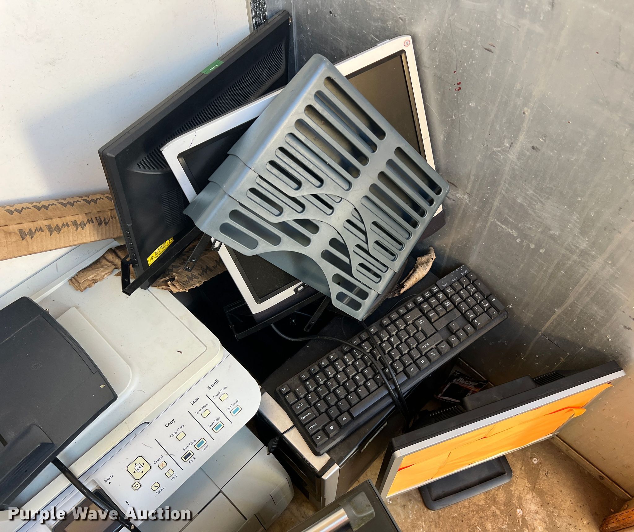 Purple Wave is selling a used Office Supplies and Equip. in Missouri. This item is a Office supplies and equipment with the following: (3) file cabinets, (2) convection ovens, Unknown operating conditions, (2) chairs, Metal cart, (3) monitors, Unknown operating conditions, (4) CPUs, No hard drive, Unknown operating conditions