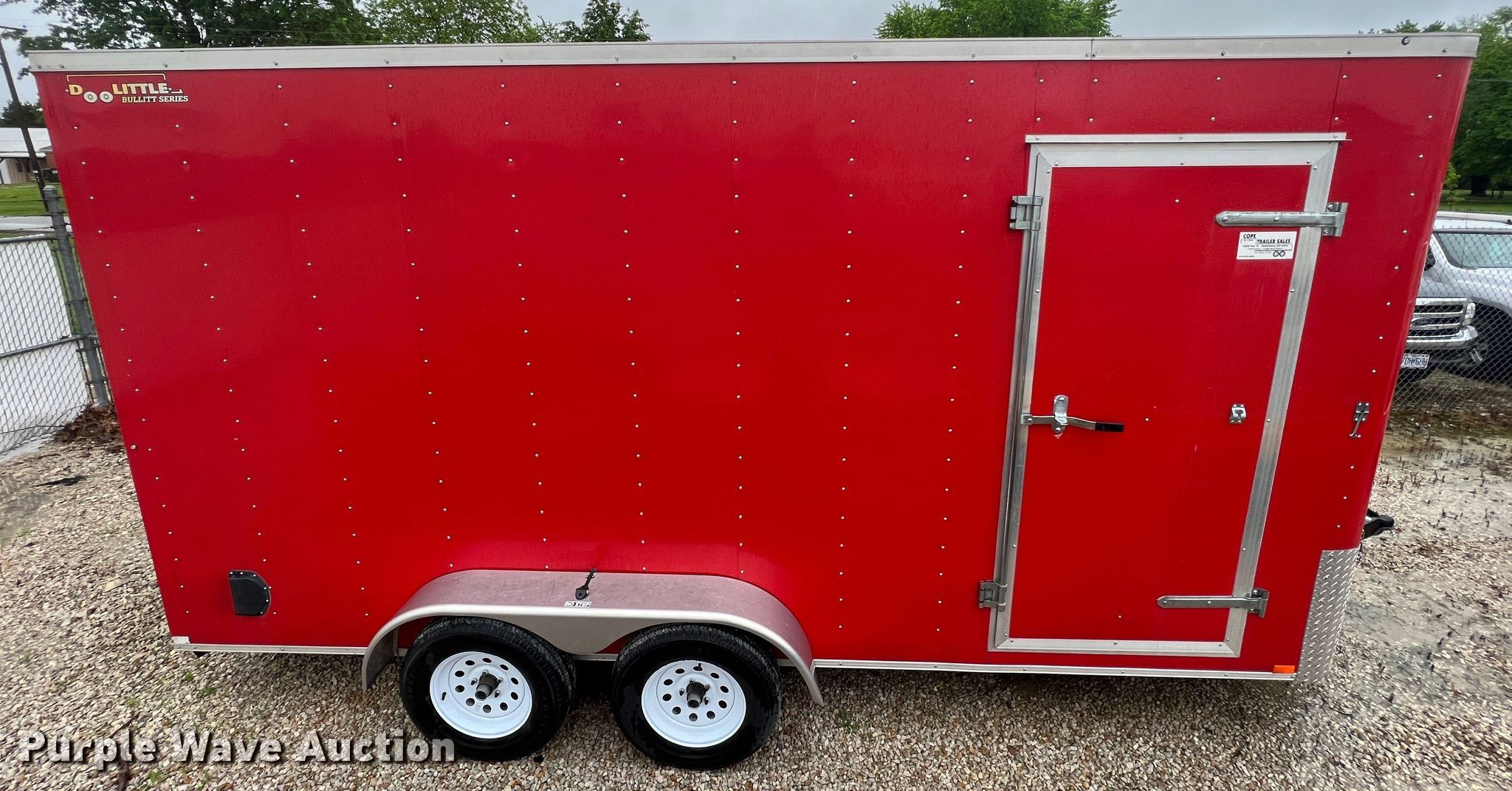 This 2017 Doolittle enclosed cargo trailer will sell to the highest bidder regardless of price.