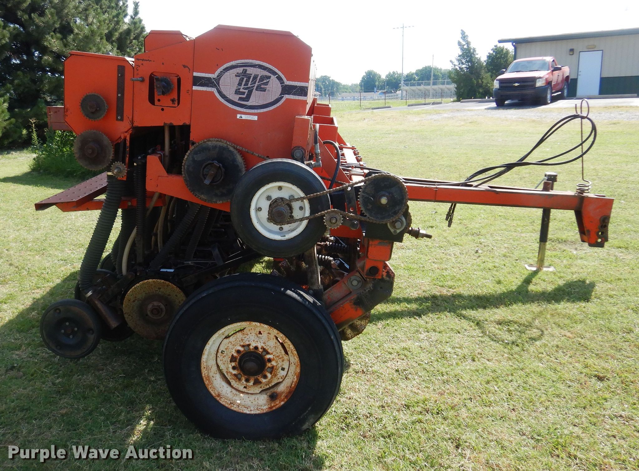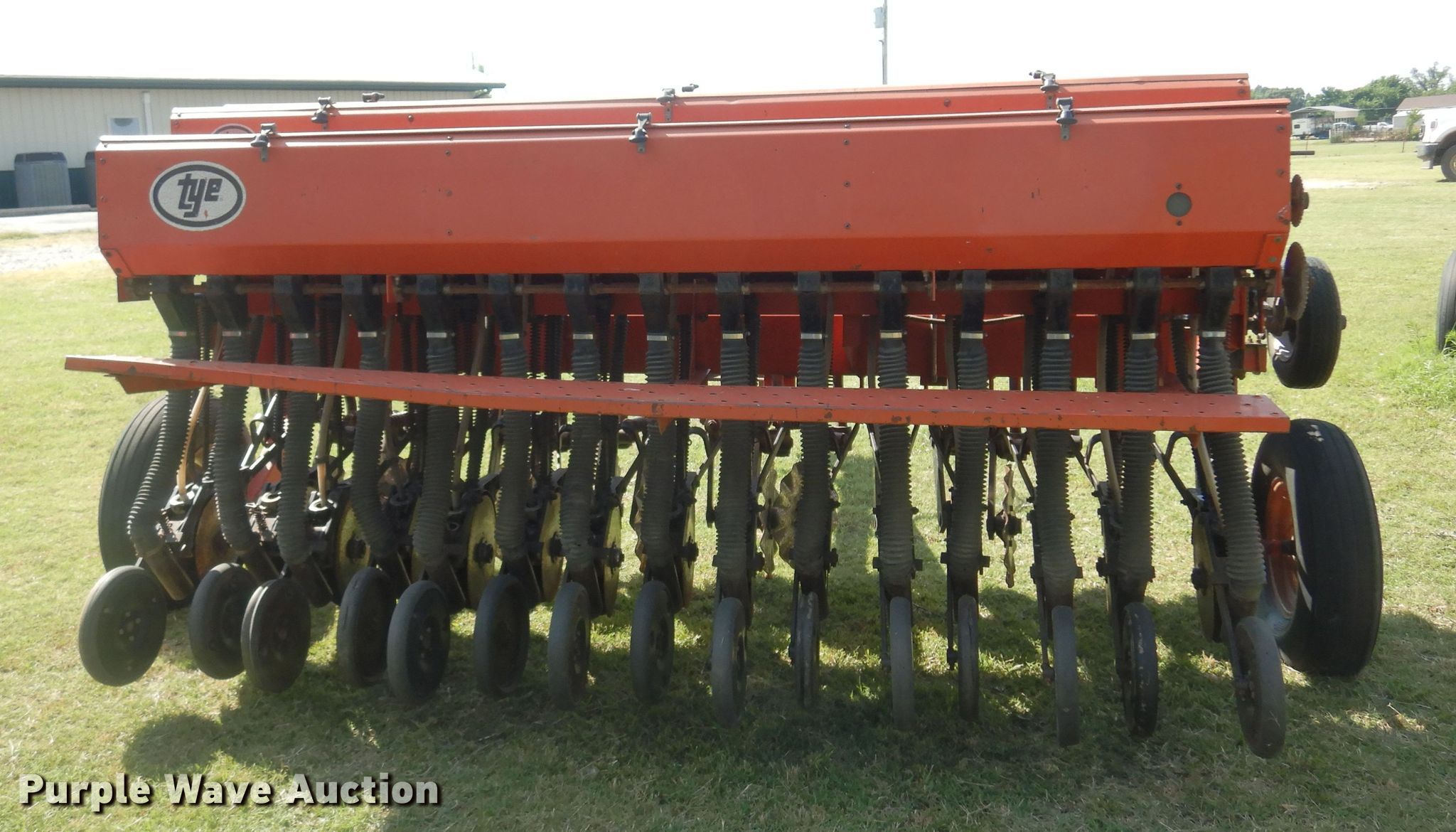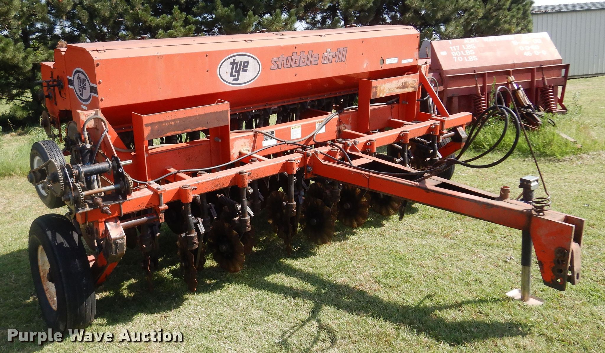 Purple Wave is selling a used Grain Drill or Seeder in Oklahoma. This item is a Tye 114-4577 Stubble Drill no-till grain drill with the following: Width: 10', Row units: 15, Row spacing: 8", Serial: H-3-2804-7-EWS