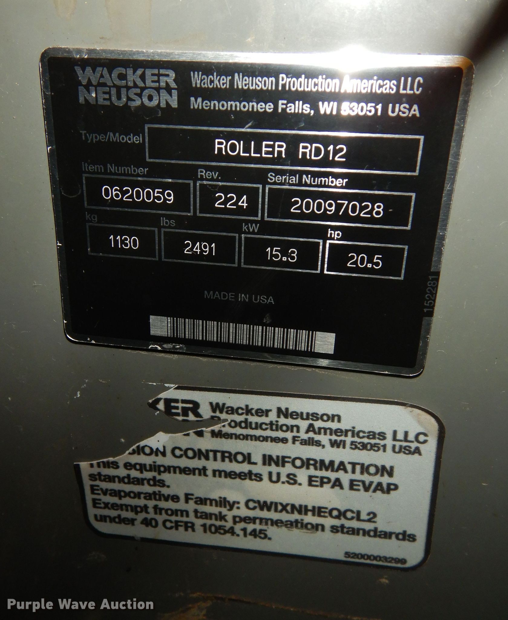 Purple Wave is selling a used Double Drum Roller Compactor in Kansas. This item is a Wacker Neuson RD12 double drum vibratory roller with the following: Hours: 440 on meter, Serial: 20097028