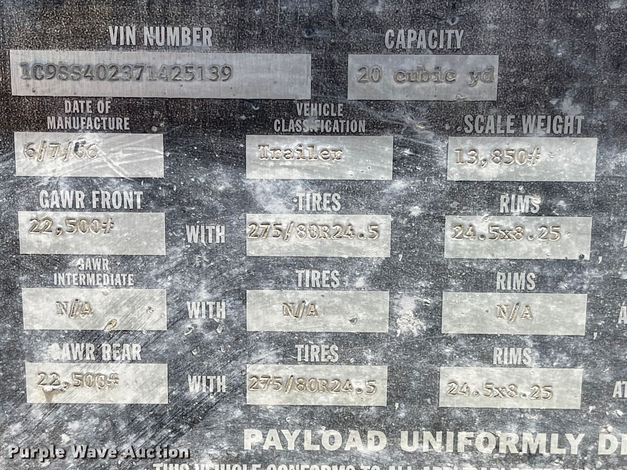 Purple Wave is selling a used Bottom Dump Trailer in Missouri. This item is a 2007 Corn Belt S-4002 bottom dump trailer with the following: VIN: 1C9SS402371425139, Unit #: 115
