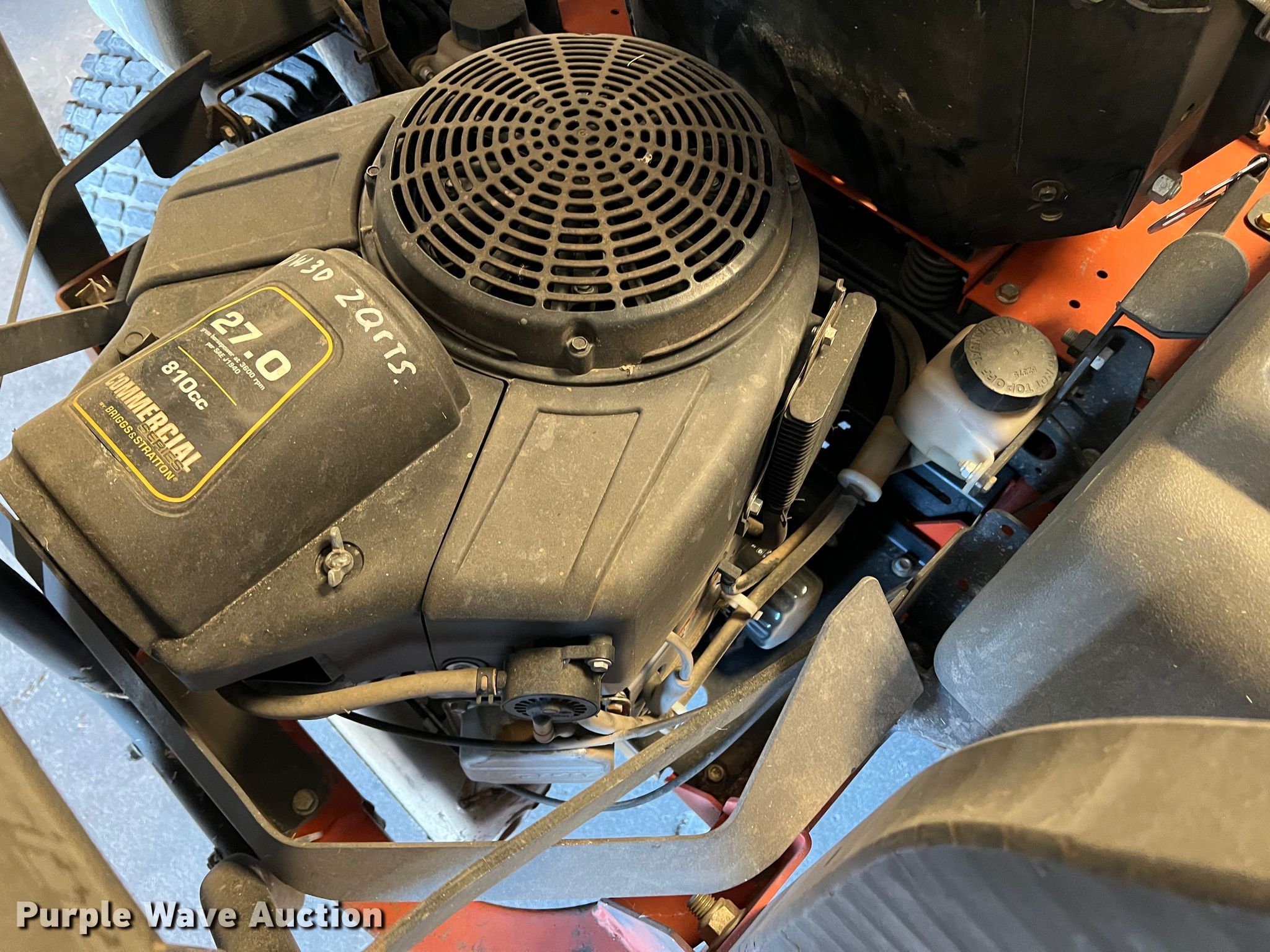 Husqvarna M-ZT61 ZTR lawn mower. Hours: 1,828 on meter, Cutting width: 60", Serial: 967177002. Engine Briggs & Stratton, Cylinders: 2, Fuel type: Gas, HP: 27. Transmission Hydrostatic. Features Grass bagger. Tires Front: 13x6.50-6, Rear: 23x10.50-12. City of Meade. 623 Carthage St. Meade, KS 67864