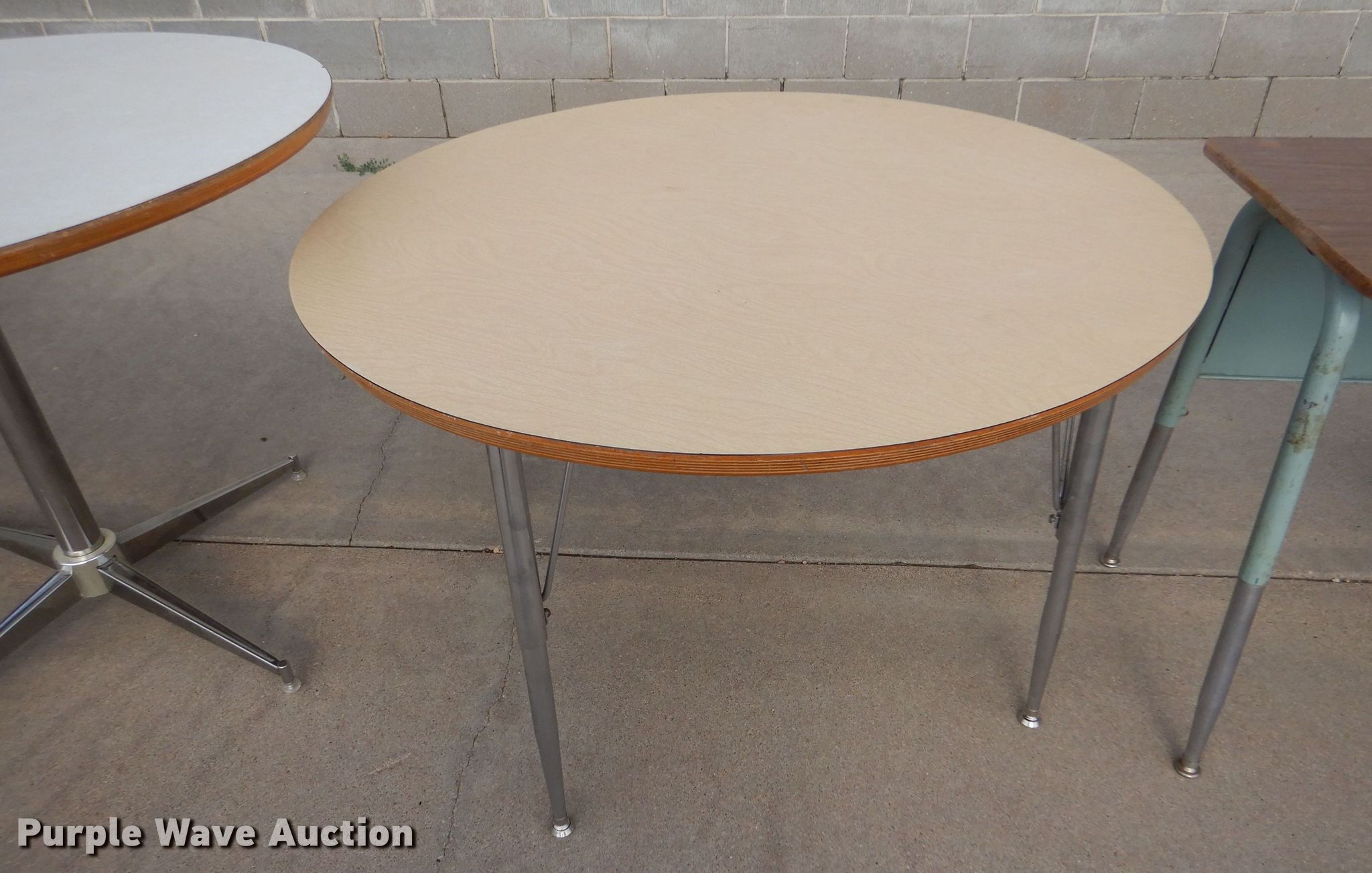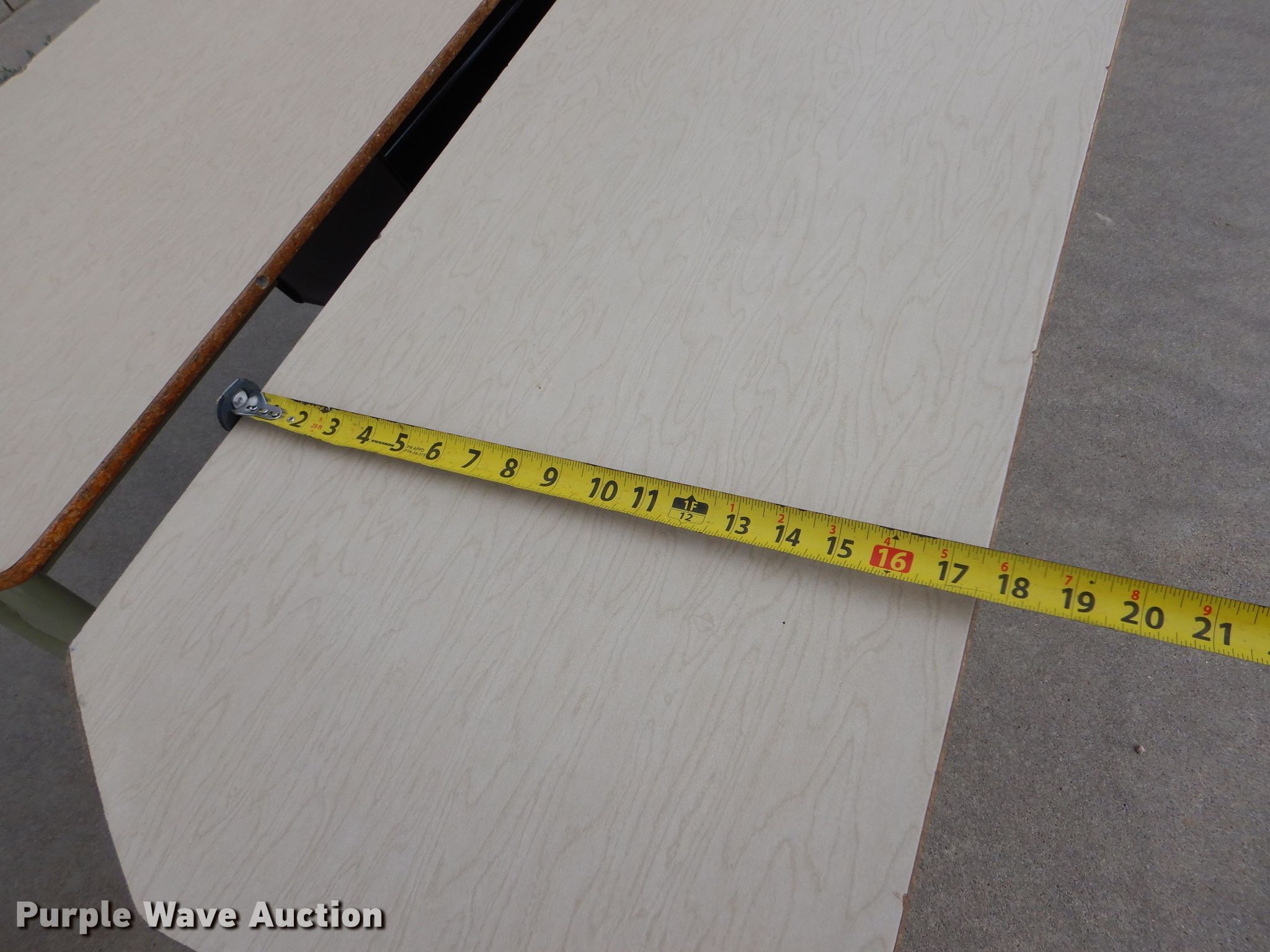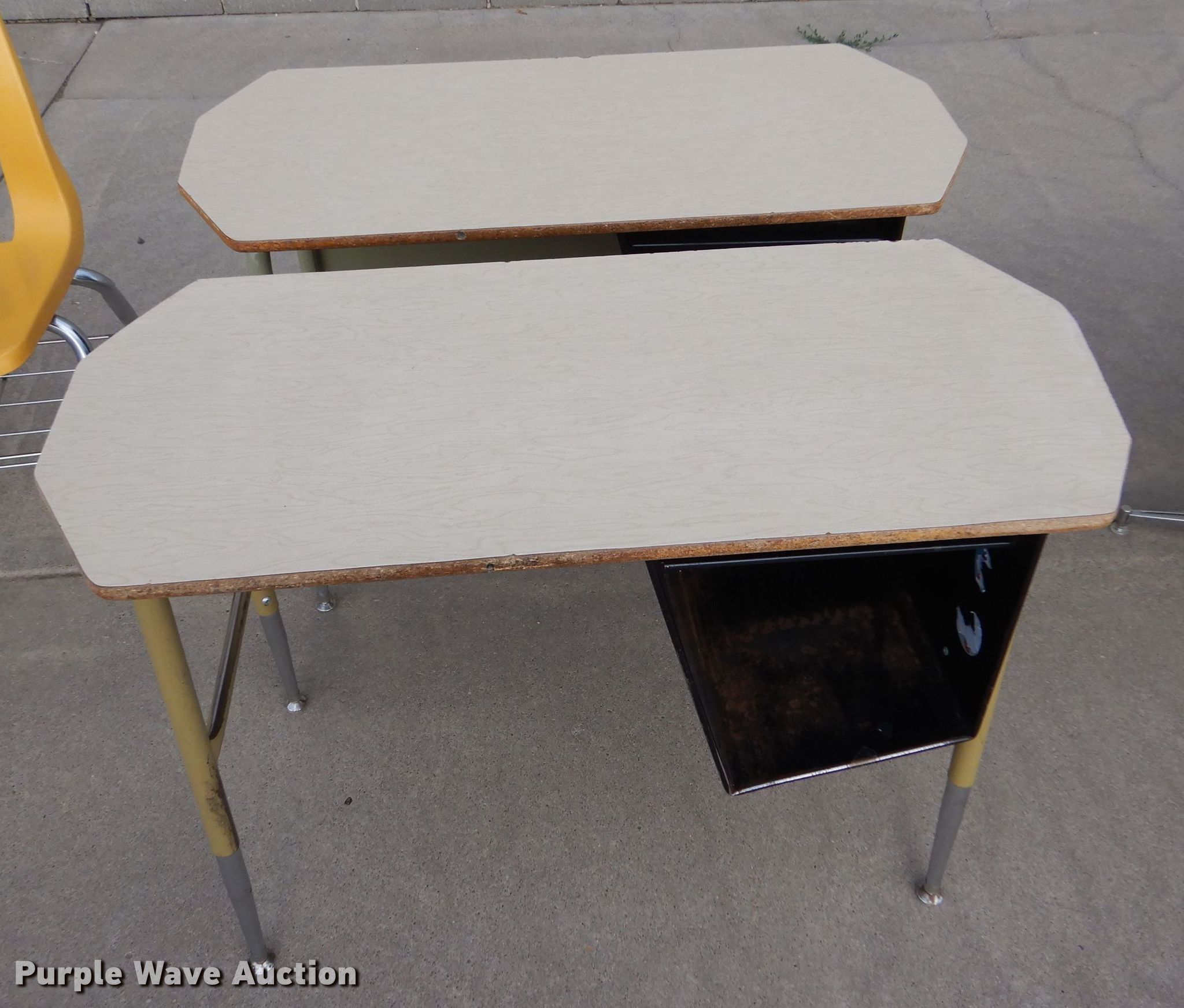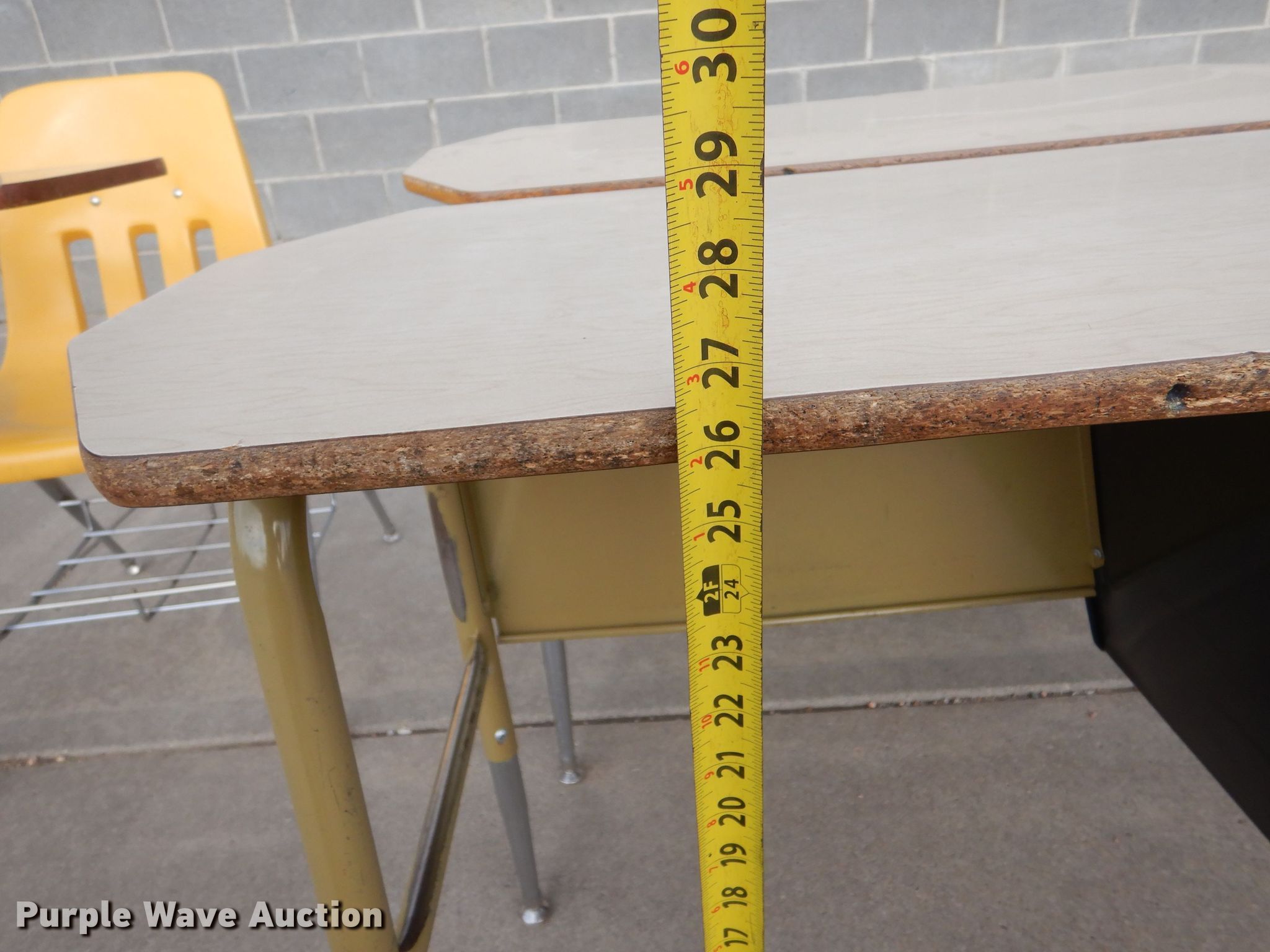 Purple Wave is selling a used Furniture in Kansas. This item is a Furniture with the following: Approx. 24 desks with chairs, (8) desks, 42" x 21" x 23", (6) desks, 38" x 18" x 26",, Approx. 20 desks, 35" x 18" x 28", (2) tables