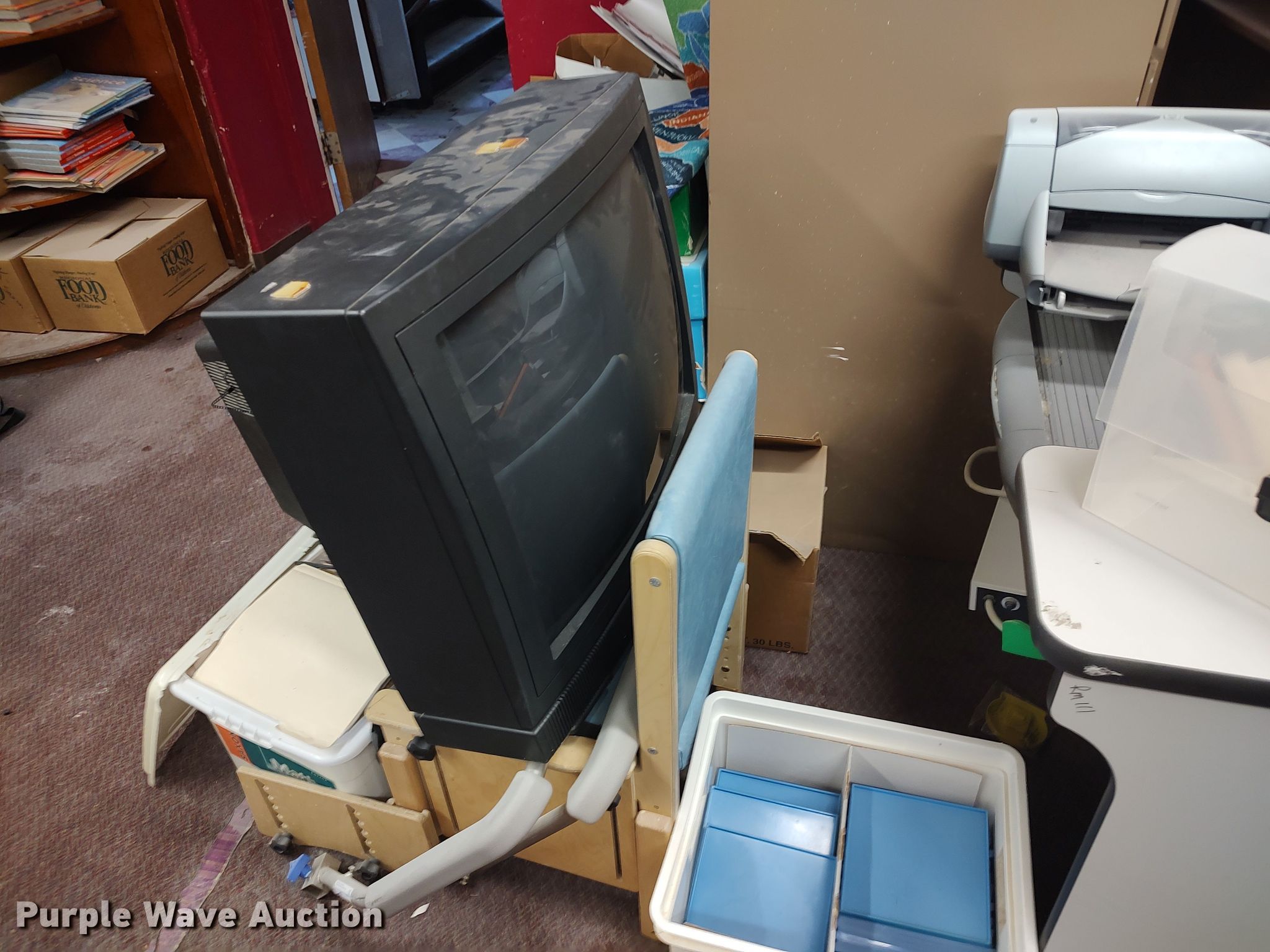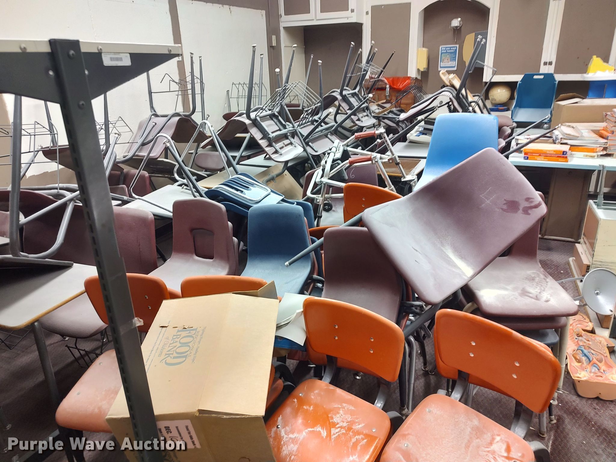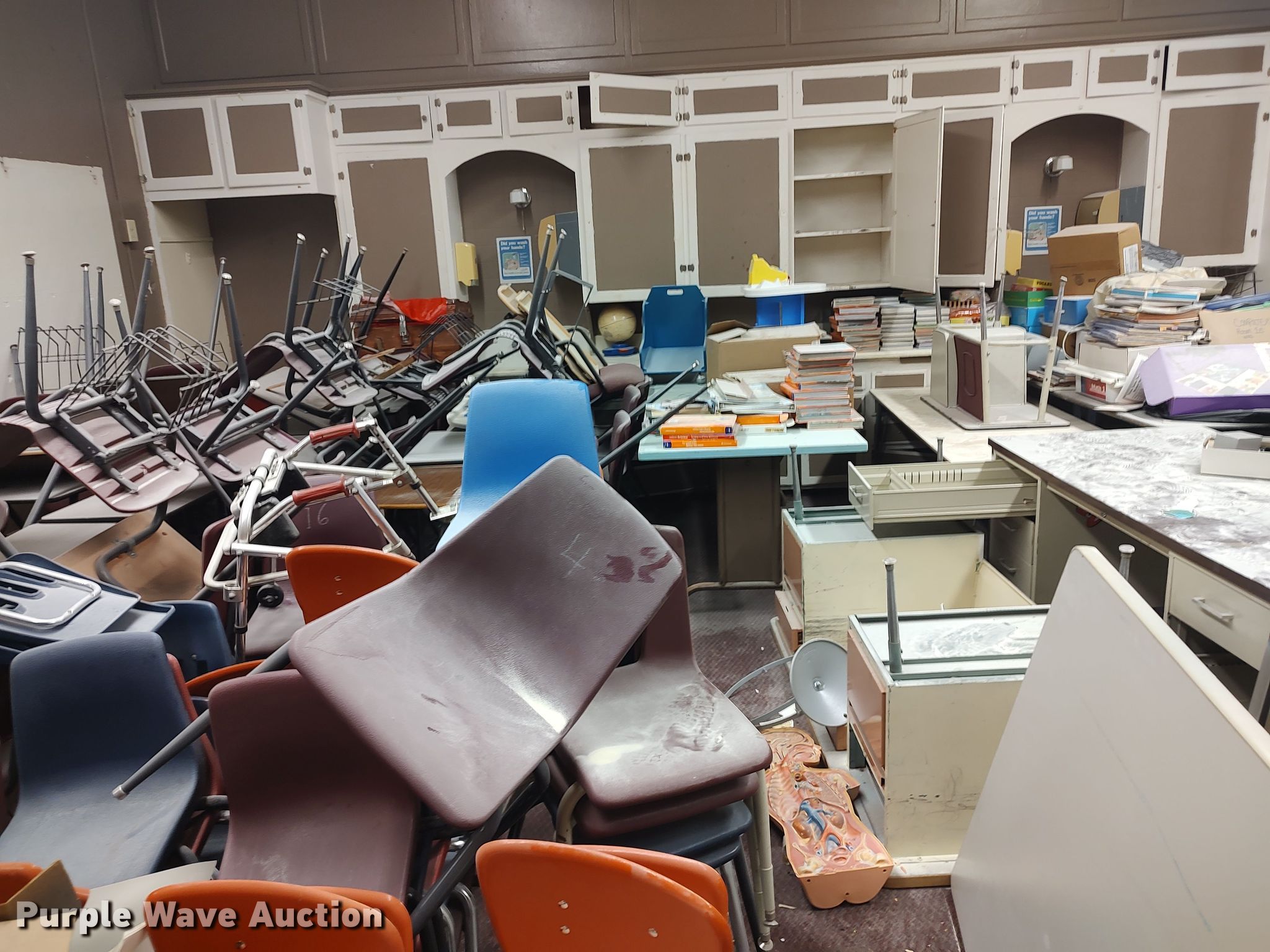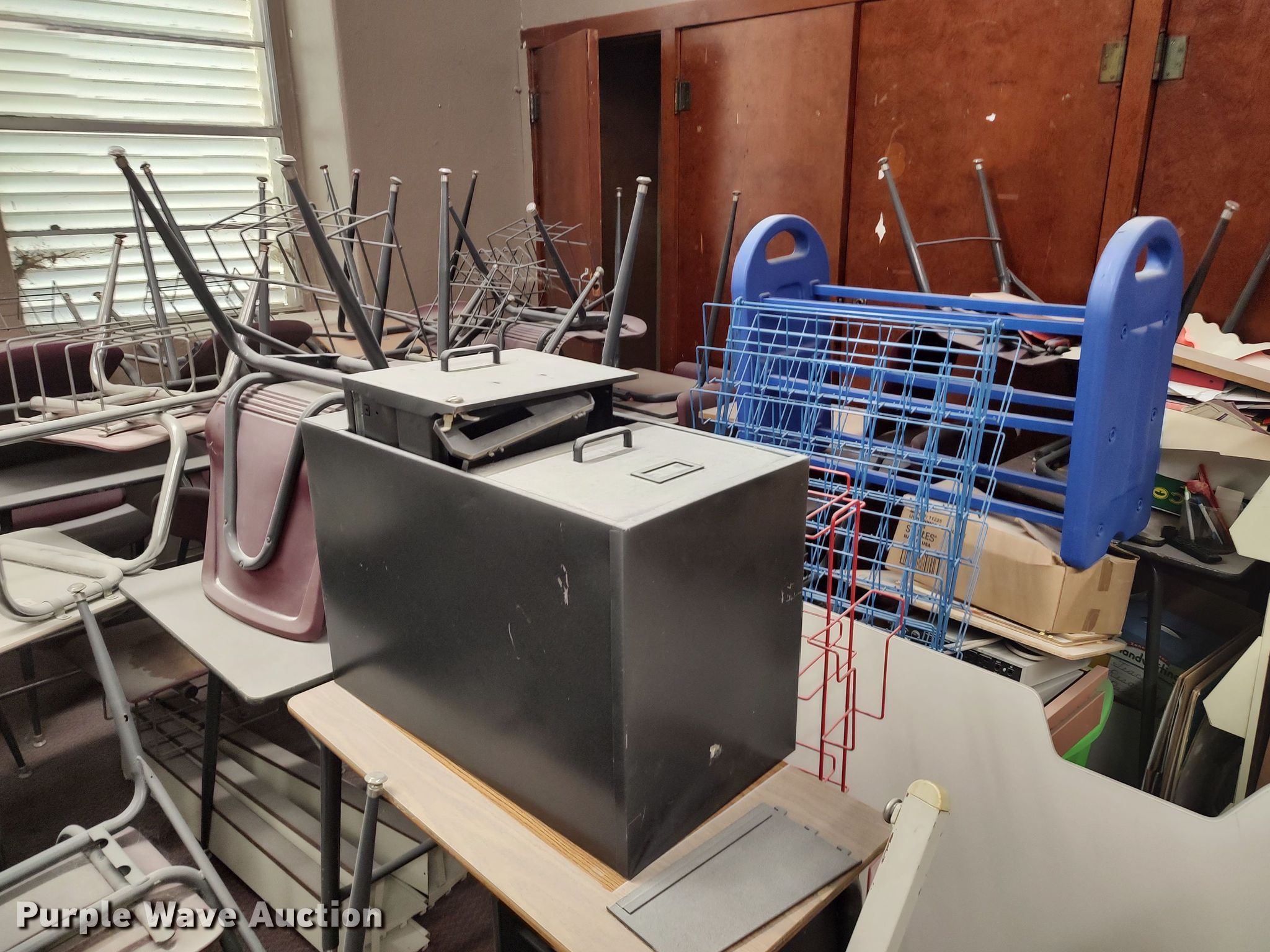 Purple Wave is selling a used Office Supplies and Equip. in Oklahoma. This item is a Office supplies and equipment with the following: Desks, Chairs, Magazine racks, Electronics, Textbooks, File cabinets