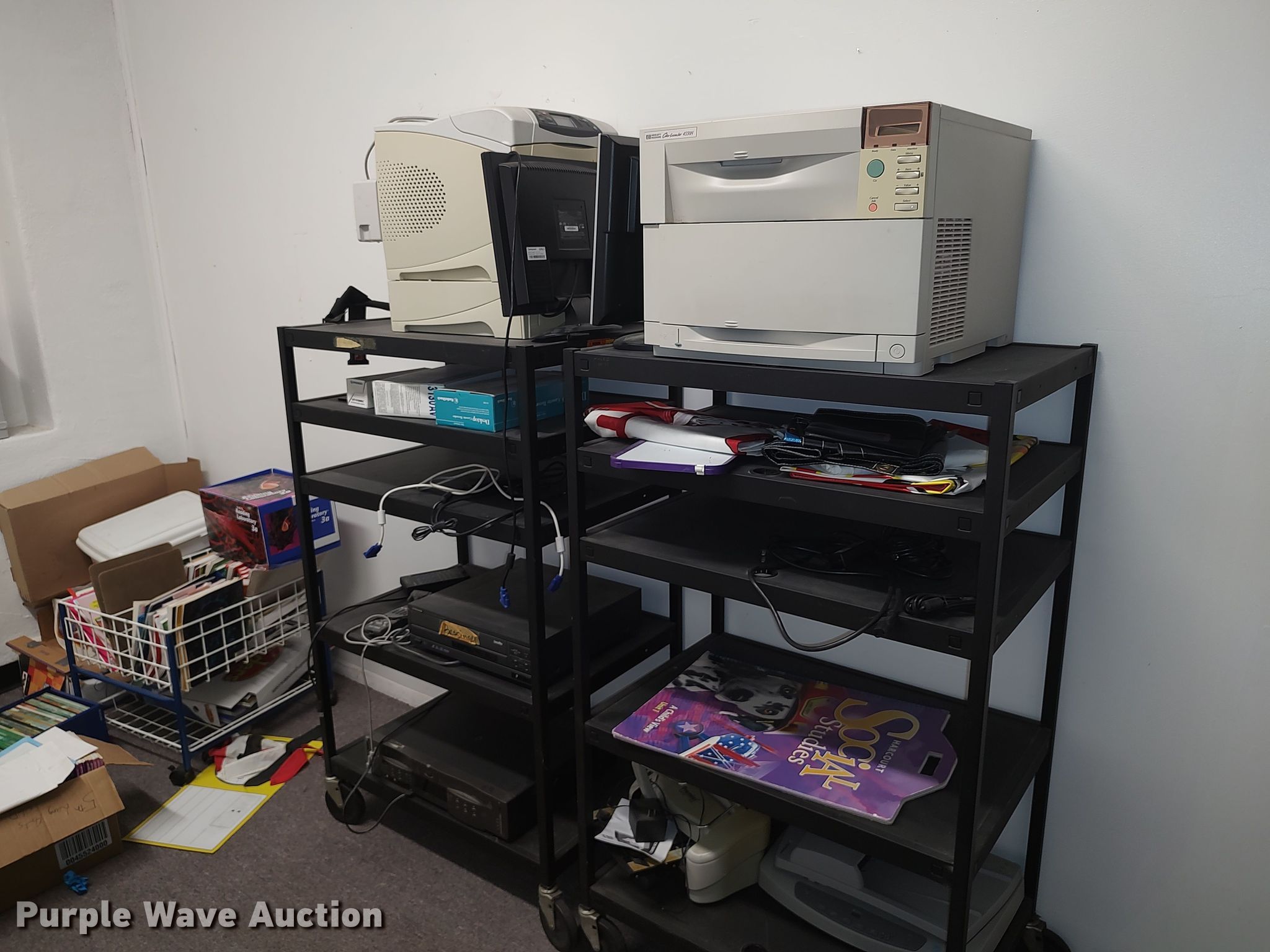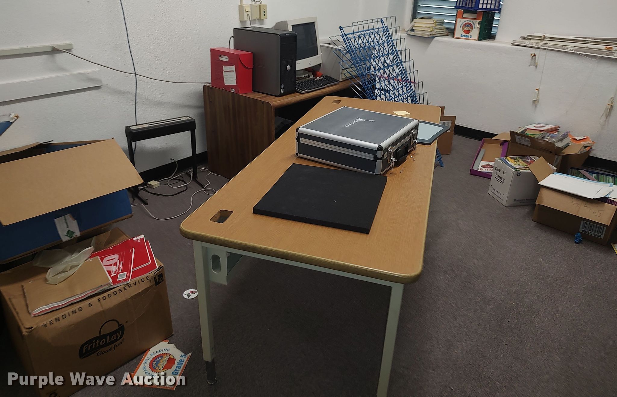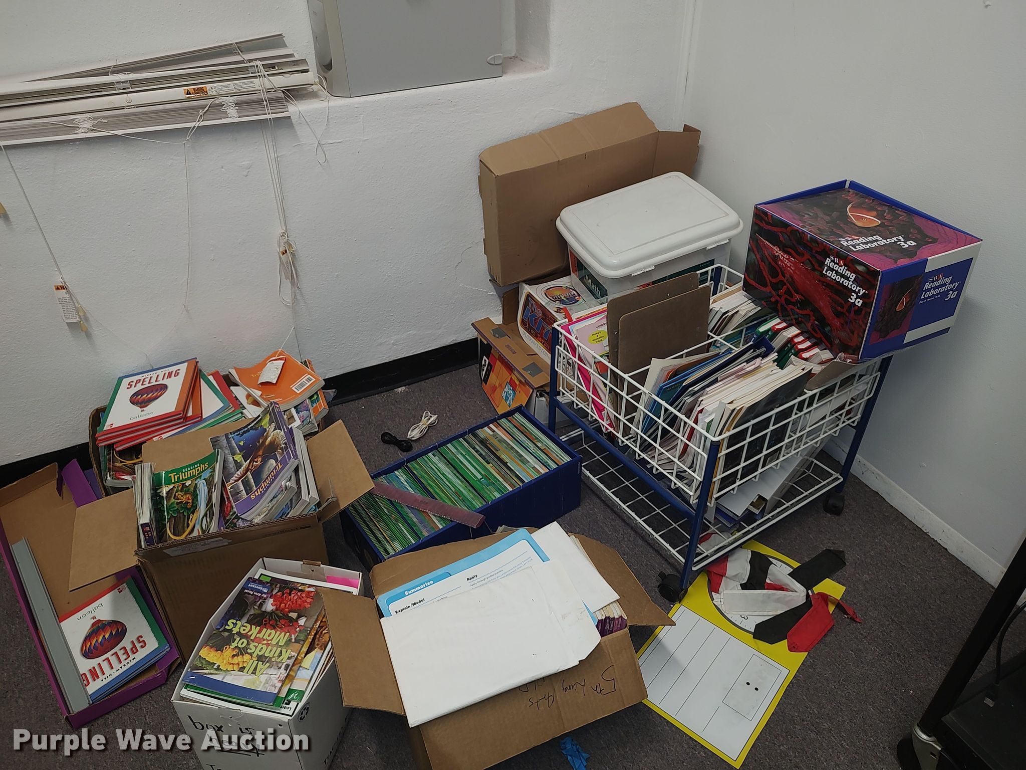 Purple Wave is selling a used Office Supplies and Equip. in Oklahoma. This item is a Office supplies and equipment with the following: Magazine racks, Electronics, Decorations, File cabinets, Activslate SmartBoard accessories, Books