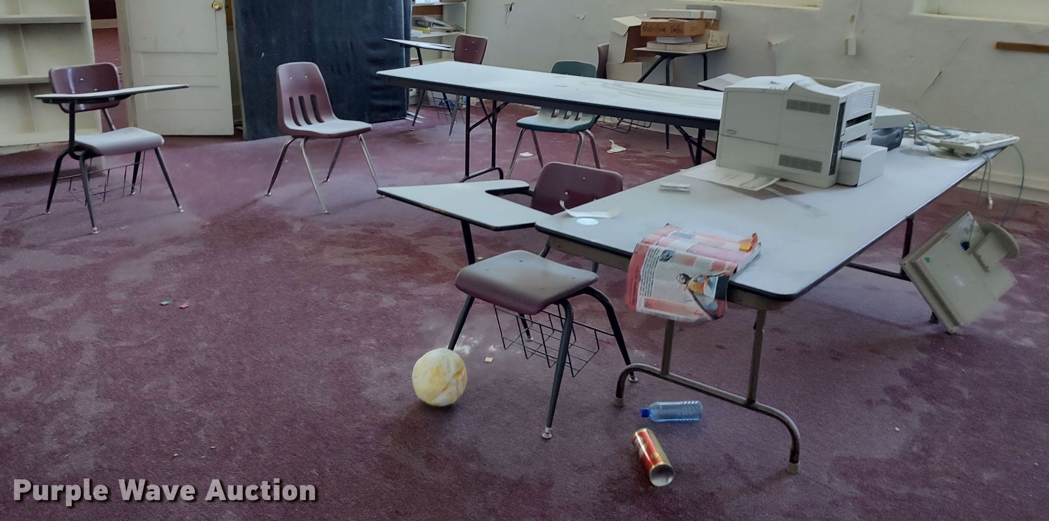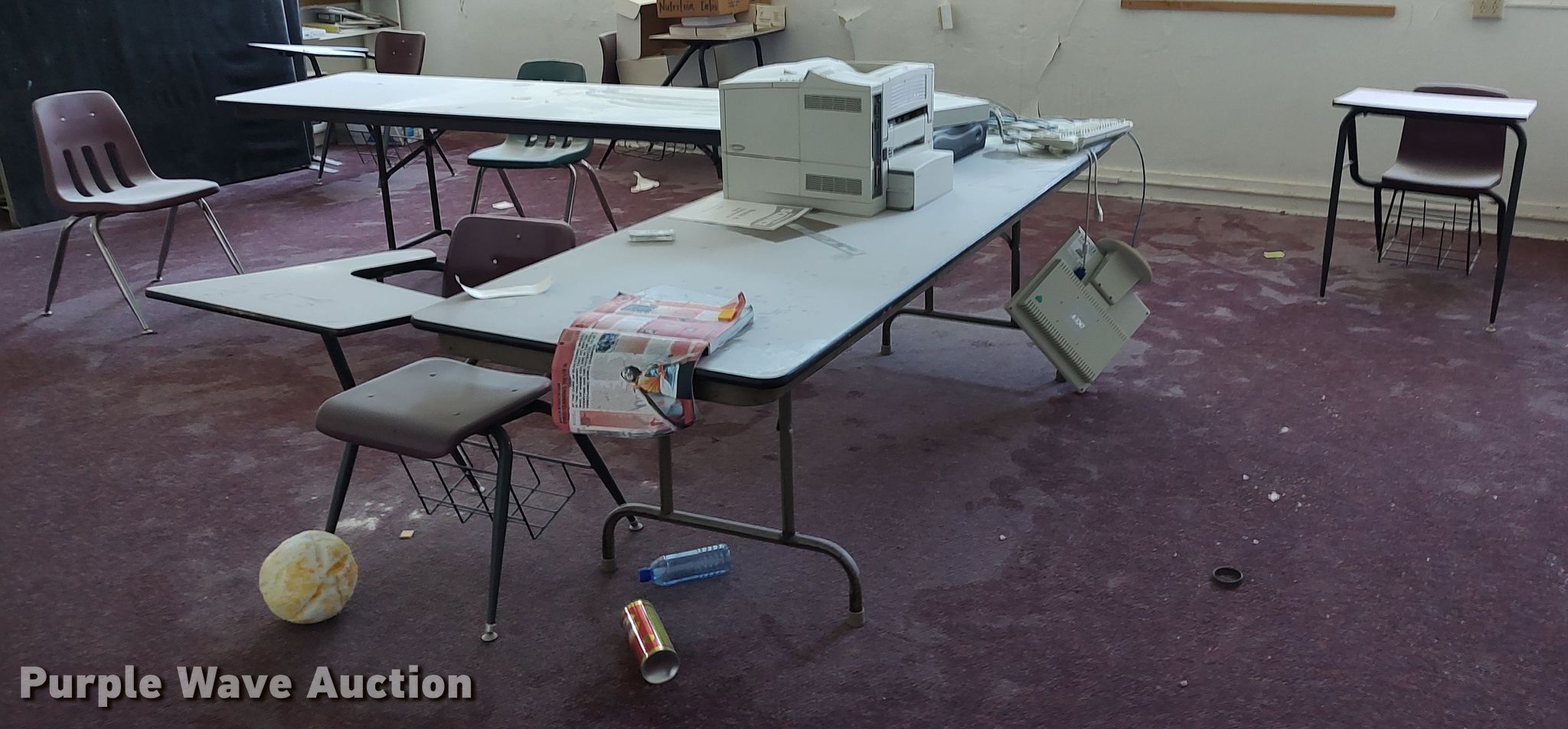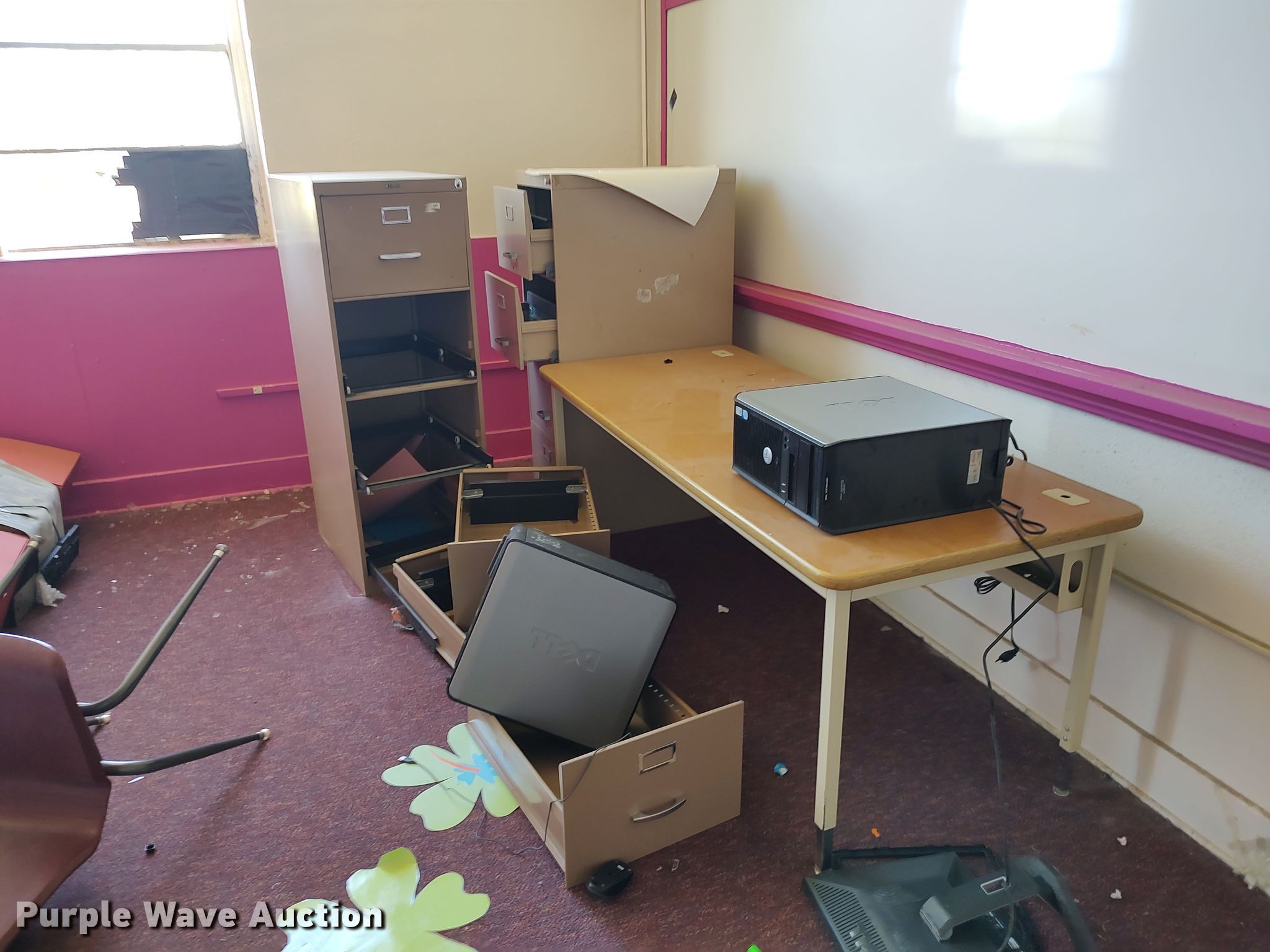 Purple Wave is selling a used Office Supplies and Equip. in Oklahoma. This item is a Office supplies and equipment with the following: Desks, Chairs, Electronics, File cabinets