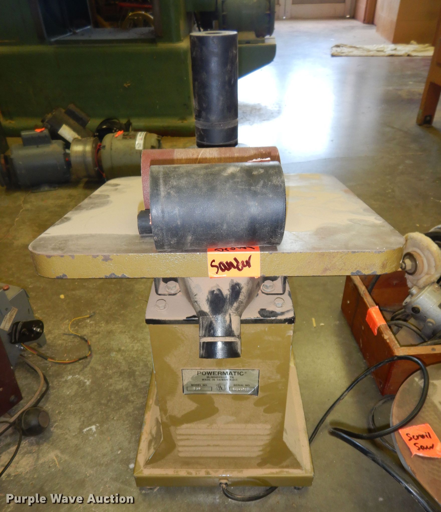 Purple Wave is selling a used Tools in Kansas. This item is a Tools with the following: (2) Delta scroll saws, 16" diameter table, Albertson grinder, 6", Powermatic drum sander